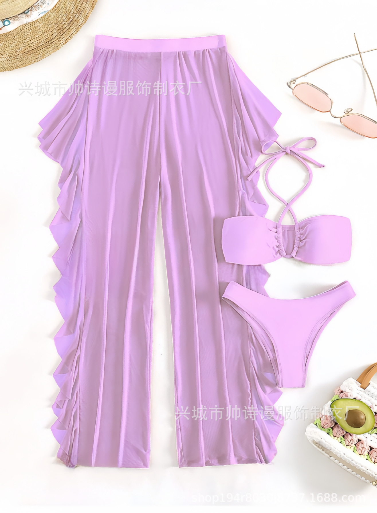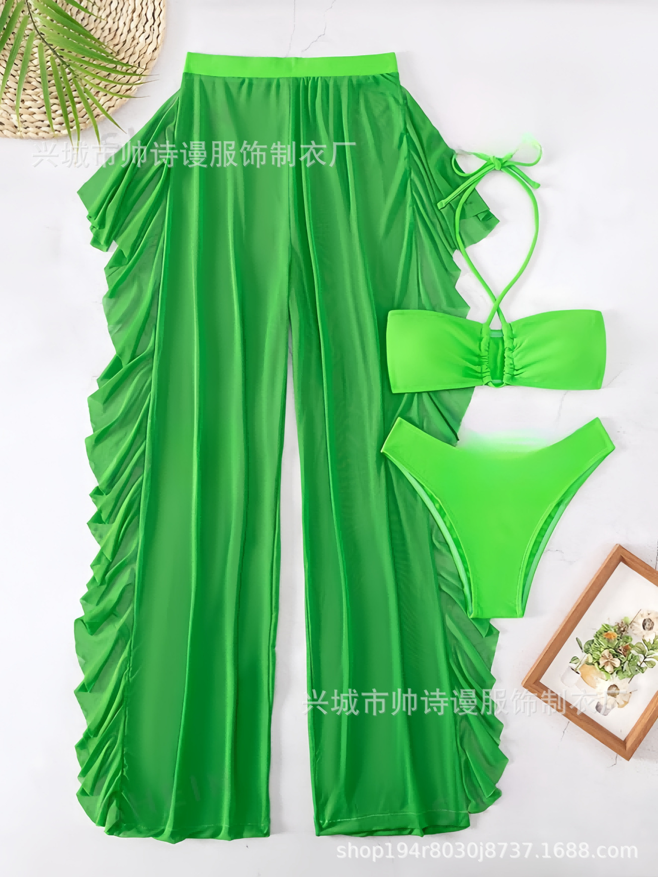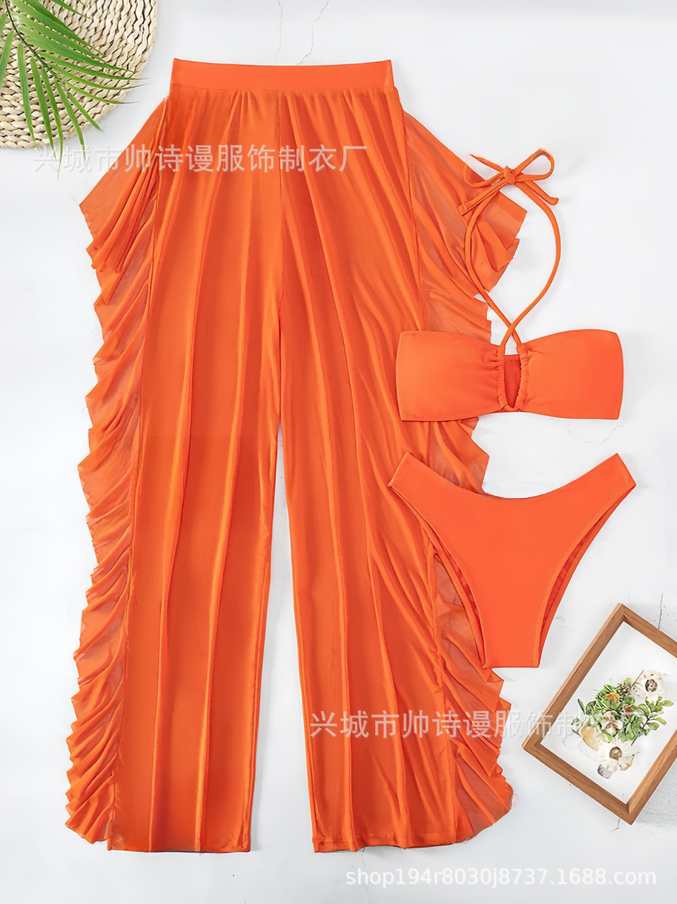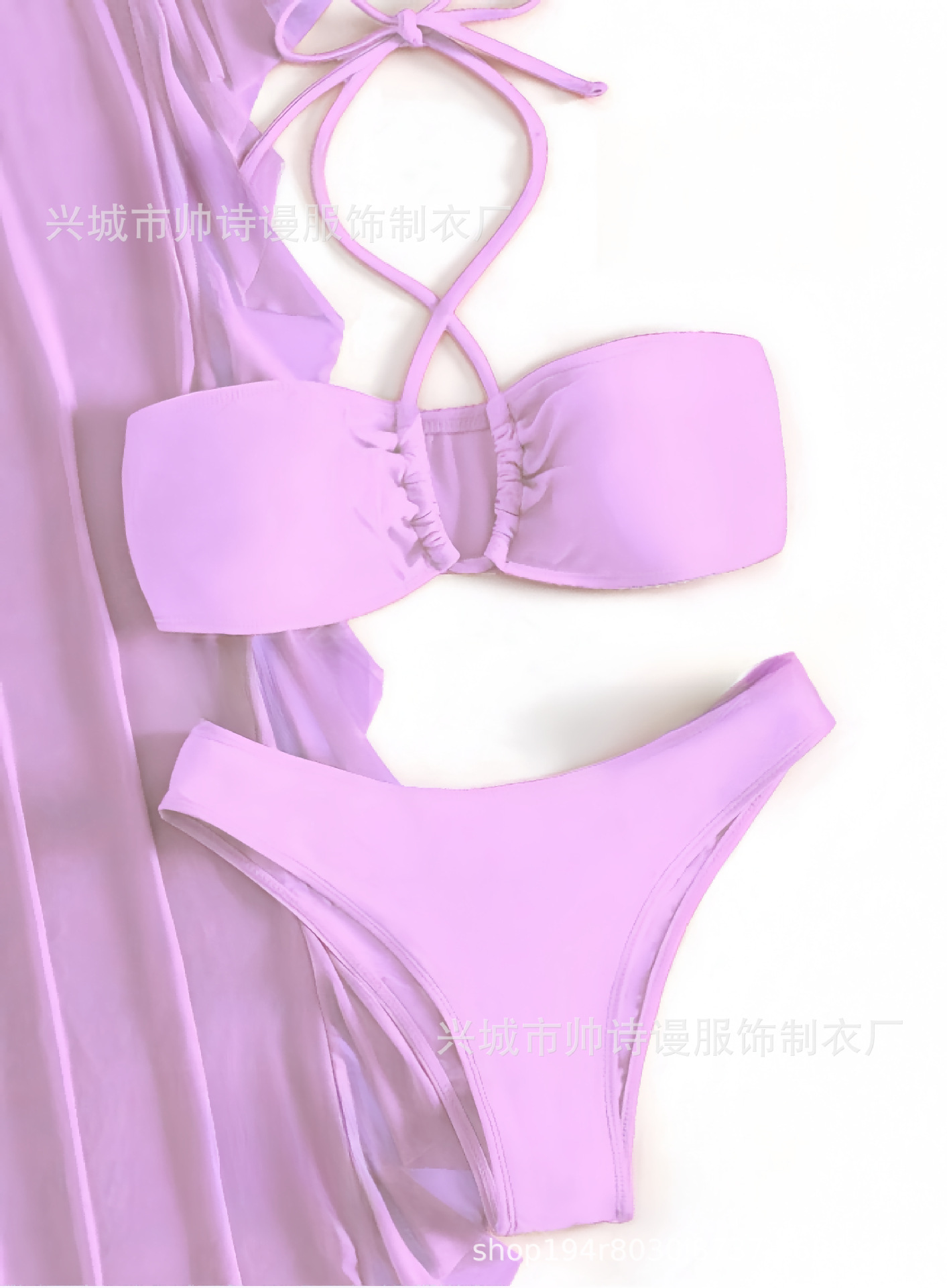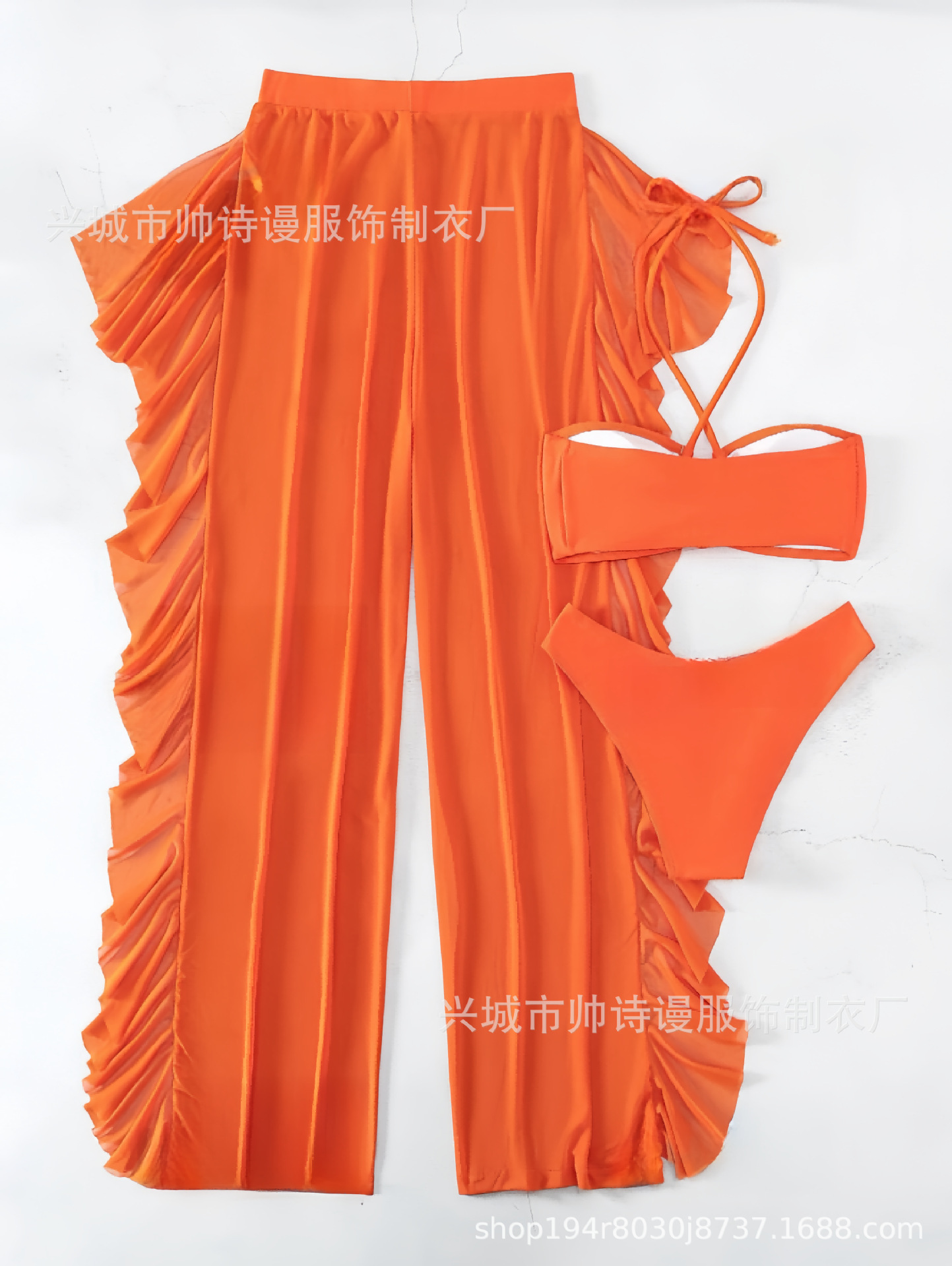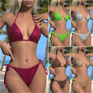 Трансграничный 2024 Европа и США новый сплошной цвет сетчатой пряжи летающие брюки крест собраться с Amazon три комплекта купальника оптом