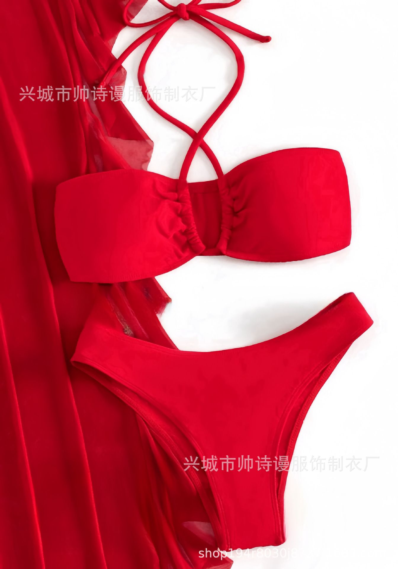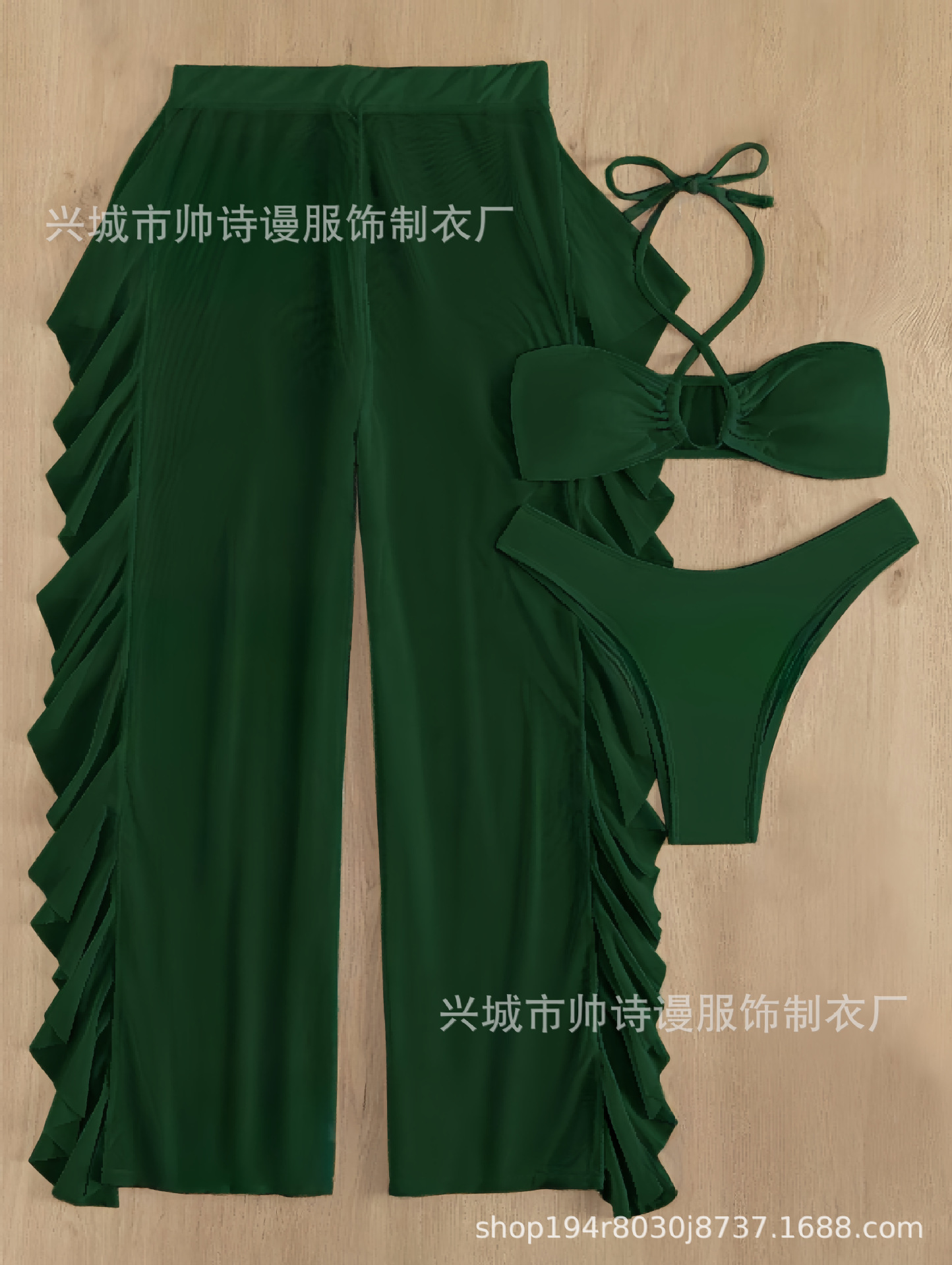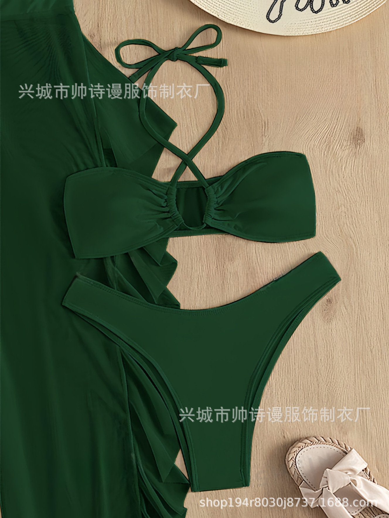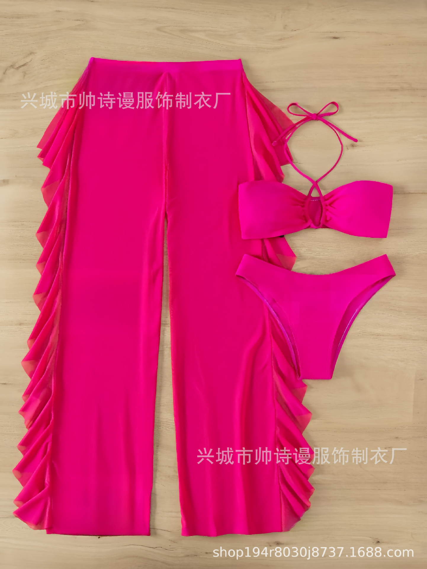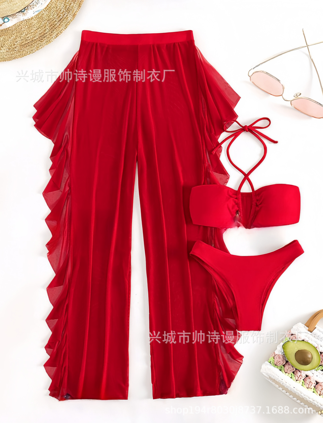 Трансграничный 2024 Европа и США новый сплошной цвет сетчатой пряжи летающие брюки крест собраться с Amazon три комплекта купальника оптом
