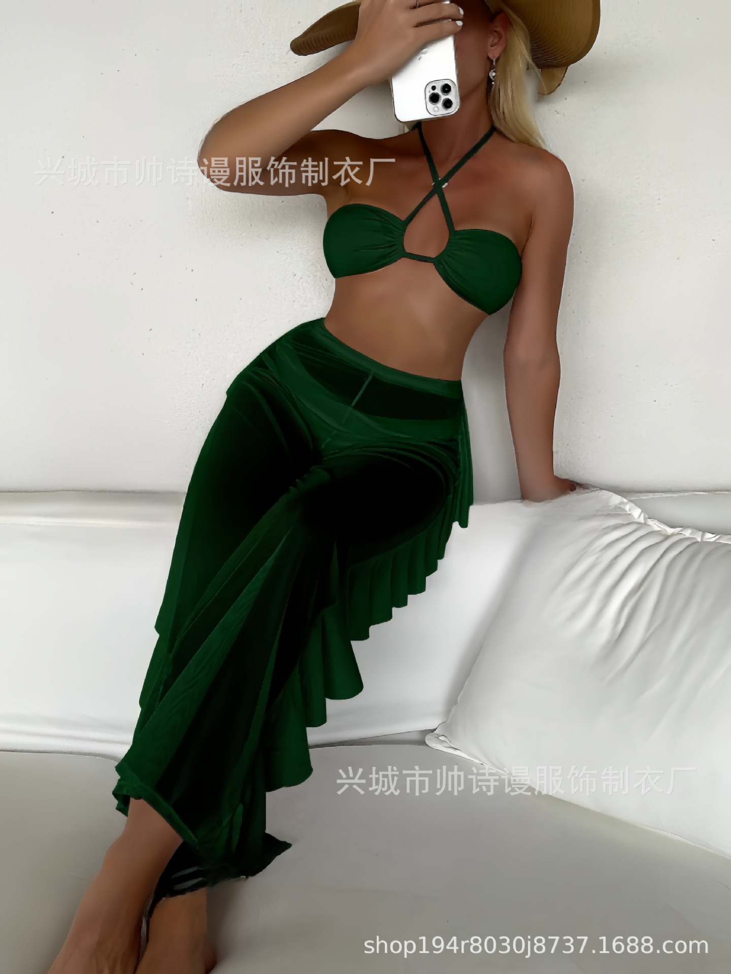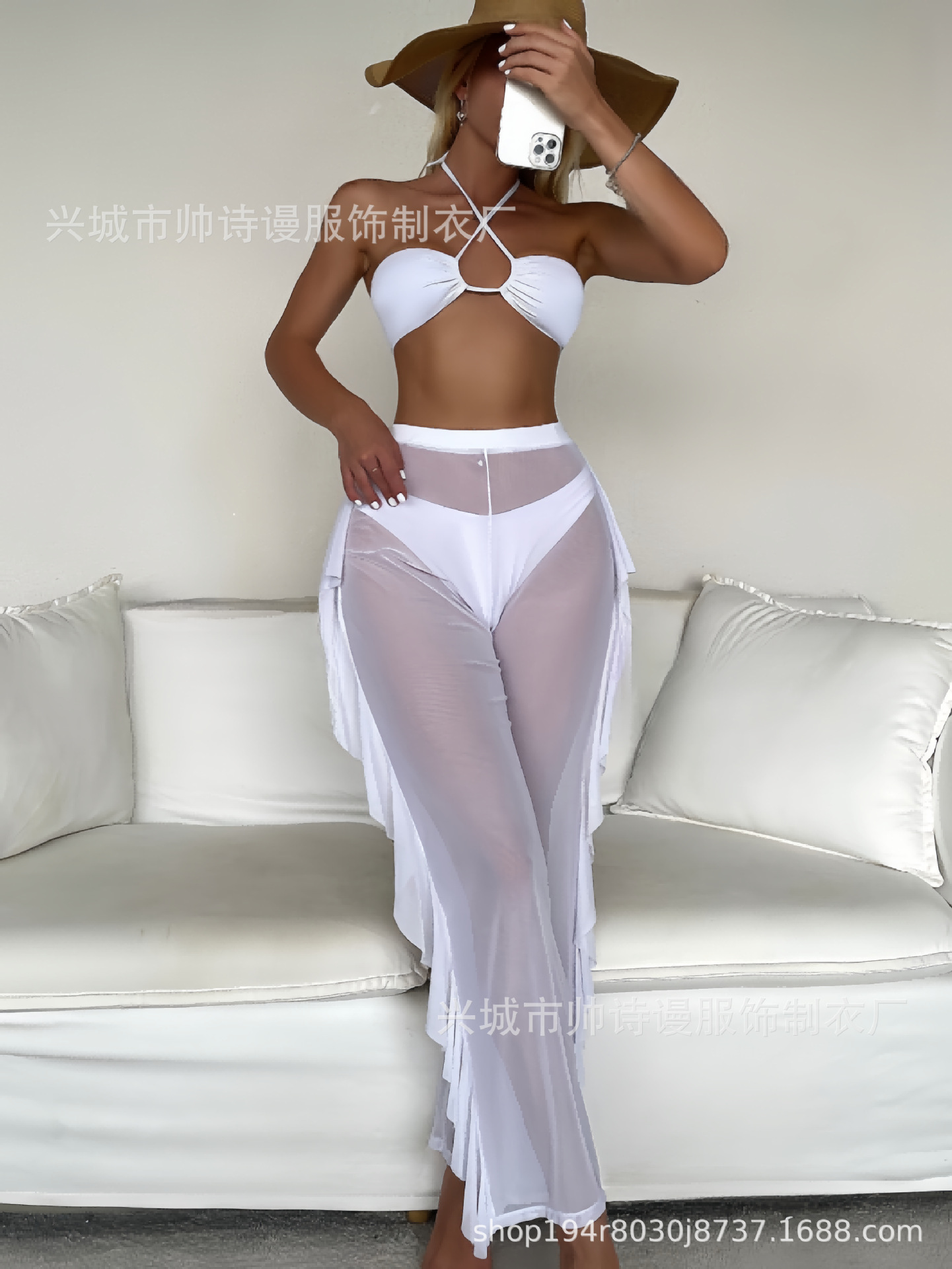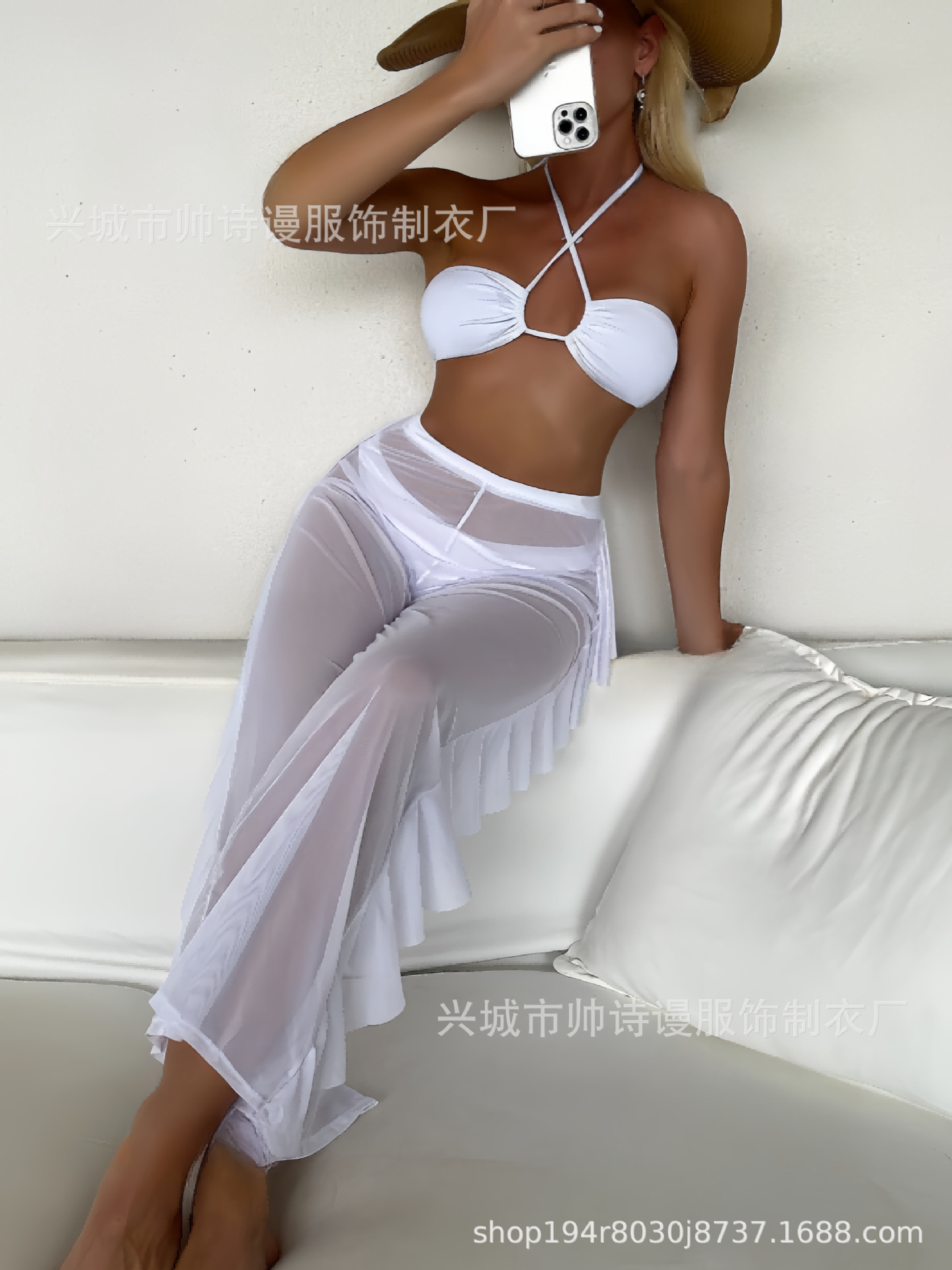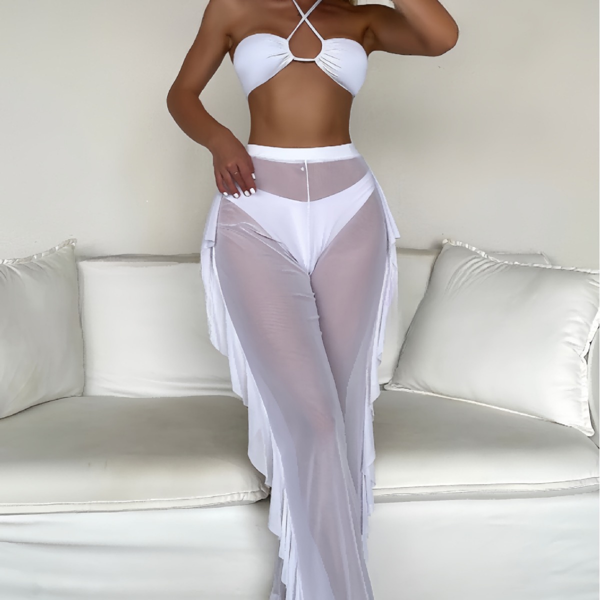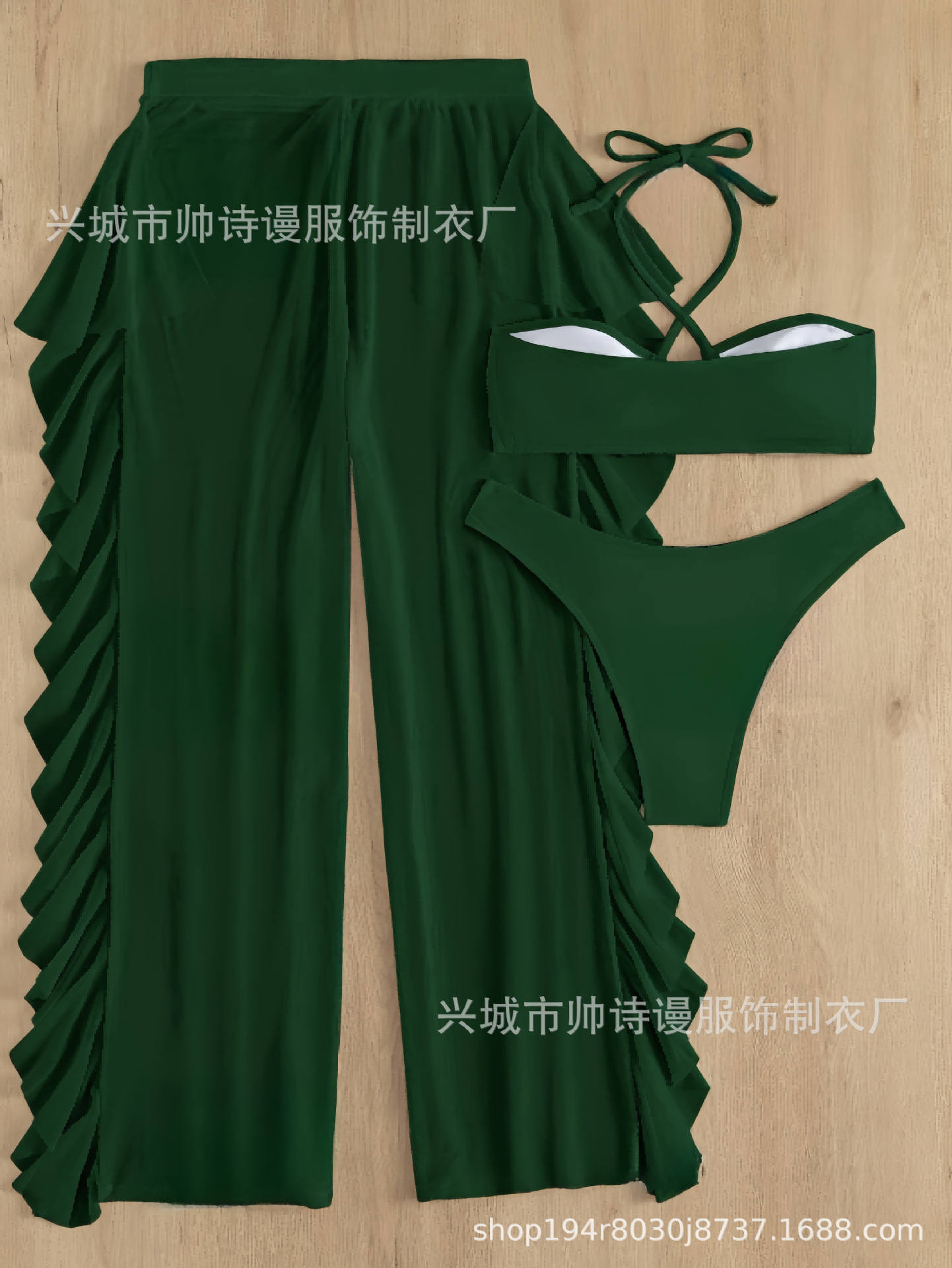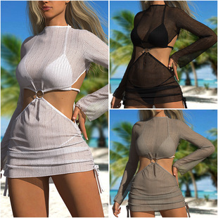 Трансграничный 2024 Европа и США новый сплошной цвет сетчатой пряжи летающие брюки крест собраться с Amazon три комплекта купальника оптом