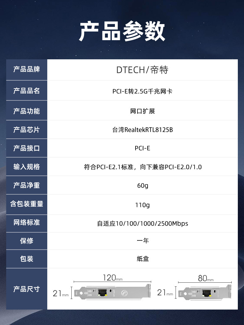 Dit PCI-E к 2.5G Gigabit сетевой карты настольный ПК встроенный сетевой игровой киберспорт сервер 2500M