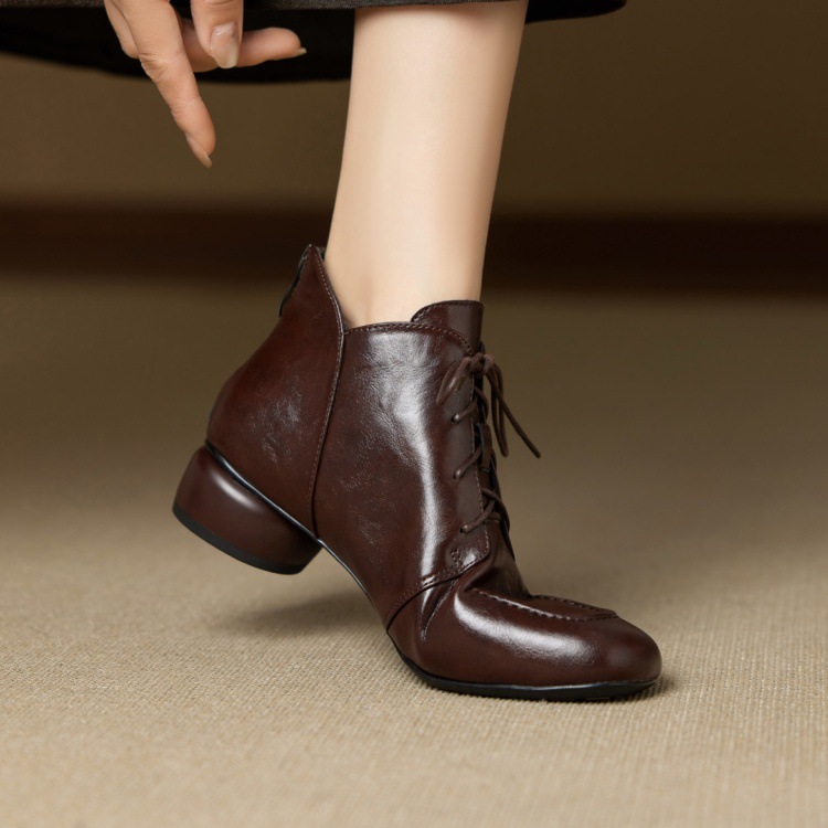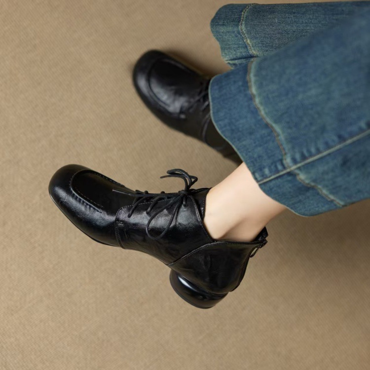 Женские туфли ручной работы из натуральной кожи, винтажный стиль, круглый носок, мягкая воловья кожа, на шнуровке, с вышивкой, осень-зима 2025, прямые поставки с фабрики