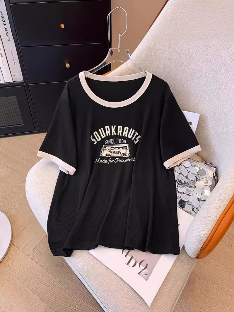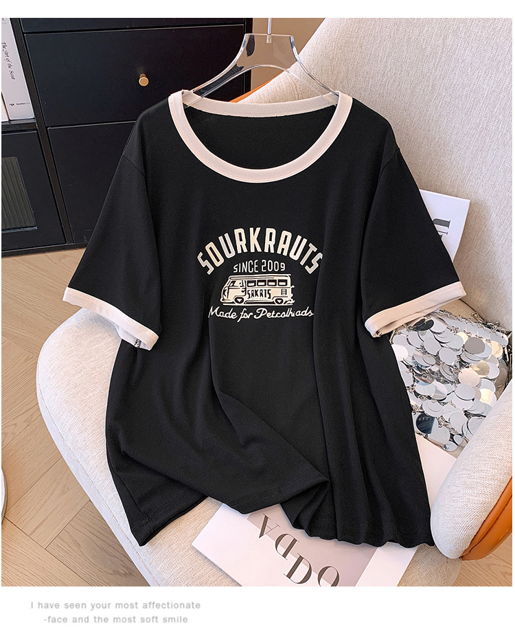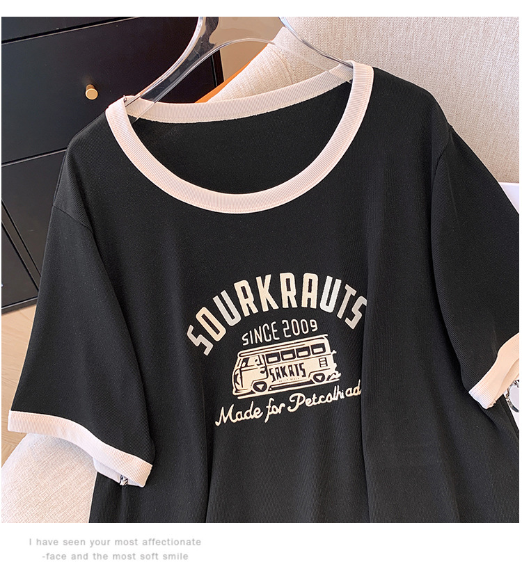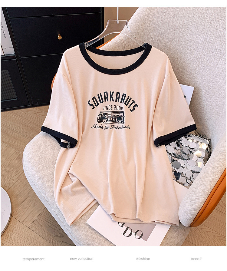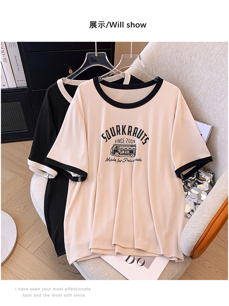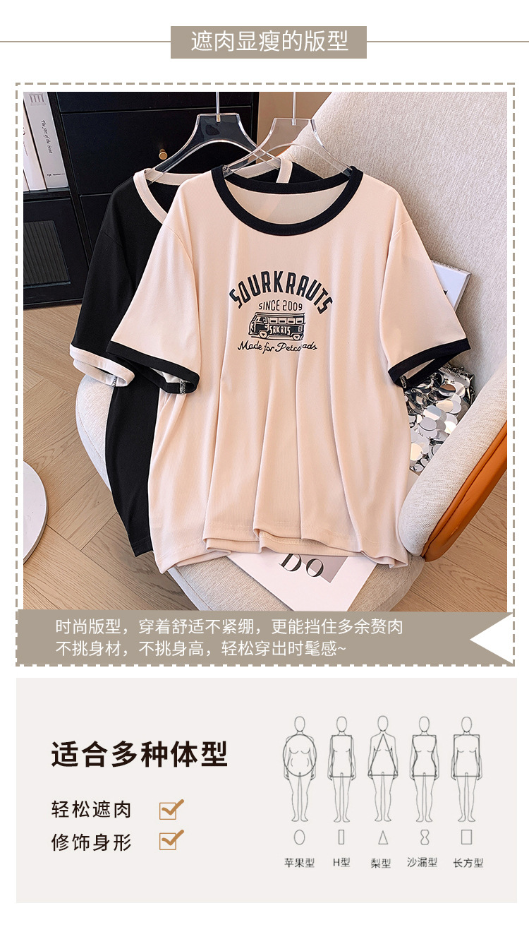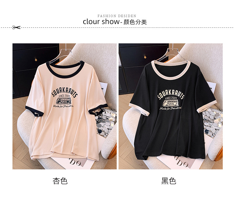 130/300 фунтов большой размер женская корейская версия свободная тонкая буква с принтом с коротким рукавом и круглым вырезом, боковая футболка X2639