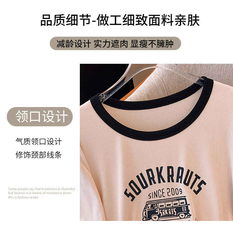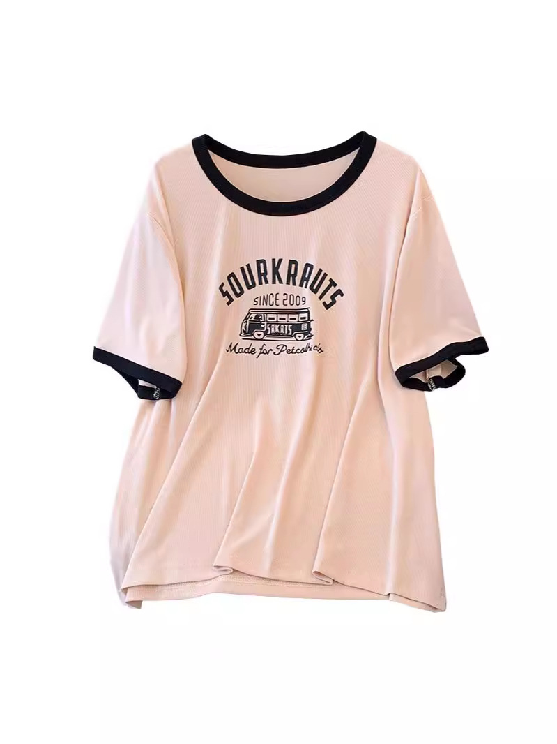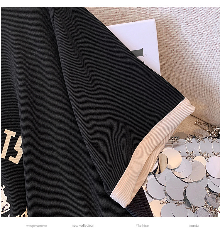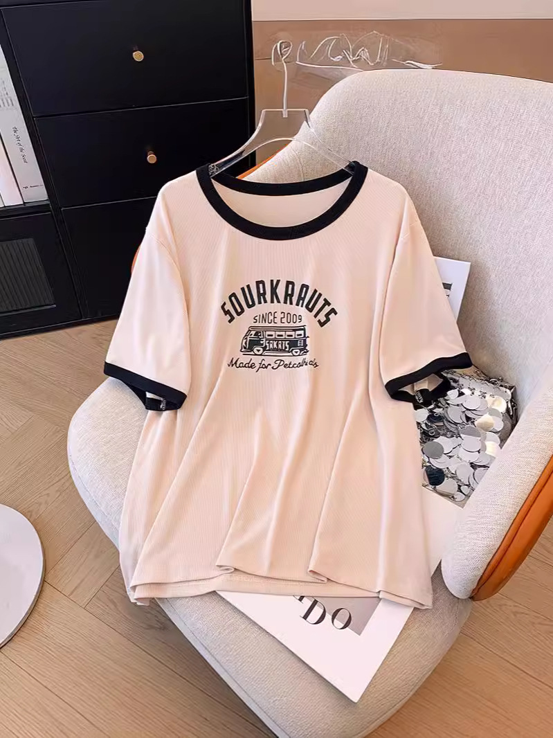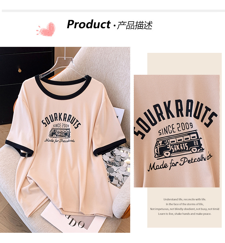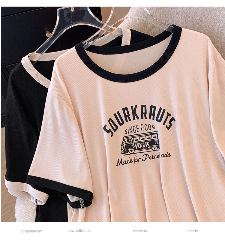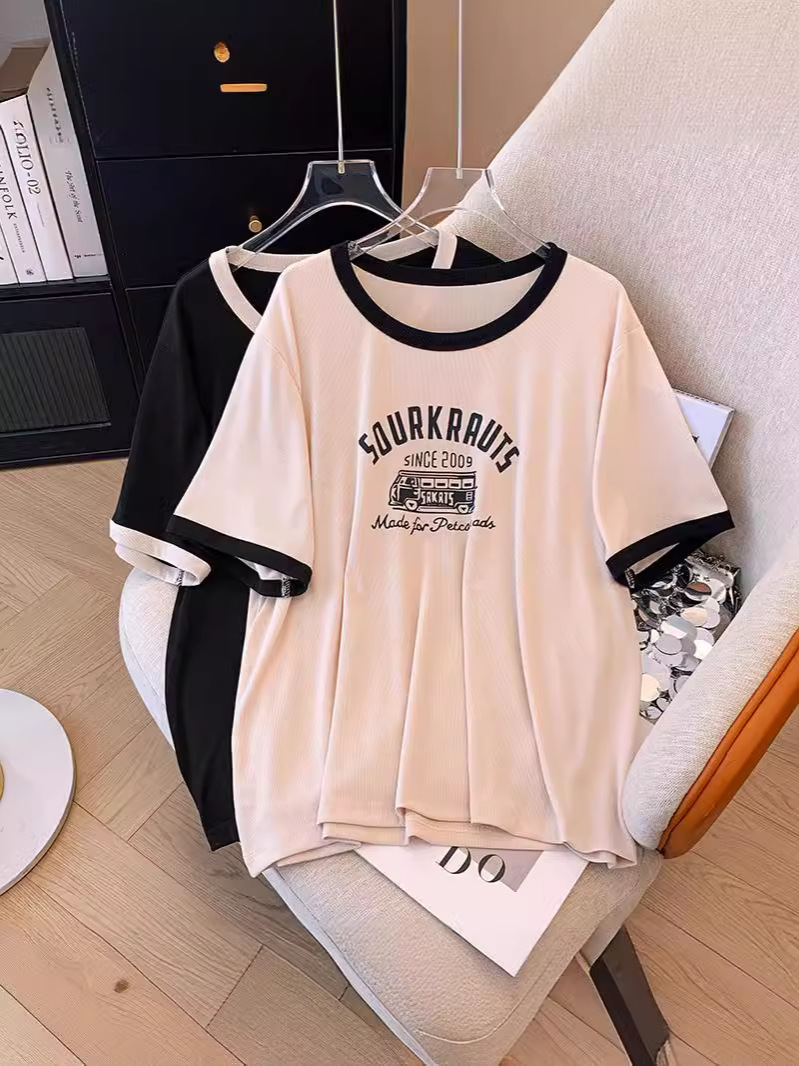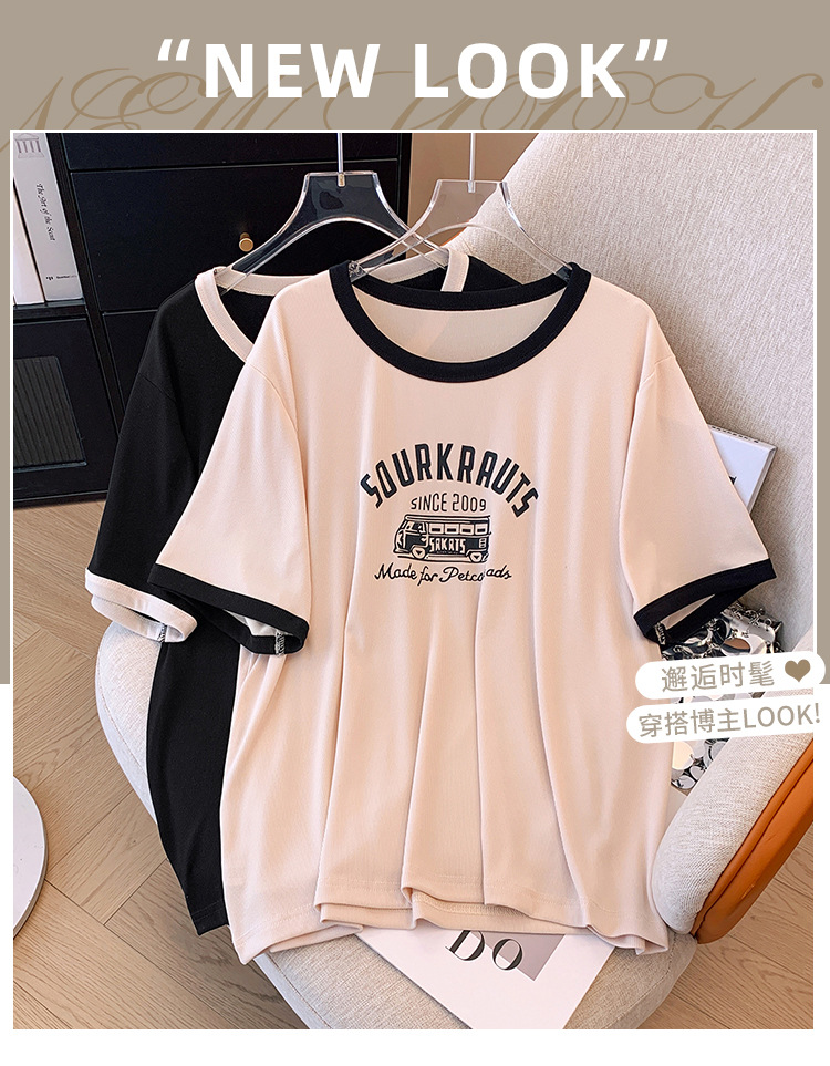 130/300 фунтов большой размер женская корейская версия свободная тонкая буква с принтом с коротким рукавом и круглым вырезом, боковая футболка X2639