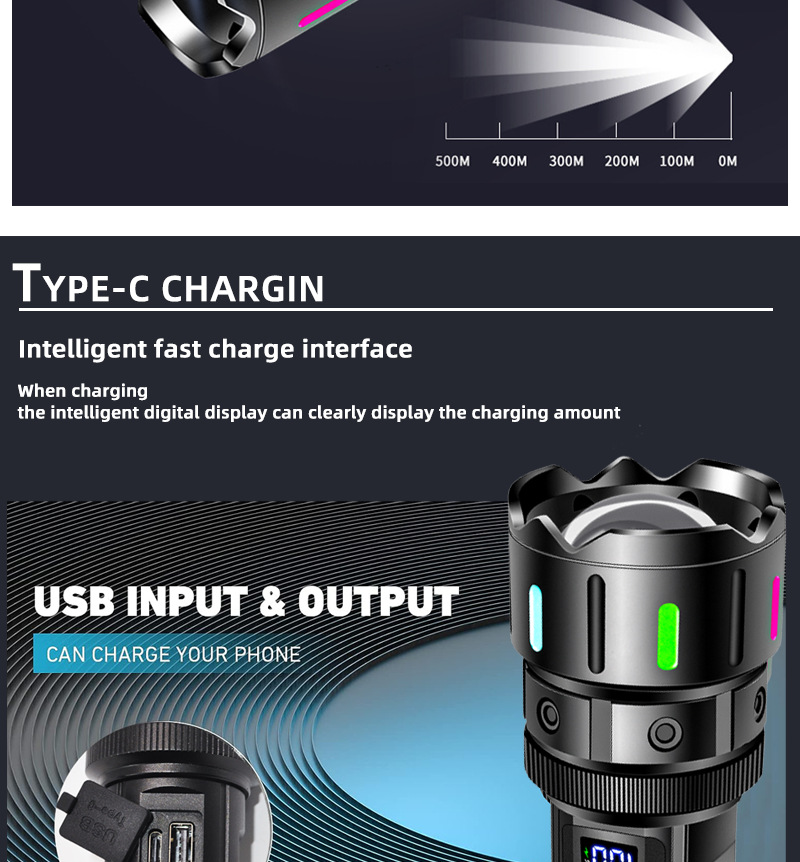 Трансграничный лазерный фонарик с сильным освещением показывает светодиодный телескопический зум