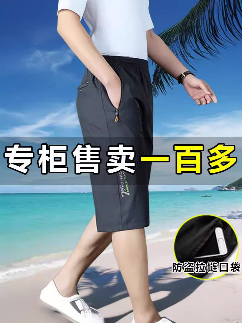 Укороченные брюки Мужские спортивные повседневные шорты летние брюки средние брюки тонкие большие брюки прямые брюки свободные пляжные брюки