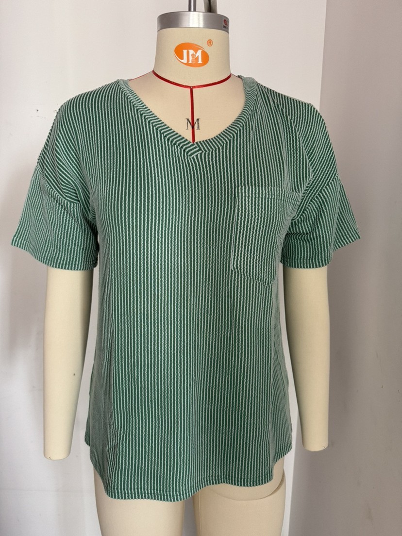 Amazon внешняя торговля Европа-Европа-трансграничный 2024 летний новый V-образный торсионный торсионный набор с короткими рукавами свободная футболка женская