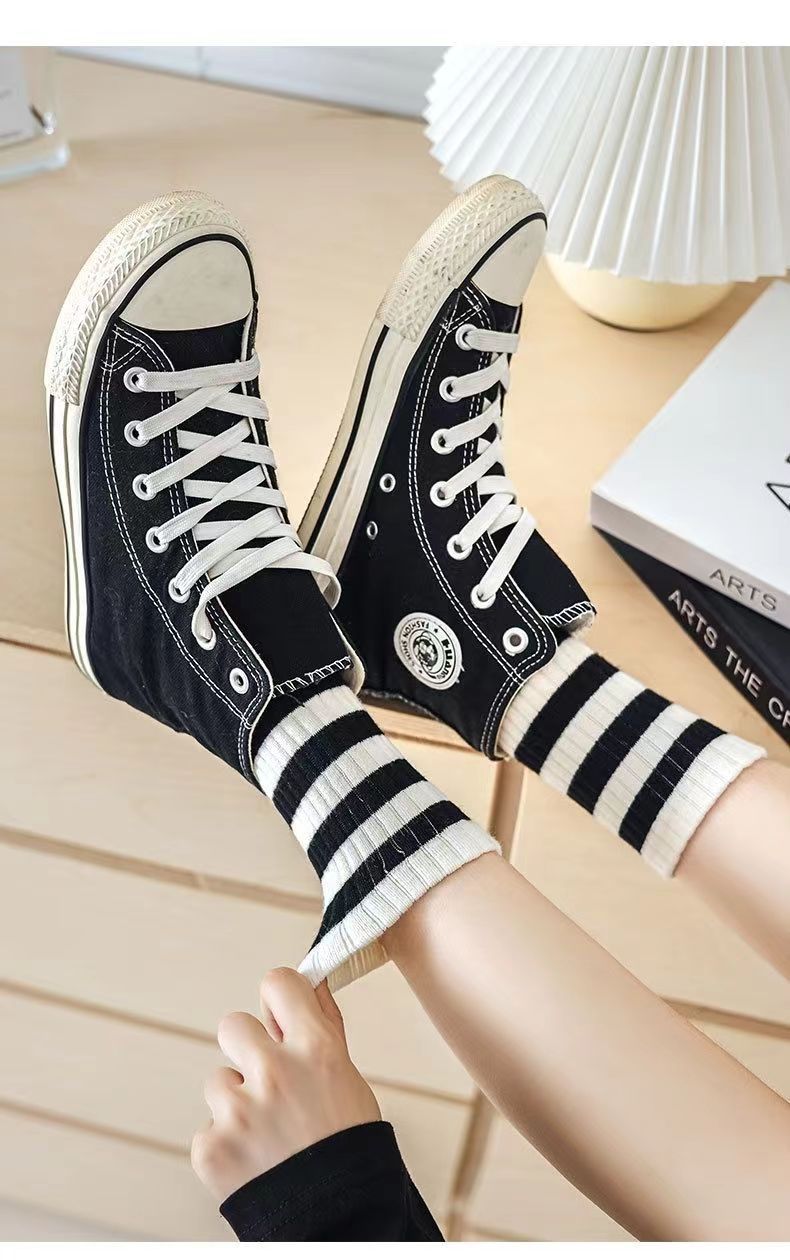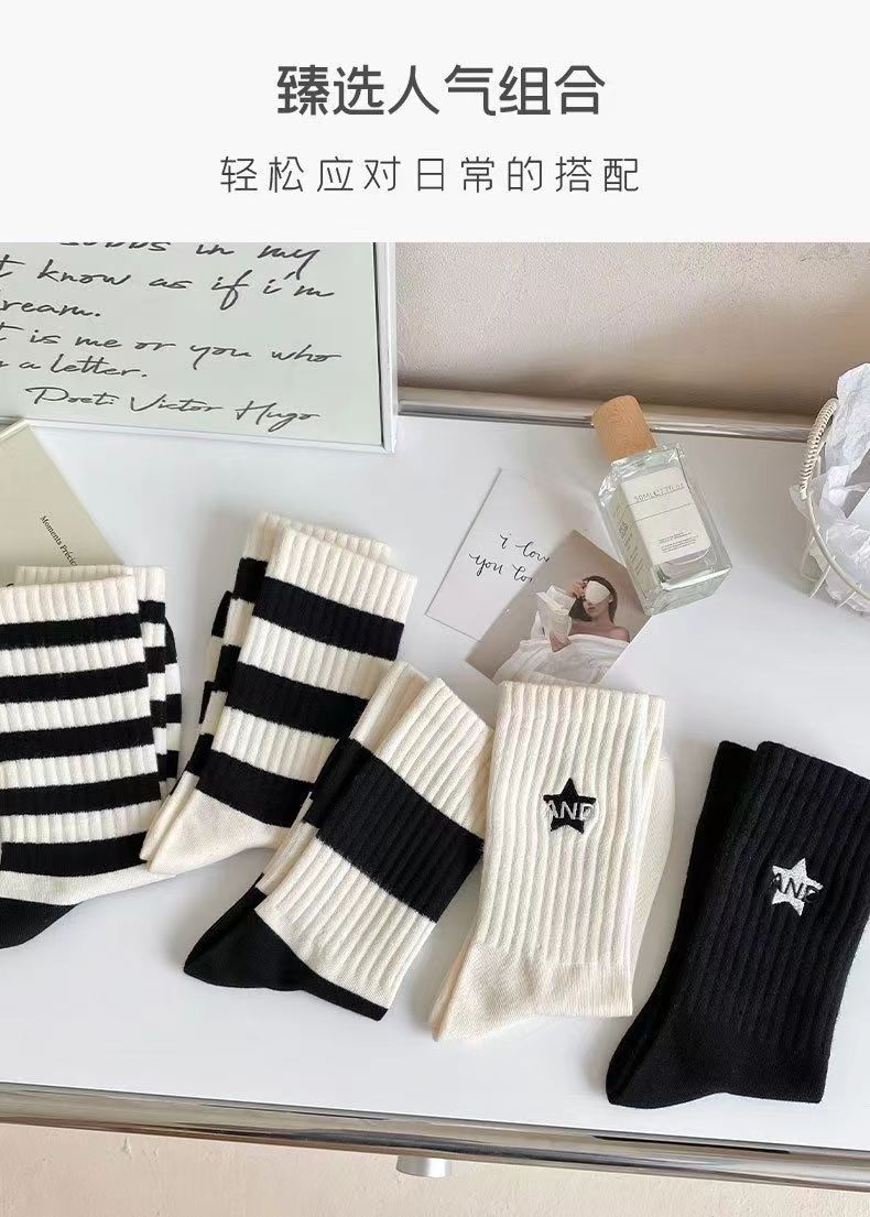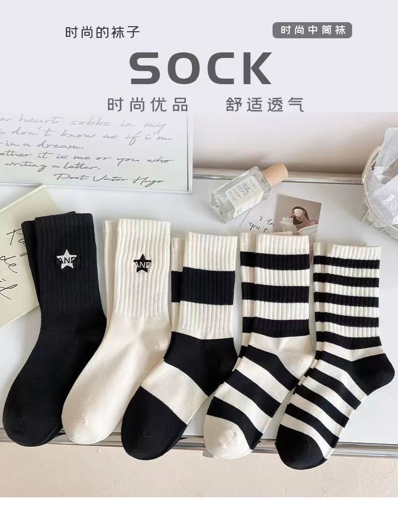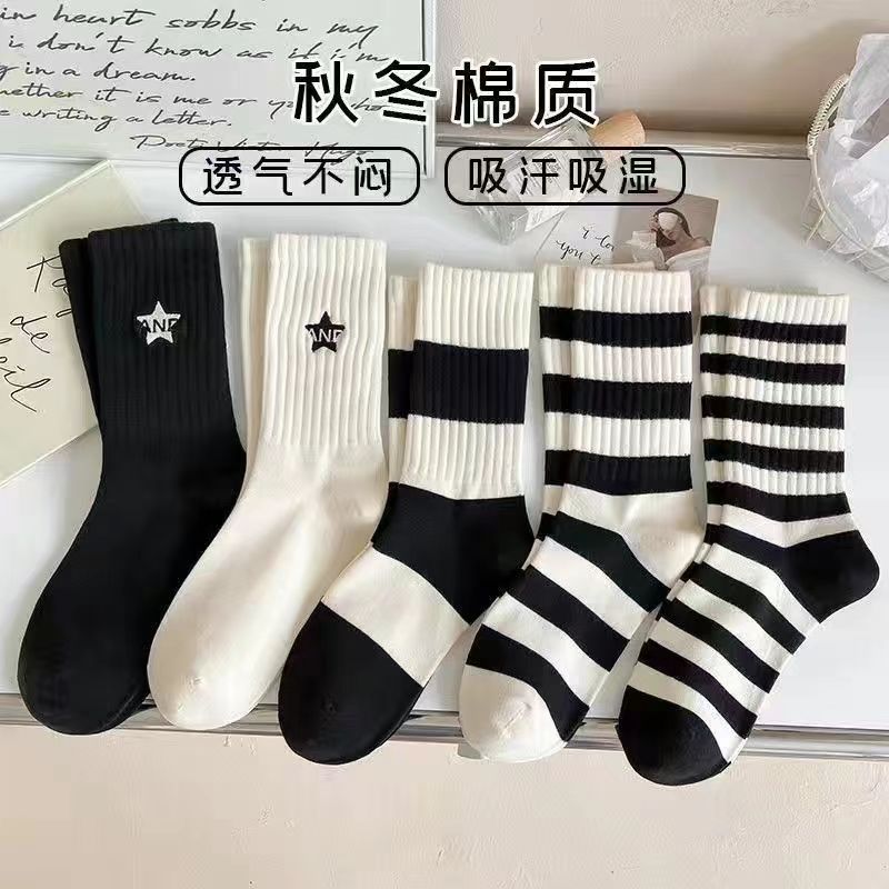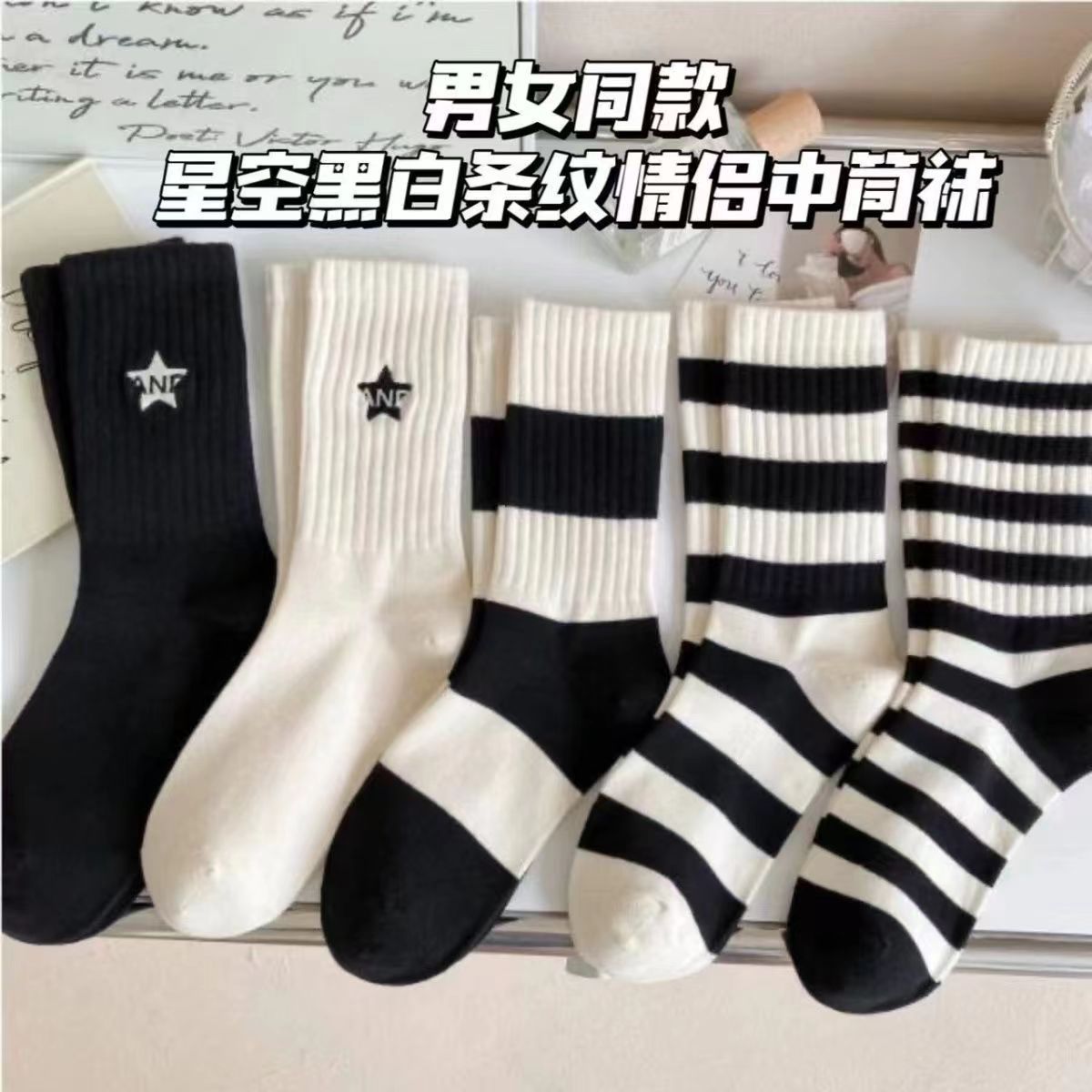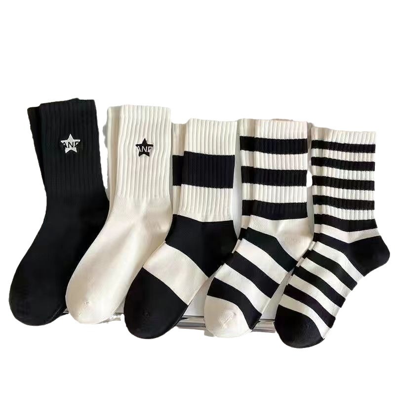 2024 новые черно-белые носки женские пары носки полосатые ninchao носки сети красный день студент спортивный носки мужской дышащий