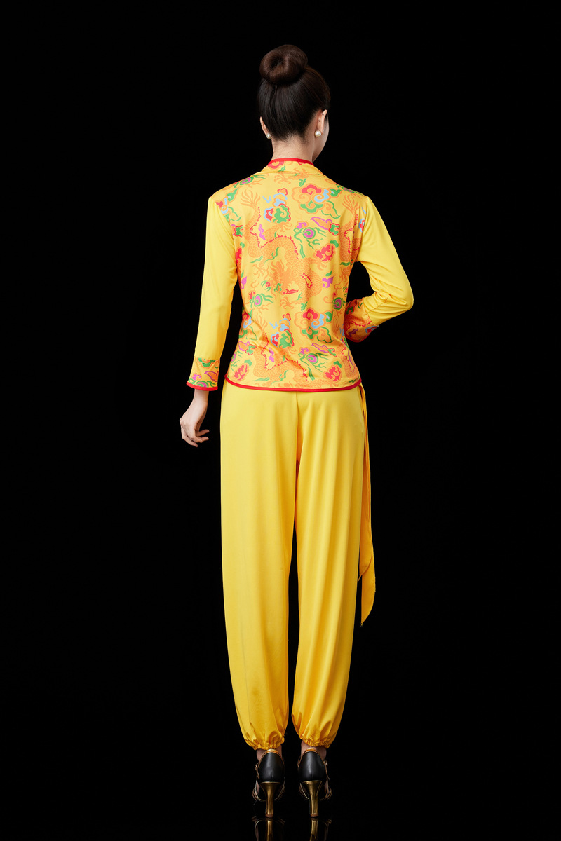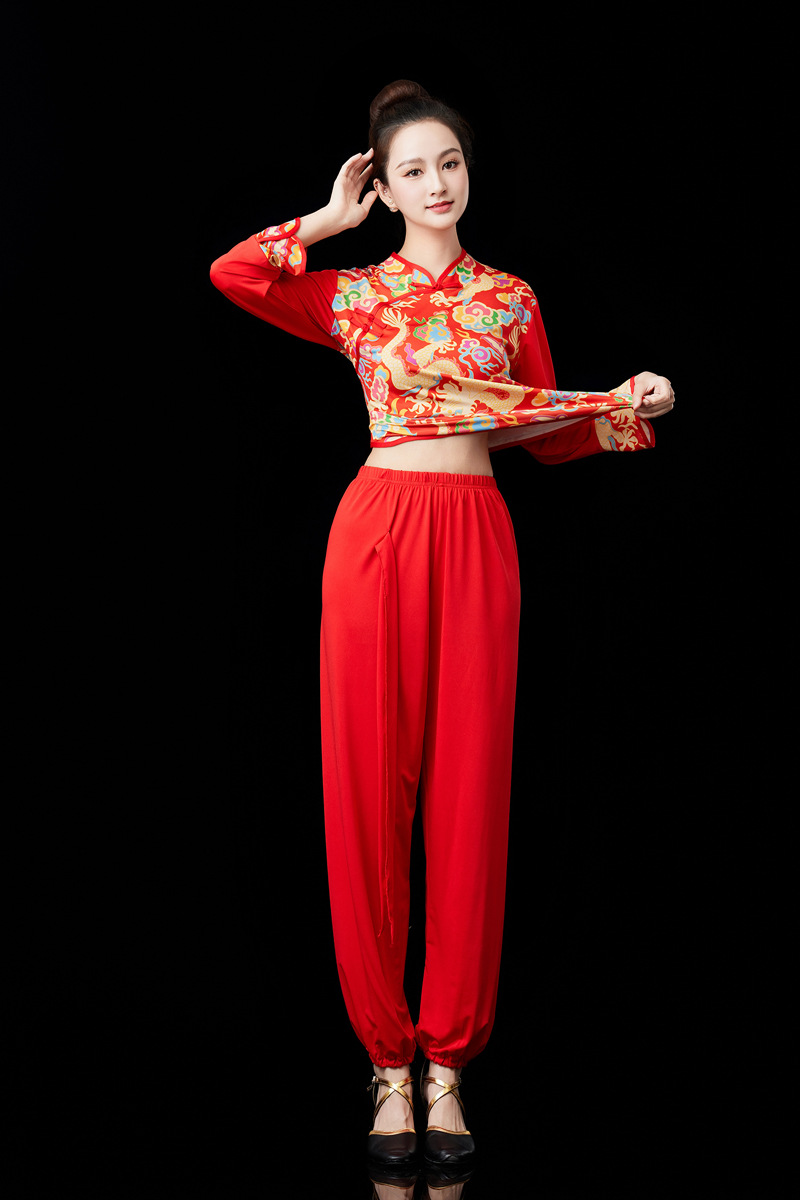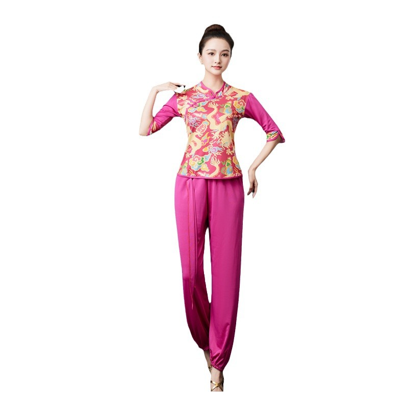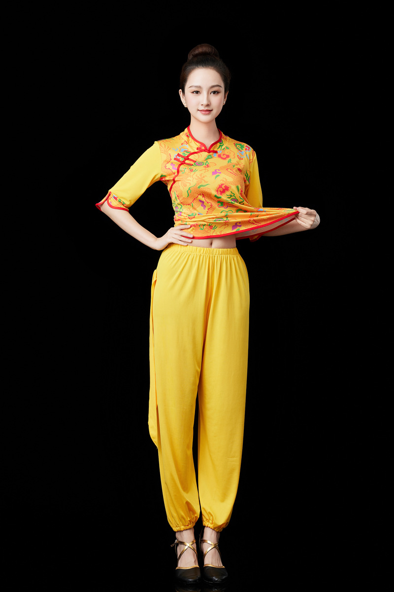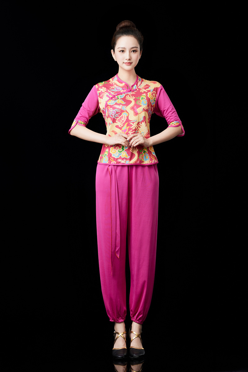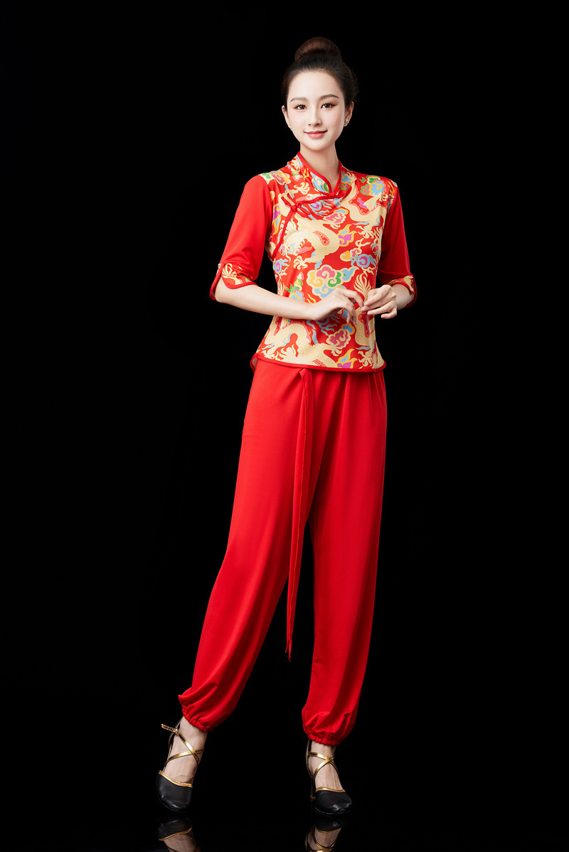 Красный воротник-стойка с длинными рукавами + красные шаровары.; Красный воротник-стойка с средним рукавом + красные шаровары; Желтый воротник-стойка с длинными рукавами + желтые шаровары; Желтый воротник-стойка с средним рукавом + желтые шаровары; Воротник-стойка с фиолетовой розой и длинными рукавами + шаровары фиолетового розового красного цвета; Воротник-стойка с фиолетовой розой и средним рукавом + шаровары фиолетовой розово-красного цвета; Желтый воротник-стойка, длинные рукава + красные шаровары.; Желтый воротник-стойка с средним рукавом + красные шаровары; Красный топ с длинными рукавами и одним воротником-стойкой; Желтый топ с длинными рукавами и одним воротником-стойкой; Топ с длинными рукавами с одним воротником-стойкой и фиолетовой розой; Топ с одним воротником-стойкой, фиолетовой розой и средними рукавами; Желтый топ среднего рукава с одним воротником-стойкой; Красный топ с одним воротником-стойкой и средними рукавами.; Цельный предмет светлых брюк-дракон с красной лентой; Брюки-дракон с одинарной фиолетовой лентой и лентой в форме розы; Цельные брюки светлого дракона с желтой лентой