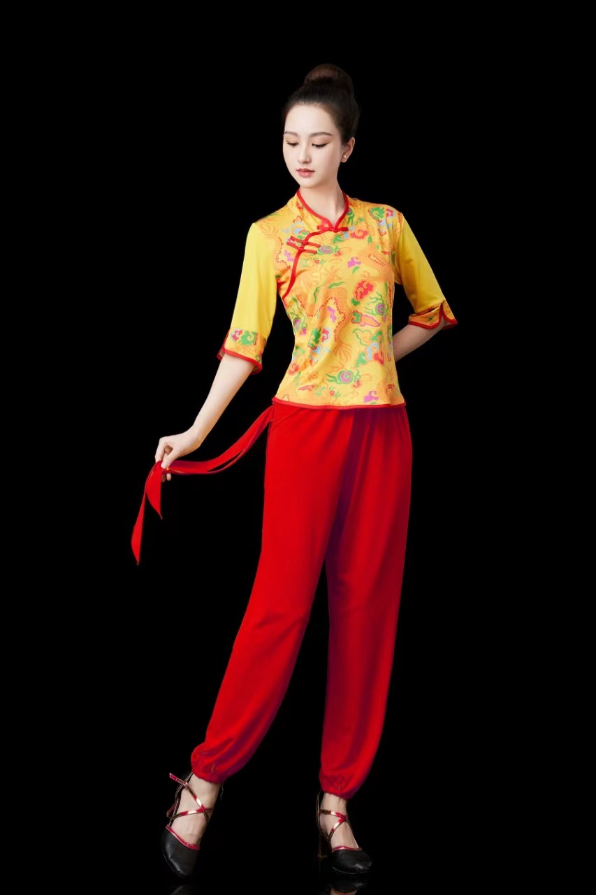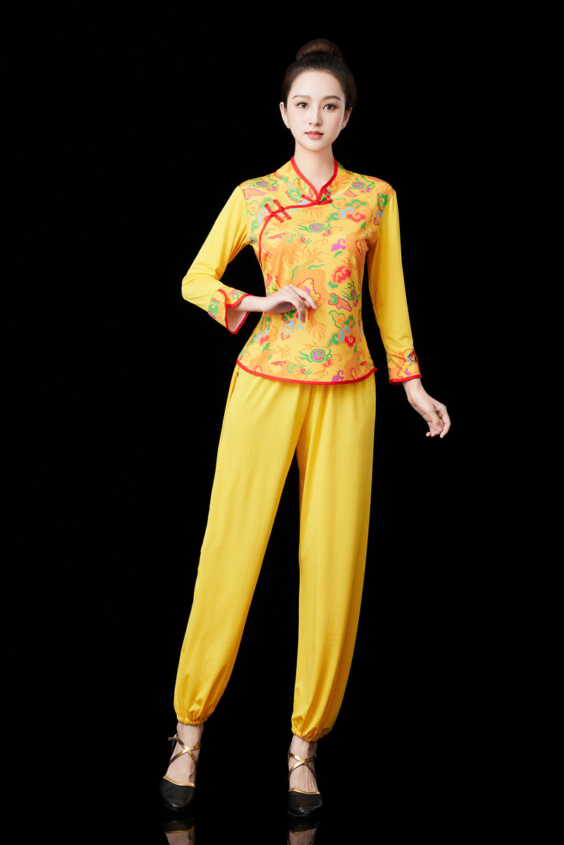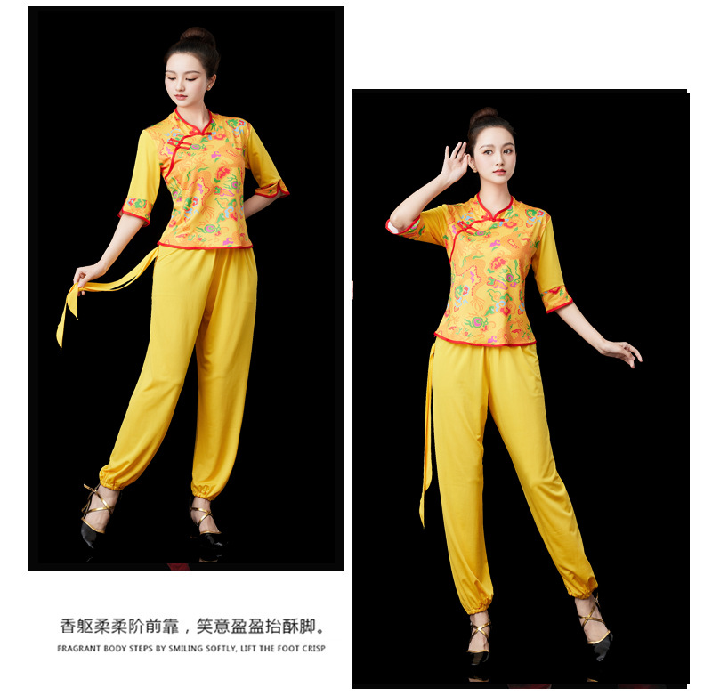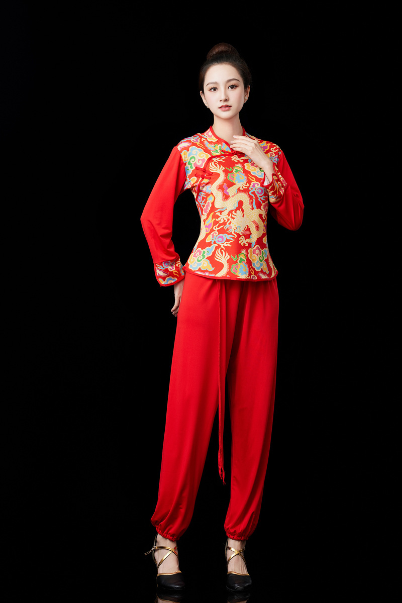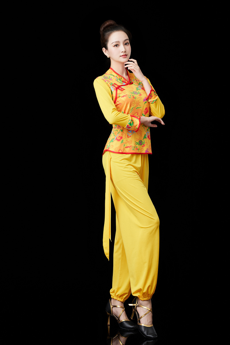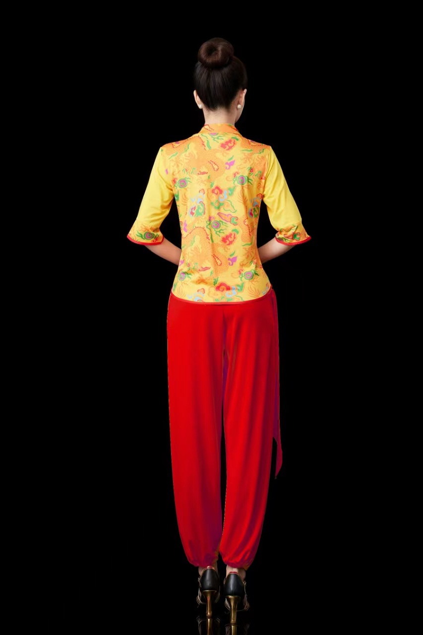 Красный воротник-стойка с длинными рукавами + красные шаровары.; Красный воротник-стойка с средним рукавом + красные шаровары; Желтый воротник-стойка с длинными рукавами + желтые шаровары; Желтый воротник-стойка с средним рукавом + желтые шаровары; Воротник-стойка с фиолетовой розой и длинными рукавами + шаровары фиолетового розового красного цвета; Воротник-стойка с фиолетовой розой и средним рукавом + шаровары фиолетовой розово-красного цвета; Желтый воротник-стойка, длинные рукава + красные шаровары.; Желтый воротник-стойка с средним рукавом + красные шаровары; Красный топ с длинными рукавами и одним воротником-стойкой; Желтый топ с длинными рукавами и одним воротником-стойкой; Топ с длинными рукавами с одним воротником-стойкой и фиолетовой розой; Топ с одним воротником-стойкой, фиолетовой розой и средними рукавами; Желтый топ среднего рукава с одним воротником-стойкой; Красный топ с одним воротником-стойкой и средними рукавами.; Цельный предмет светлых брюк-дракон с красной лентой; Брюки-дракон с одинарной фиолетовой лентой и лентой в форме розы; Цельные брюки светлого дракона с желтой лентой