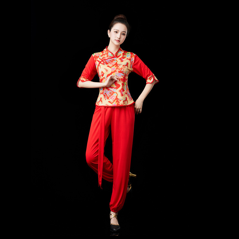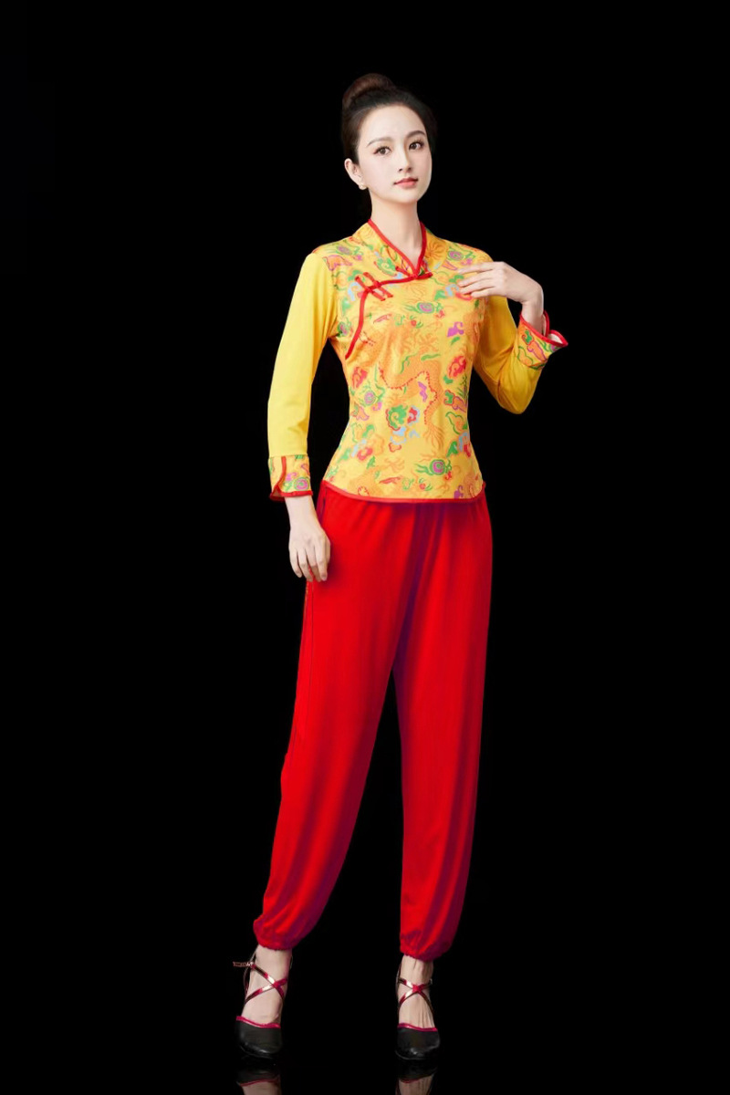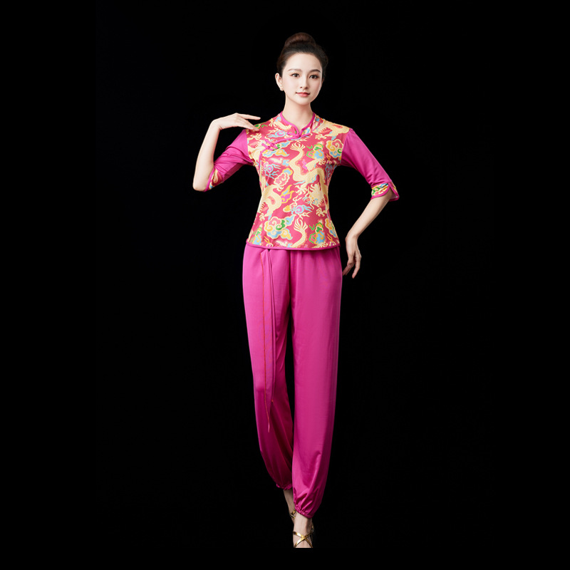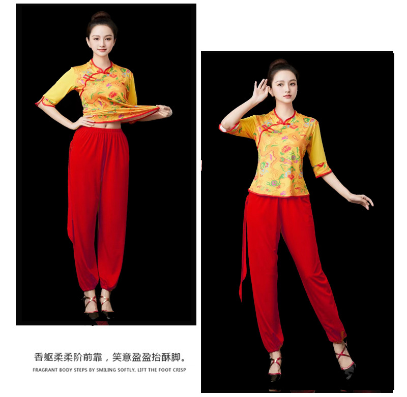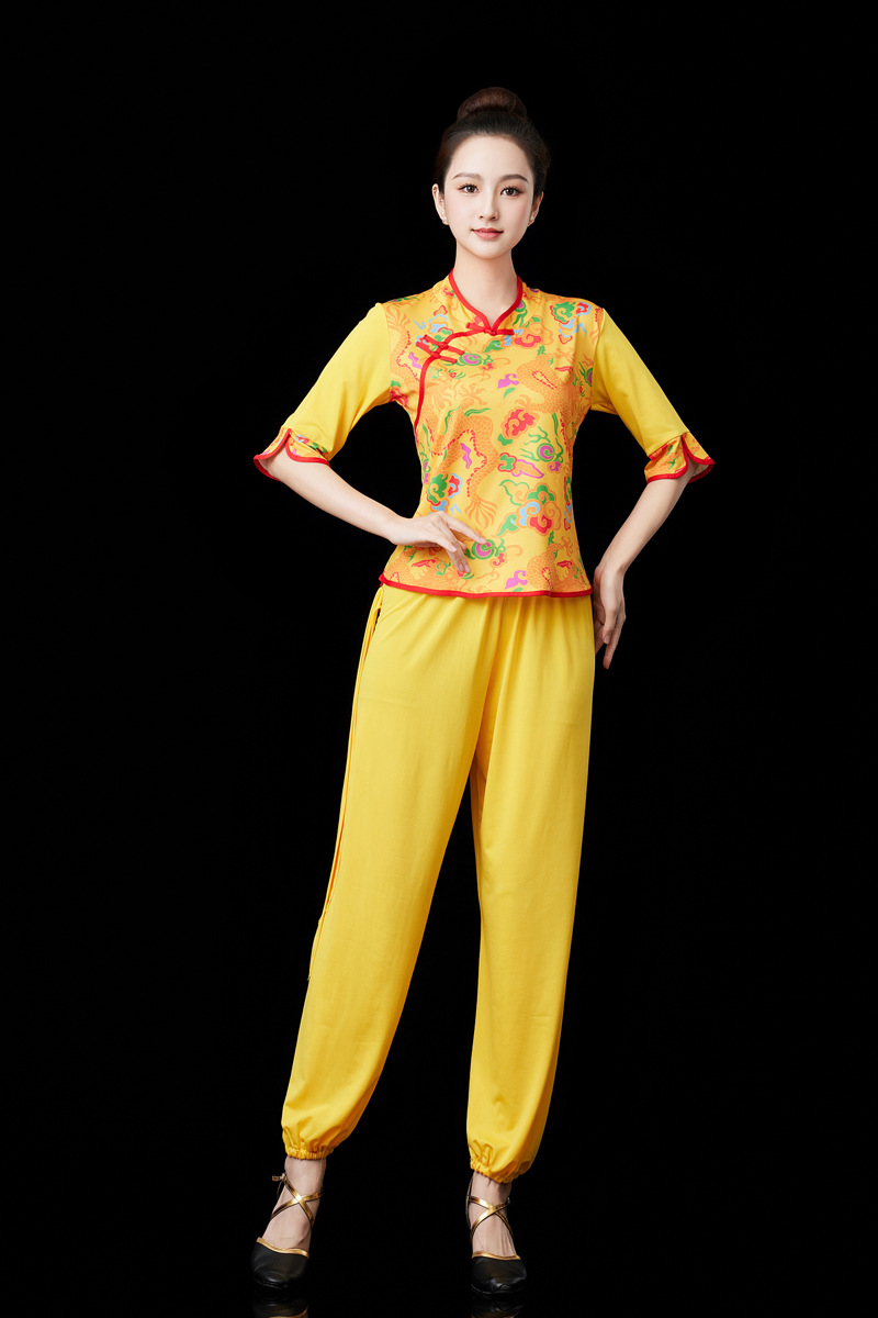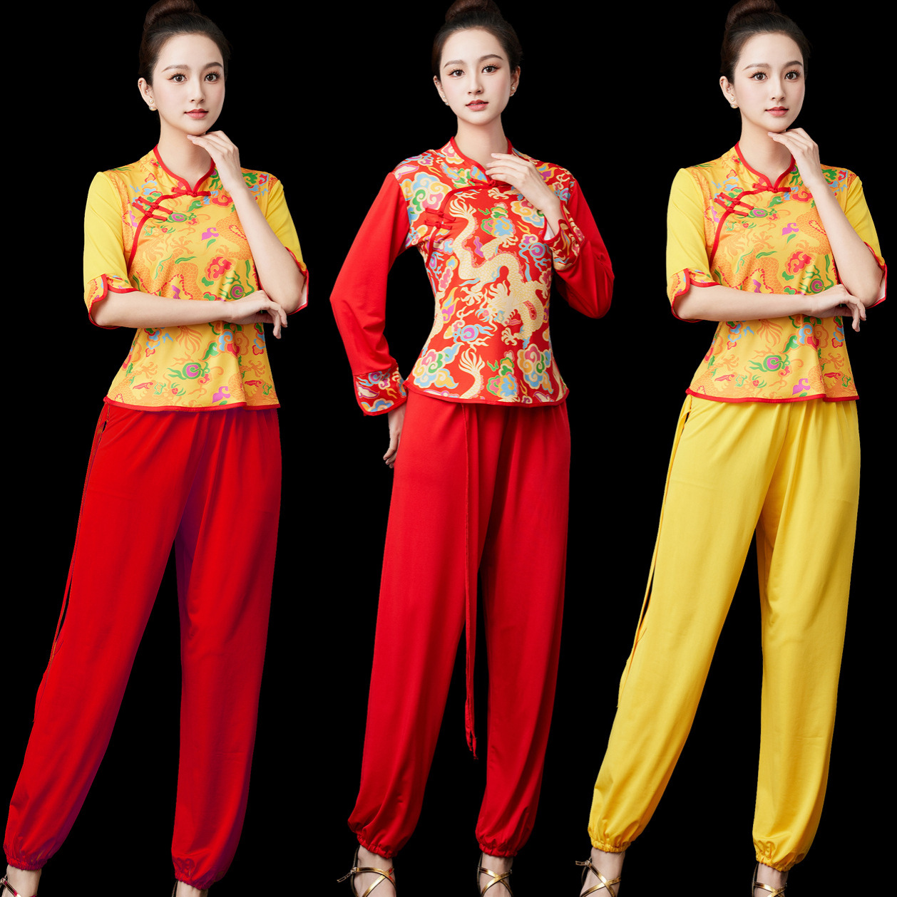 Красный воротник-стойка с длинными рукавами + красные шаровары.; Красный воротник-стойка с средним рукавом + красные шаровары; Желтый воротник-стойка с длинными рукавами + желтые шаровары; Желтый воротник-стойка с средним рукавом + желтые шаровары; Воротник-стойка с фиолетовой розой и длинными рукавами + шаровары фиолетового розового красного цвета; Воротник-стойка с фиолетовой розой и средним рукавом + шаровары фиолетовой розово-красного цвета; Желтый воротник-стойка, длинные рукава + красные шаровары.; Желтый воротник-стойка с средним рукавом + красные шаровары; Красный топ с длинными рукавами и одним воротником-стойкой; Желтый топ с длинными рукавами и одним воротником-стойкой; Топ с длинными рукавами с одним воротником-стойкой и фиолетовой розой; Топ с одним воротником-стойкой, фиолетовой розой и средними рукавами; Желтый топ среднего рукава с одним воротником-стойкой; Красный топ с одним воротником-стойкой и средними рукавами.; Цельный предмет светлых брюк-дракон с красной лентой; Брюки-дракон с одинарной фиолетовой лентой и лентой в форме розы; Цельные брюки светлого дракона с желтой лентой
