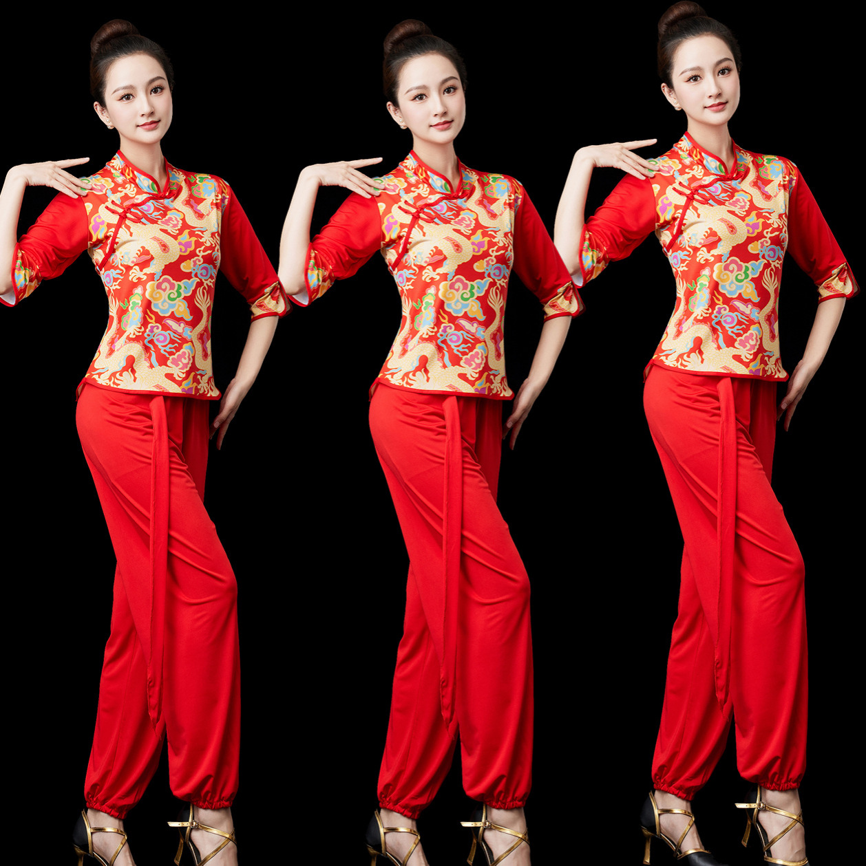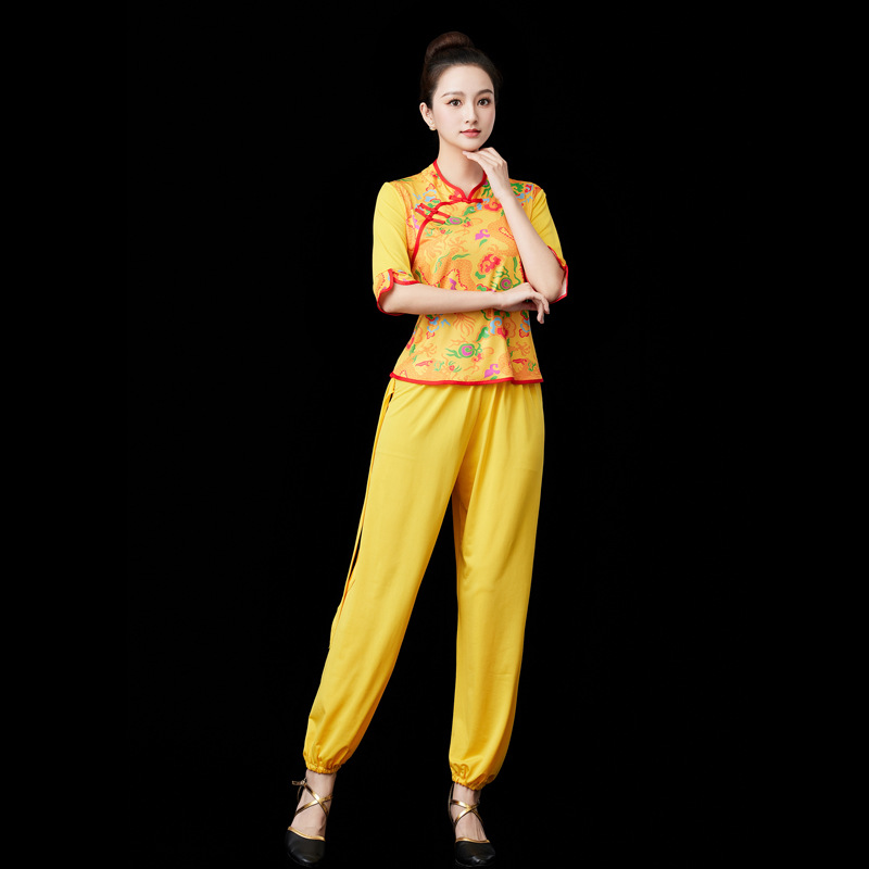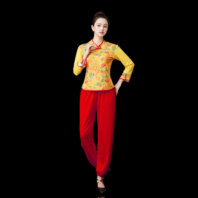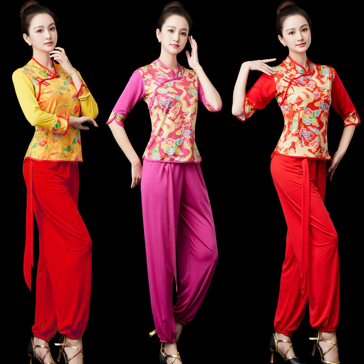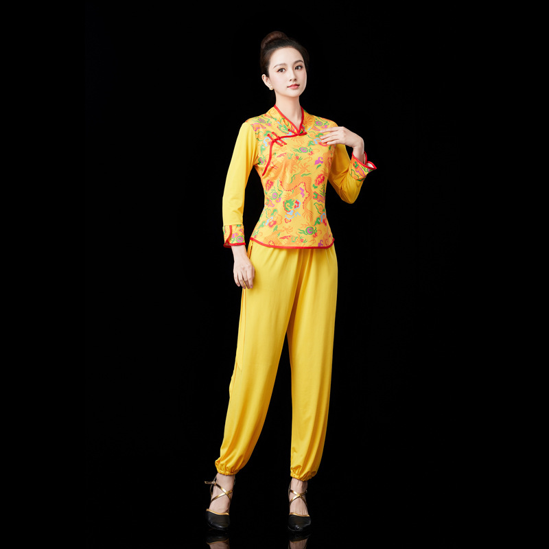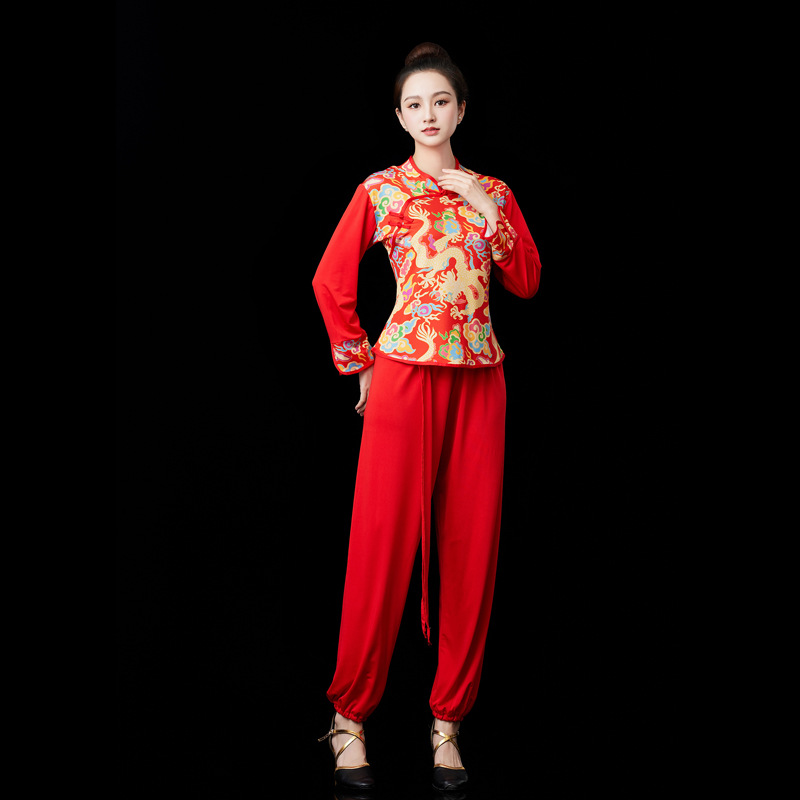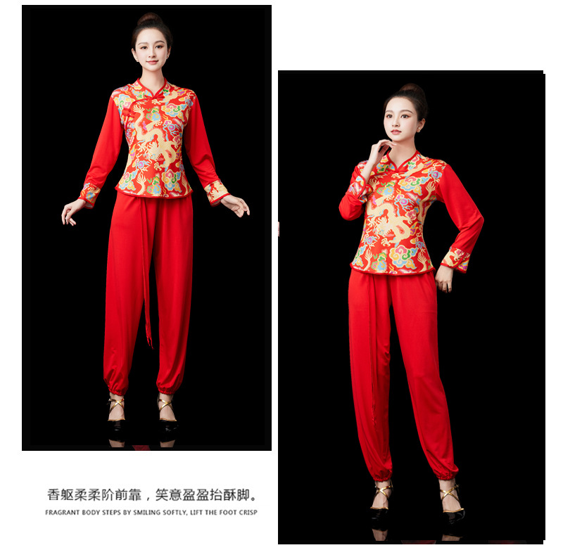 Красный воротник-стойка с длинными рукавами + красные шаровары.; Красный воротник-стойка с средним рукавом + красные шаровары; Желтый воротник-стойка с длинными рукавами + желтые шаровары; Желтый воротник-стойка с средним рукавом + желтые шаровары; Воротник-стойка с фиолетовой розой и длинными рукавами + шаровары фиолетового розового красного цвета; Воротник-стойка с фиолетовой розой и средним рукавом + шаровары фиолетовой розово-красного цвета; Желтый воротник-стойка, длинные рукава + красные шаровары.; Желтый воротник-стойка с средним рукавом + красные шаровары; Красный топ с длинными рукавами и одним воротником-стойкой; Желтый топ с длинными рукавами и одним воротником-стойкой; Топ с длинными рукавами с одним воротником-стойкой и фиолетовой розой; Топ с одним воротником-стойкой, фиолетовой розой и средними рукавами; Желтый топ среднего рукава с одним воротником-стойкой; Красный топ с одним воротником-стойкой и средними рукавами.; Цельный предмет светлых брюк-дракон с красной лентой; Брюки-дракон с одинарной фиолетовой лентой и лентой в форме розы; Цельные брюки светлого дракона с желтой лентой