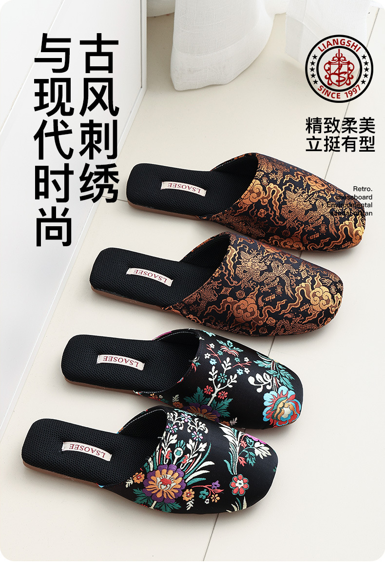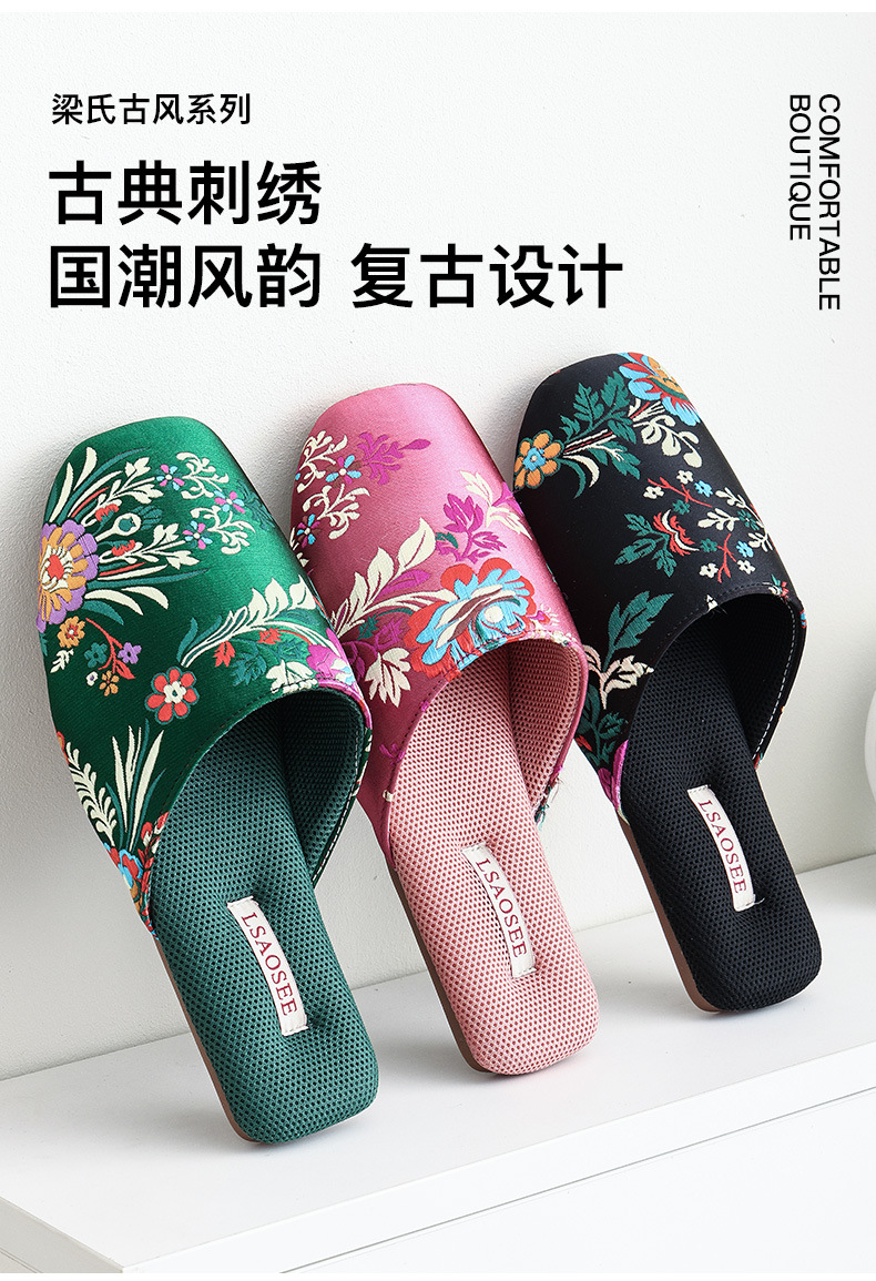 2024 весна и лето в китайском стиле новые китайские вышитые тапочки высокого класса легкий и роскошный классический говяжий дно