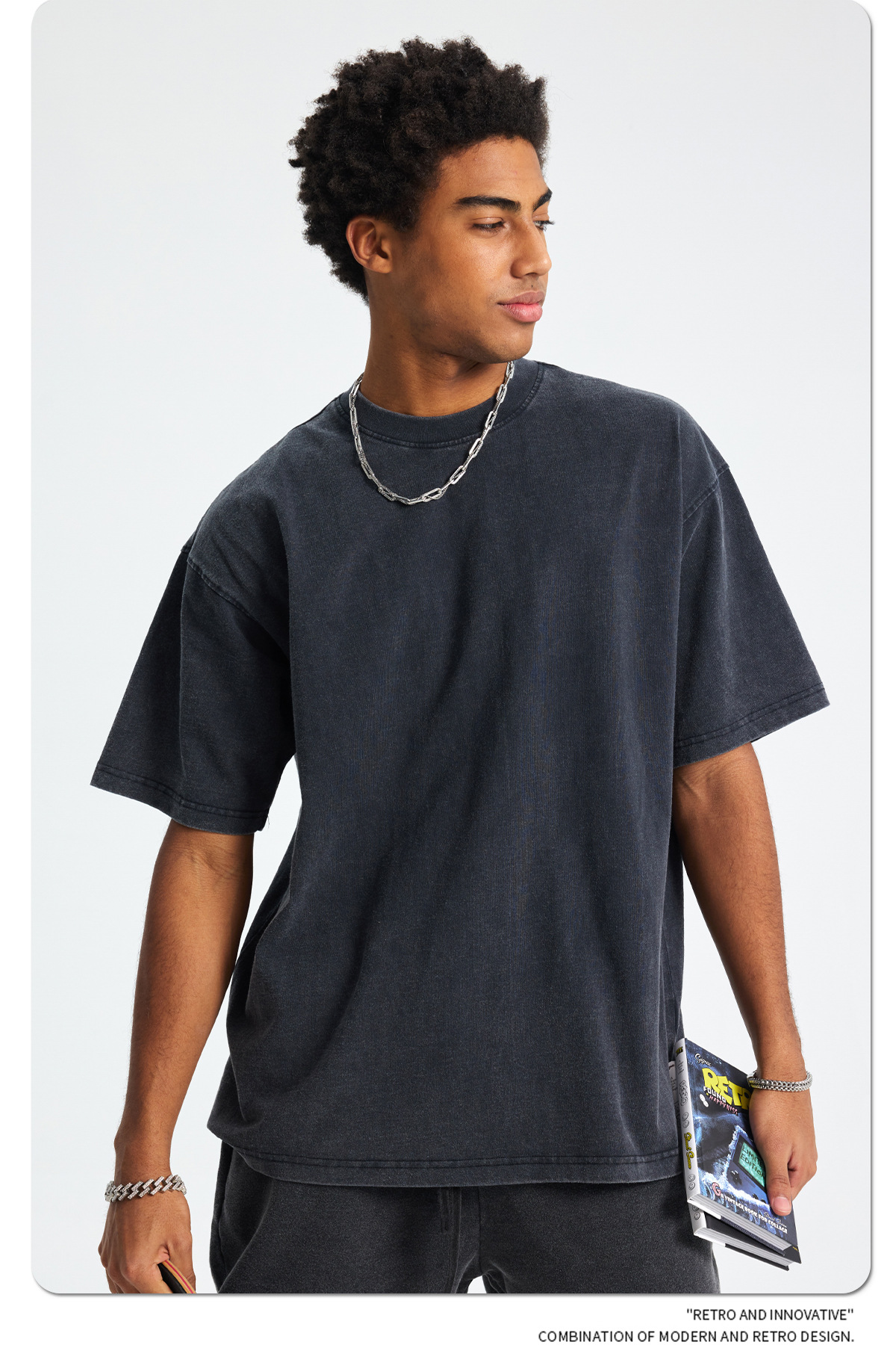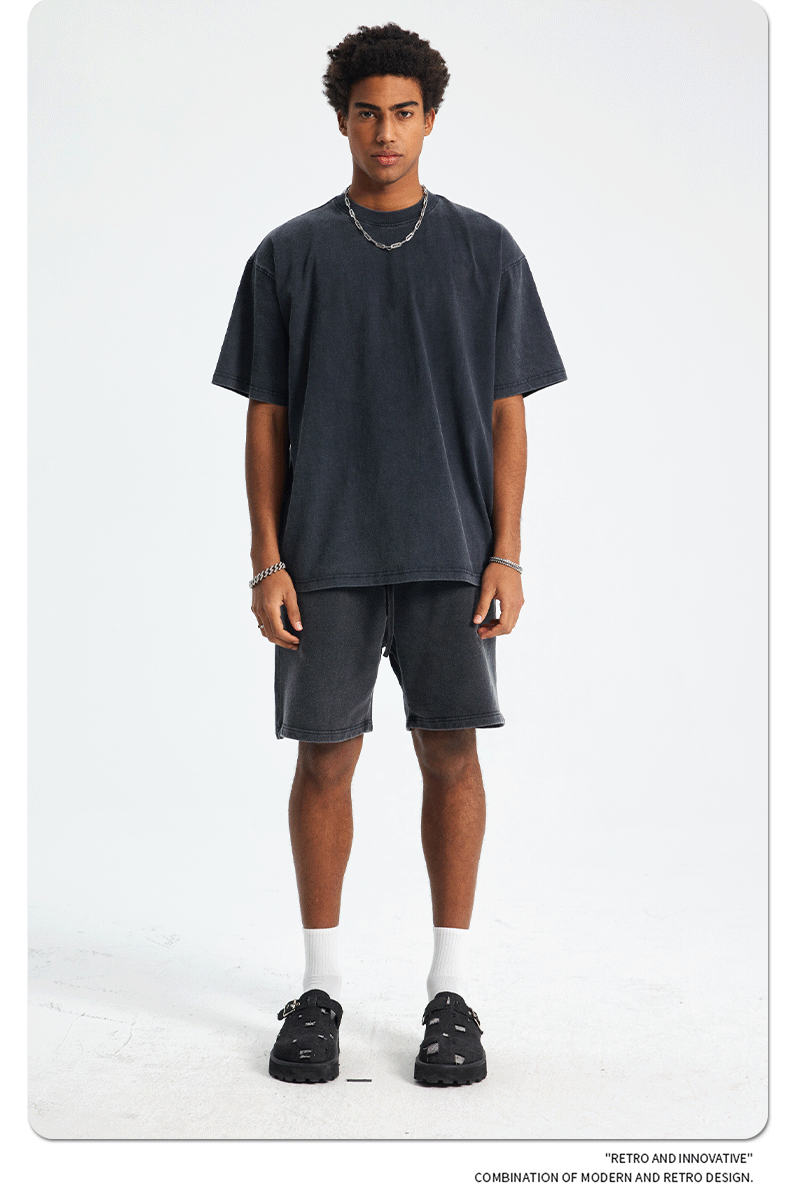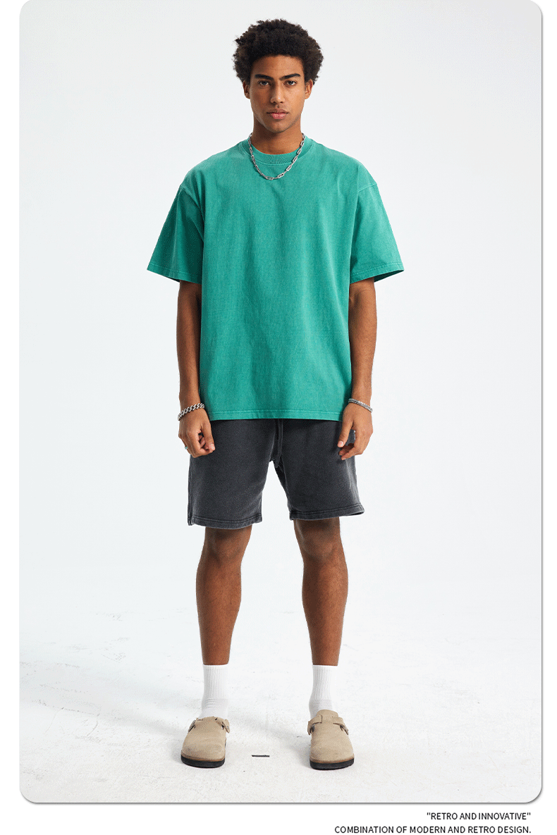 2025 летний новый продукт, тяжелая вес 250 г, потертая потертая футболка с короткими рукавами в стиле ретро, мужская свободная хлопковая мужская футболка в стиле ретро