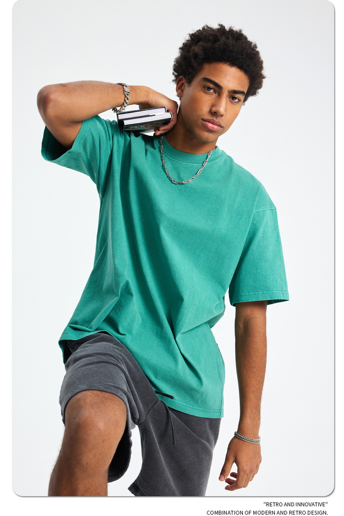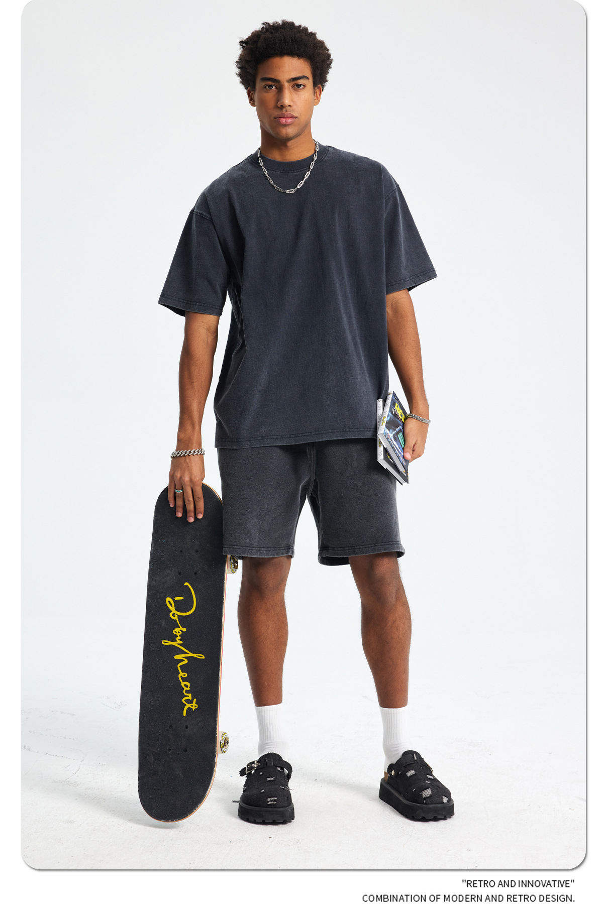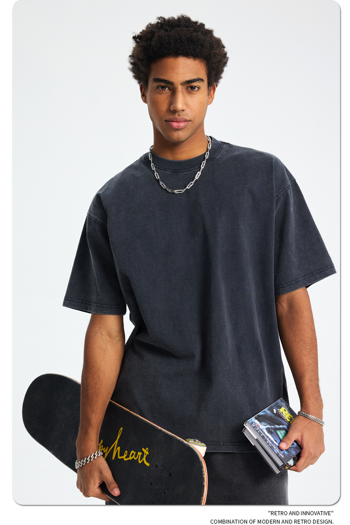 2025 летний новый продукт, тяжелая вес 250 г, потертая потертая футболка с короткими рукавами в стиле ретро, мужская свободная хлопковая мужская футболка в стиле ретро