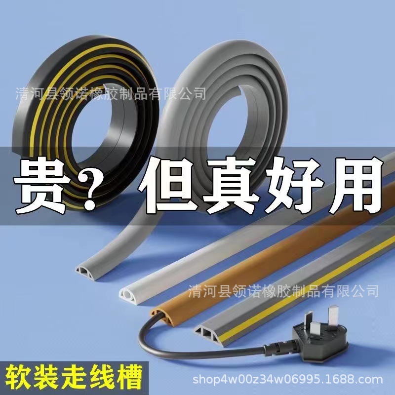 Кабель-канал из ПВХ, мягкий, самоклеящийся, огнестойкий, изогнутый, для пола, накладной, с защитой от наступления на кабель, для организации и прокладки проводов