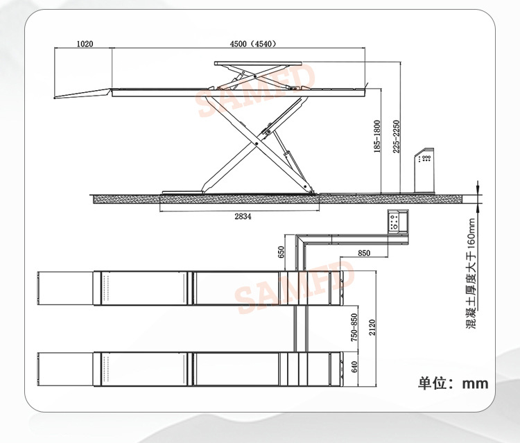 Ультратонкий подъемник ножничного типа для регулировки развала-схождения, подъемник для ремонта автомобилей без пазов, ножничный подъемник для автосервиса 4S.