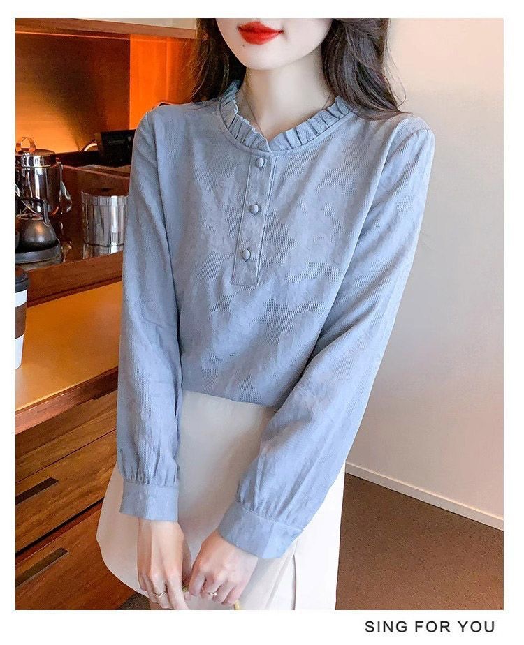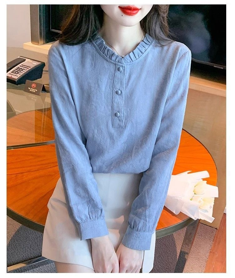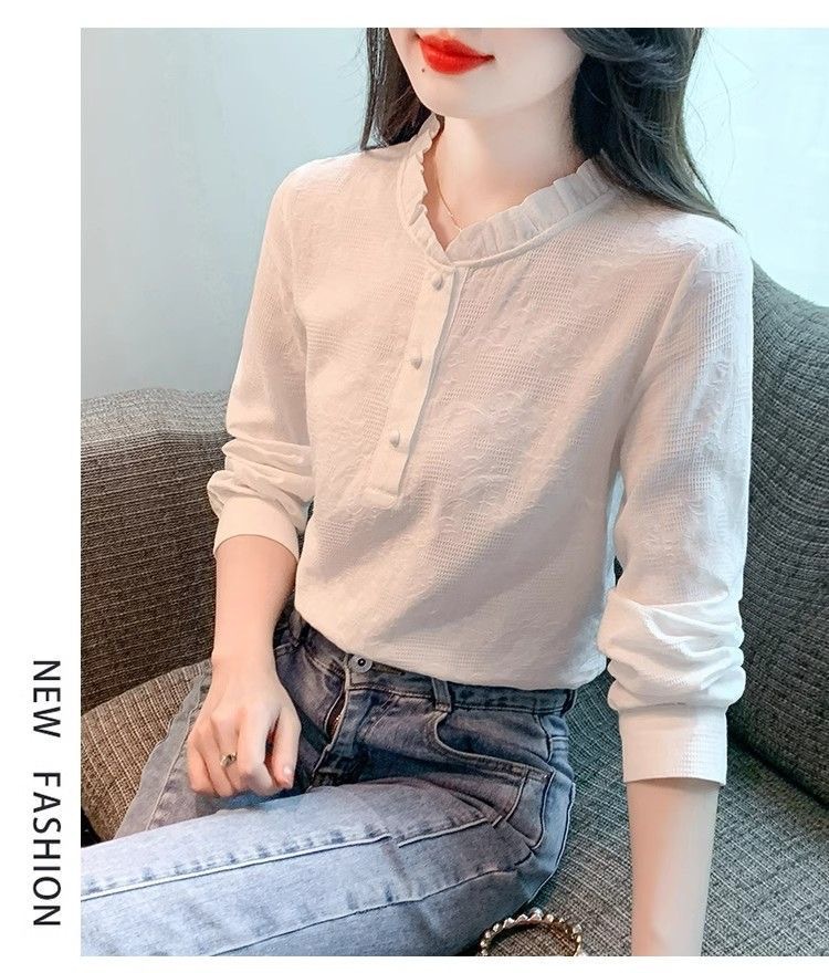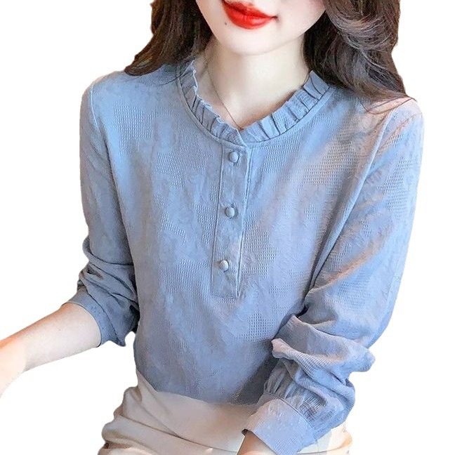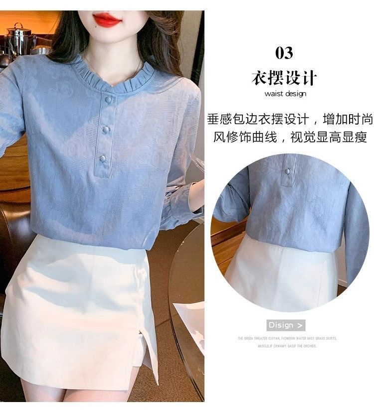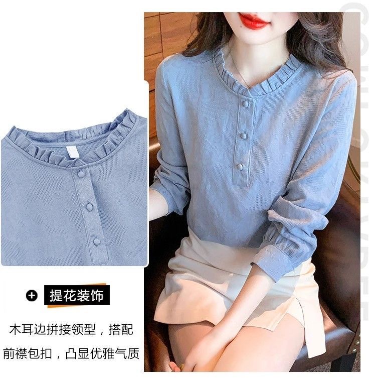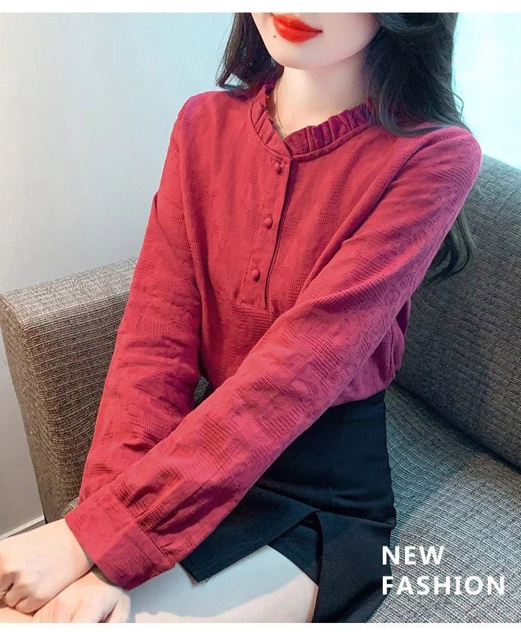 Рубашка женская с воротником в виде листьев лотоса, жаккардовая хлопковая весенняя новая универсальная рубашка с длинными рукавами, тонкая рубашка-топ