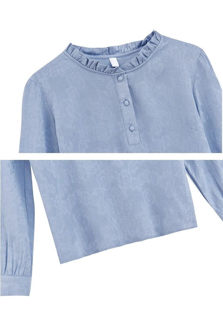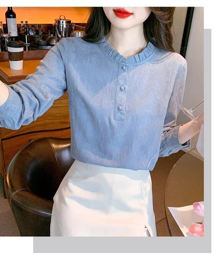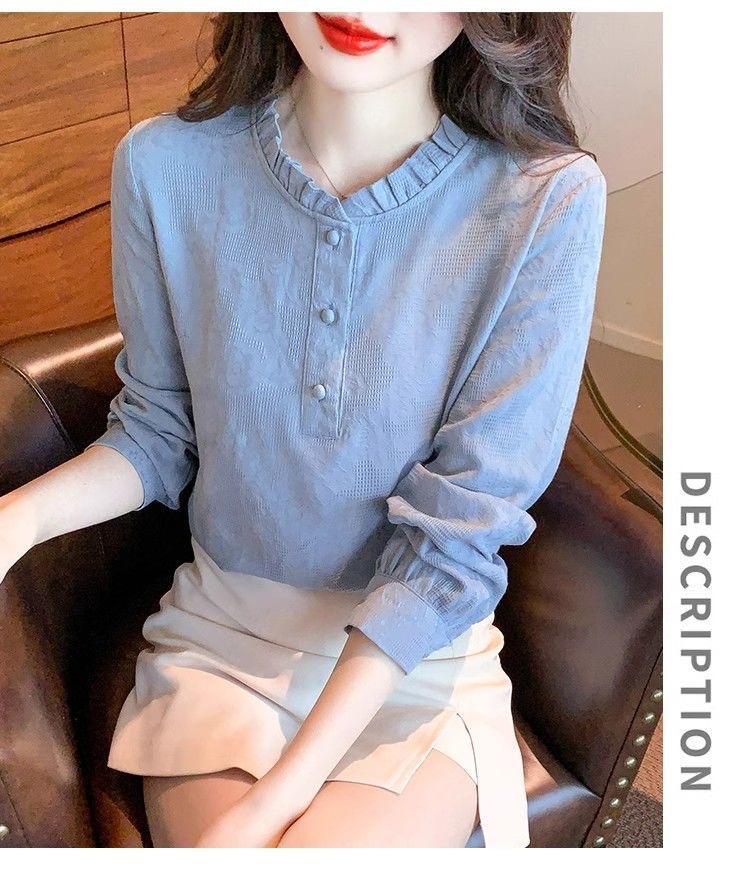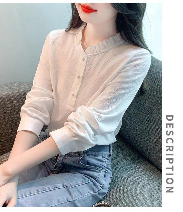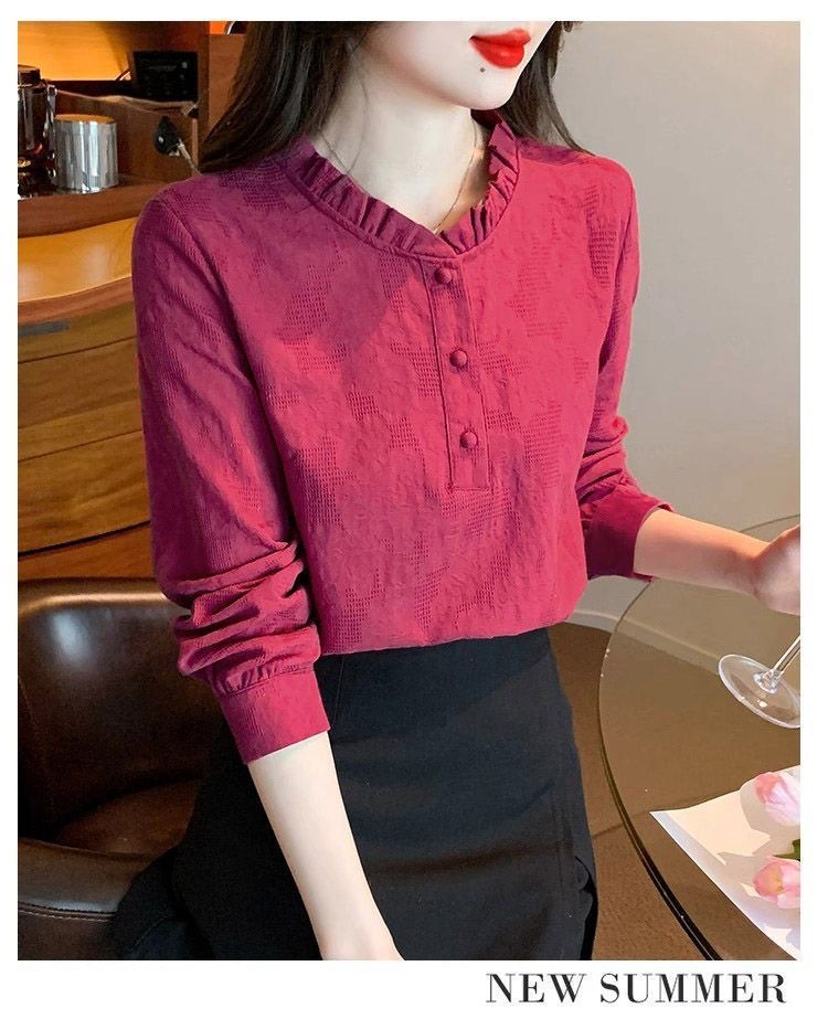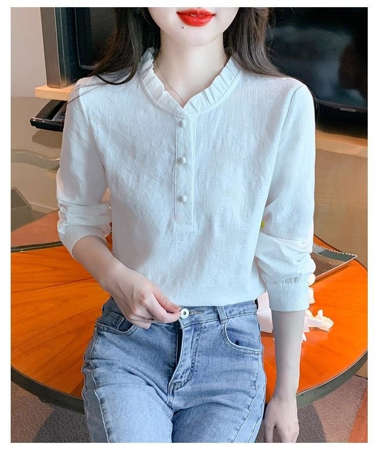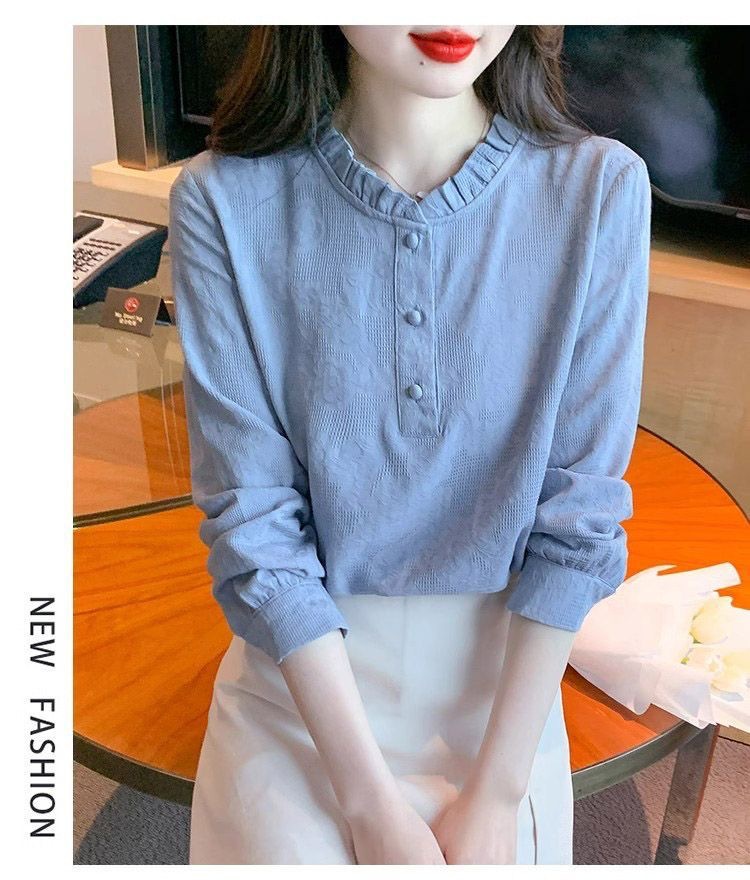 Рубашка женская с воротником в виде листьев лотоса, жаккардовая хлопковая весенняя новая универсальная рубашка с длинными рукавами, тонкая рубашка-топ