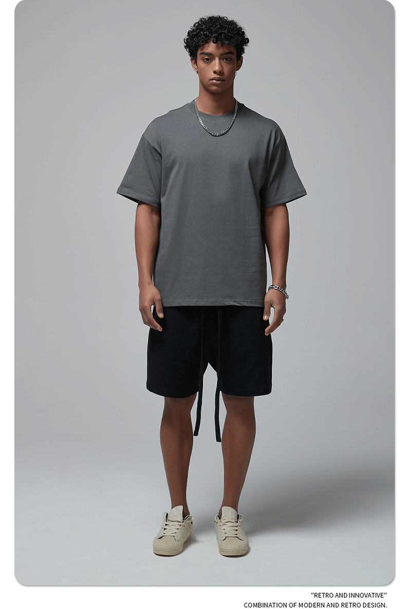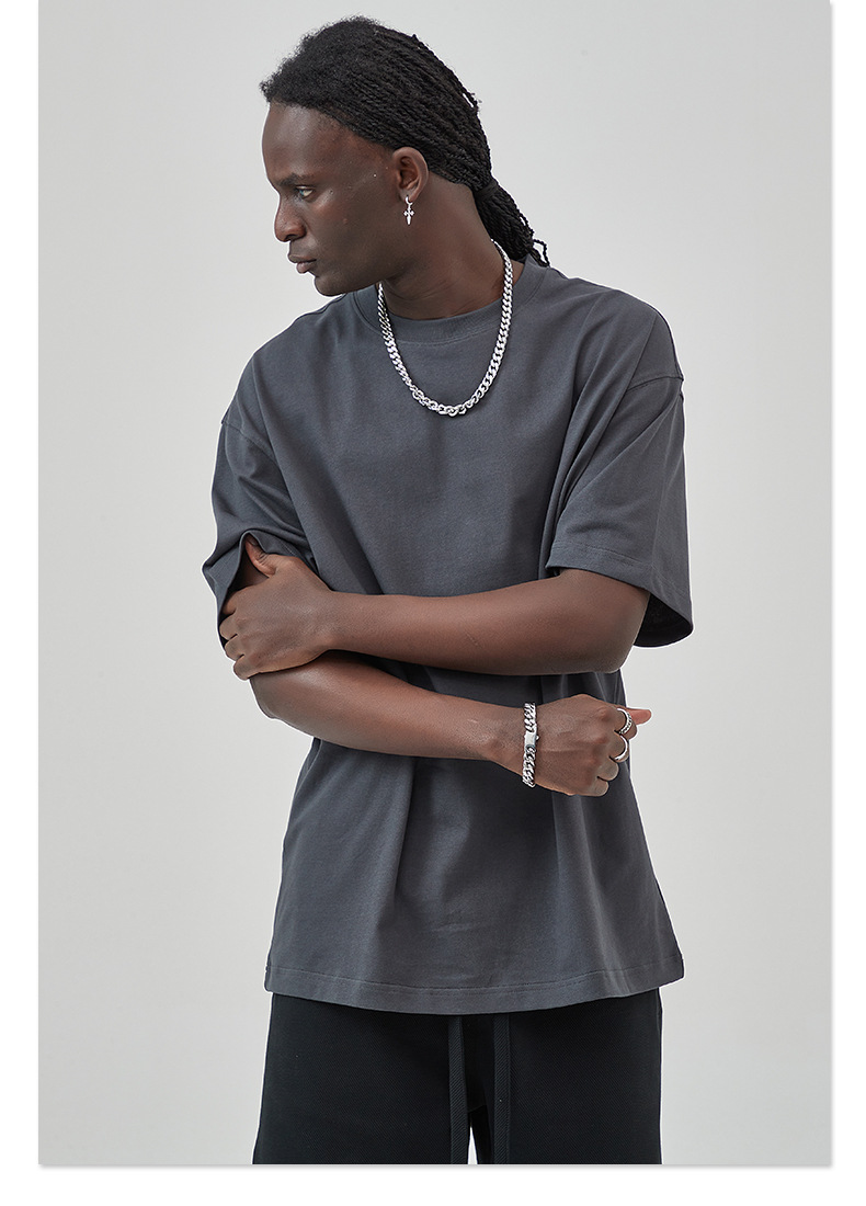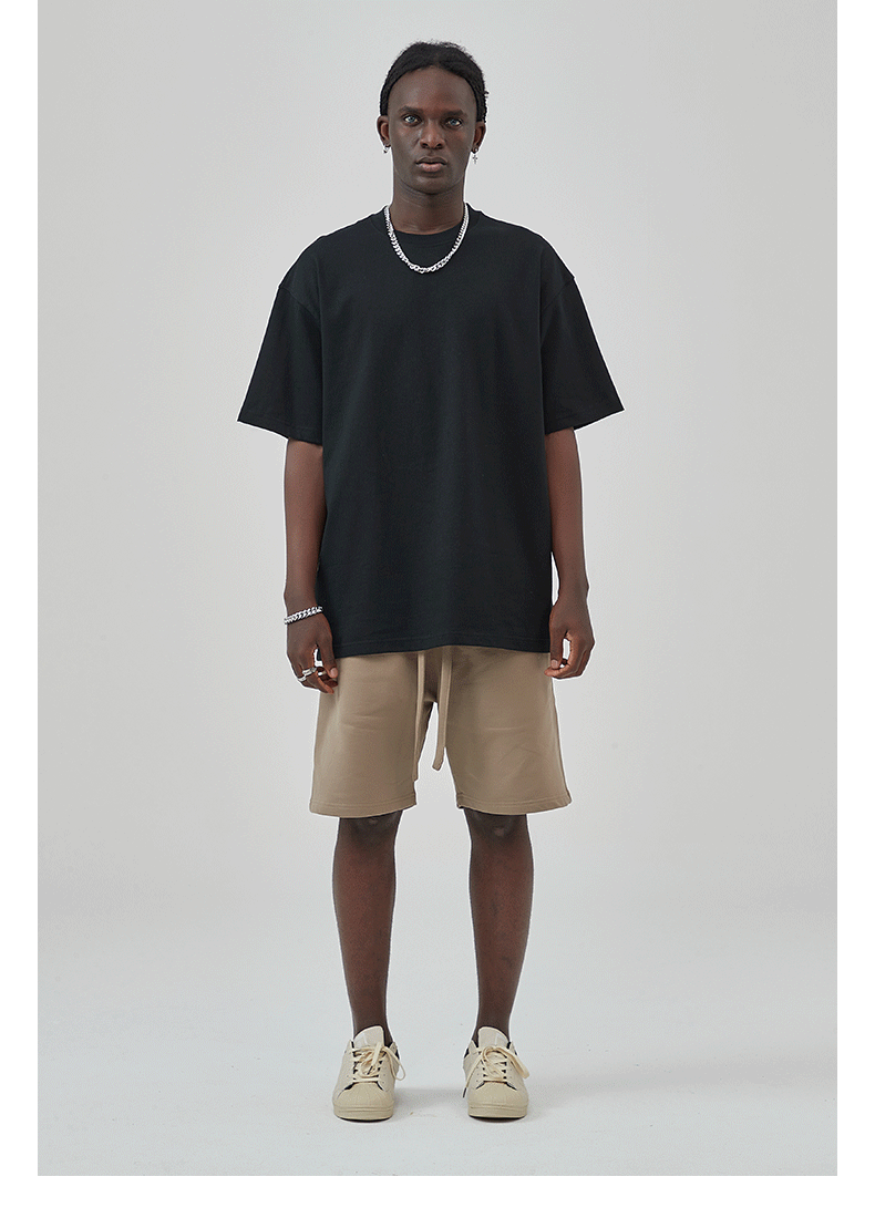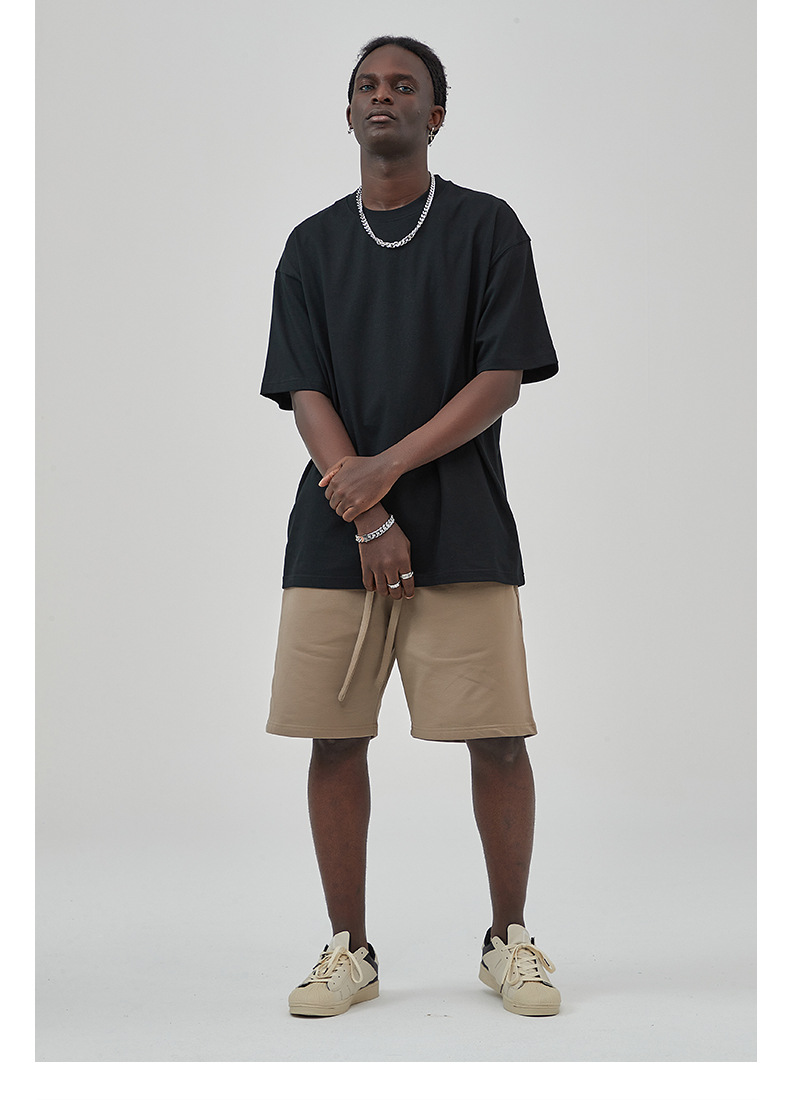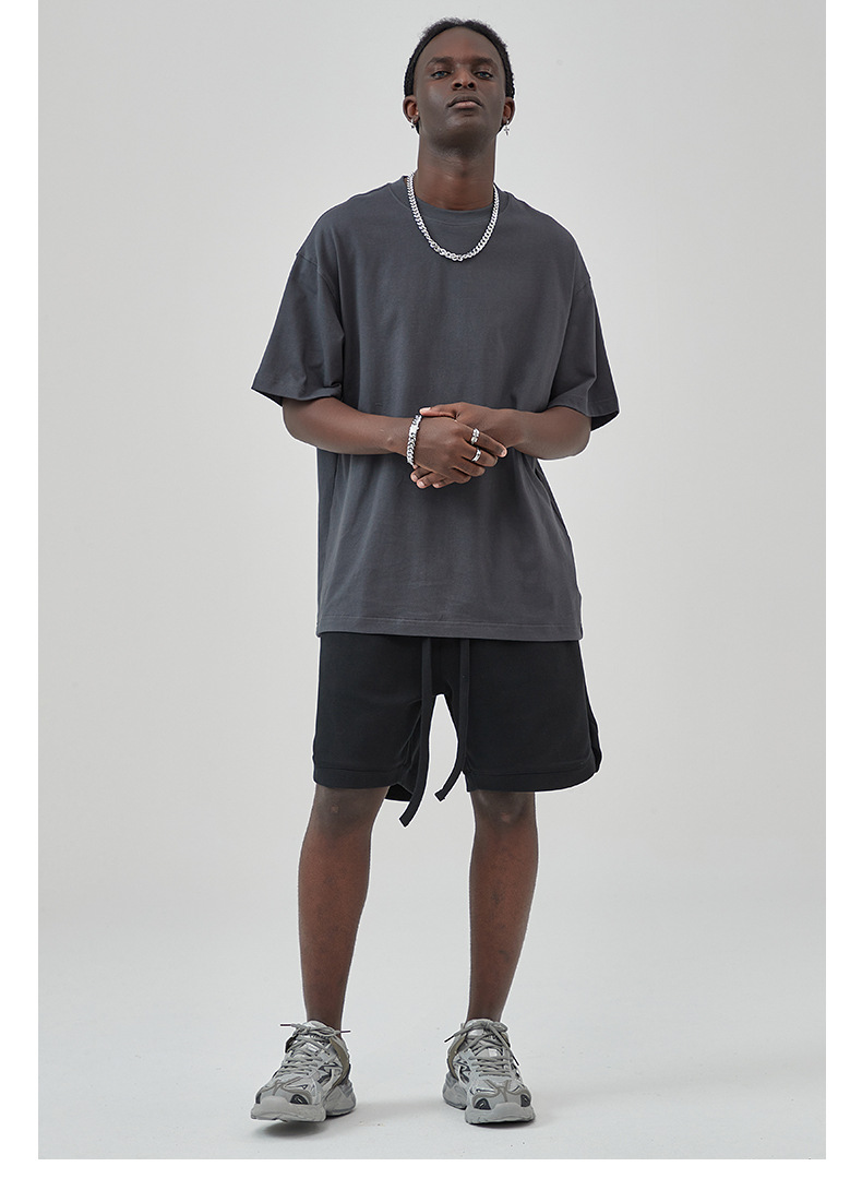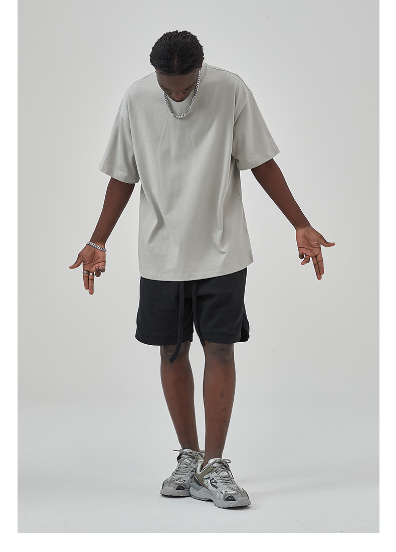 2025 новый продукт, 275 г, свободная однотонная футболка с короткими рукавами, мужская футболка из чистого хлопка FOG, мужская модная брендовая мужская одежда больших размеров