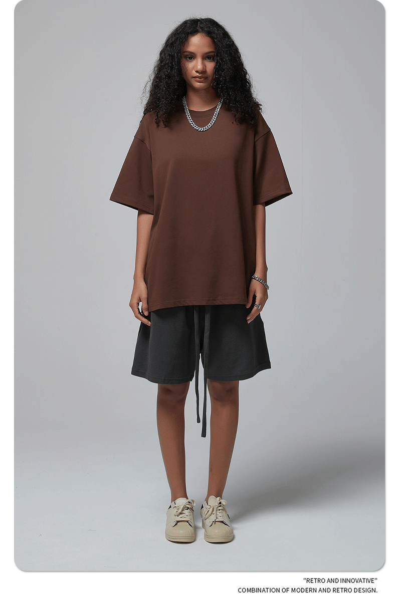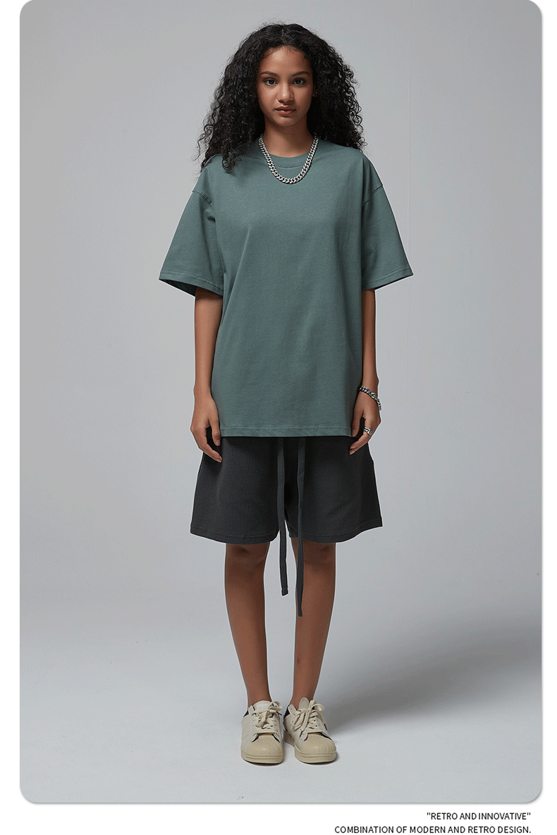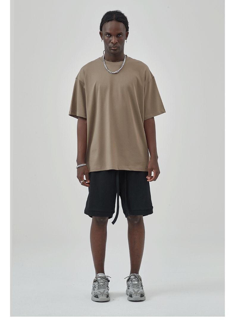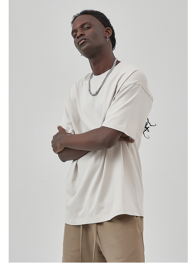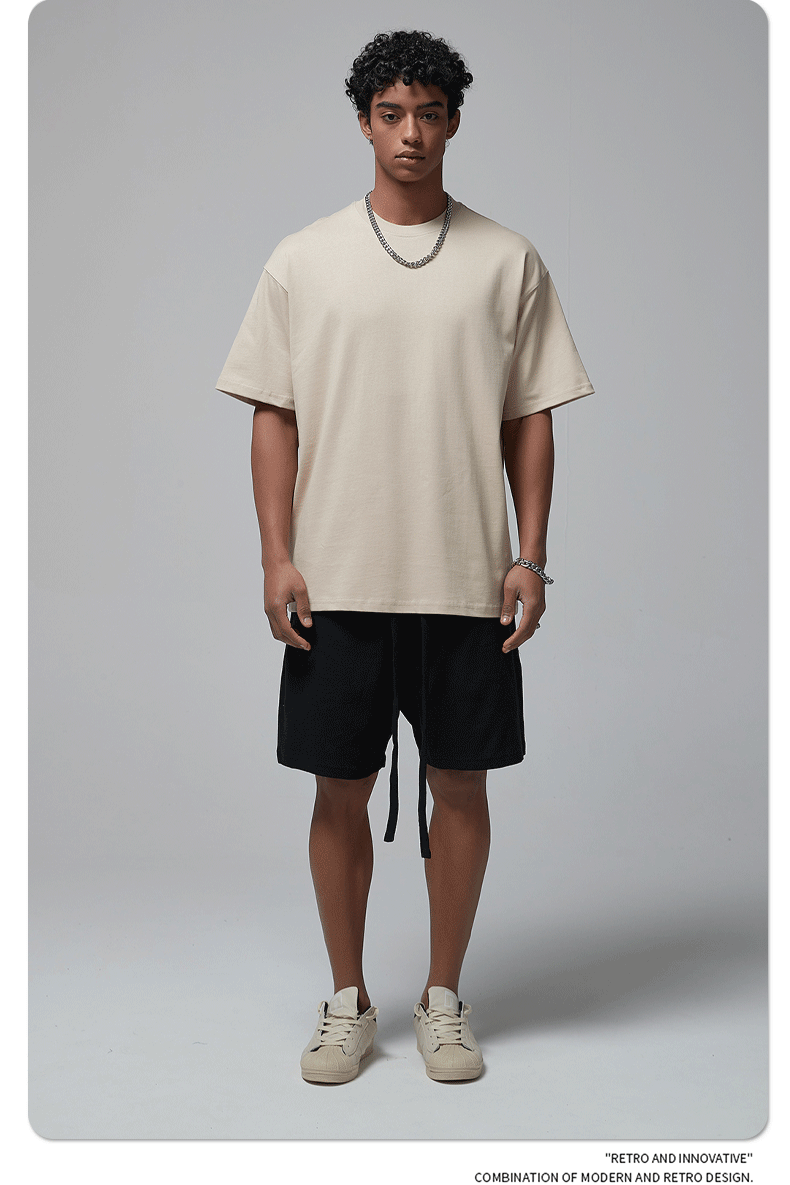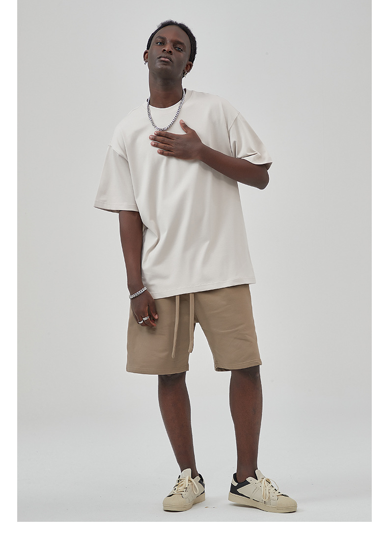 2025 новый продукт, 275 г, свободная однотонная футболка с короткими рукавами, мужская футболка из чистого хлопка FOG, мужская модная брендовая мужская одежда больших размеров