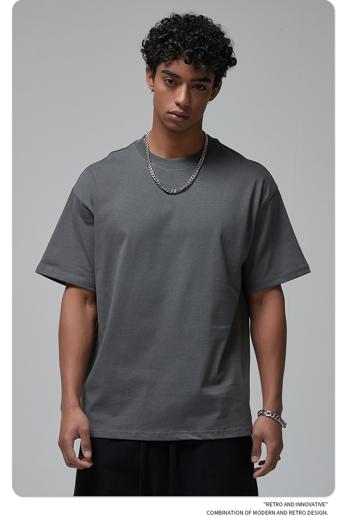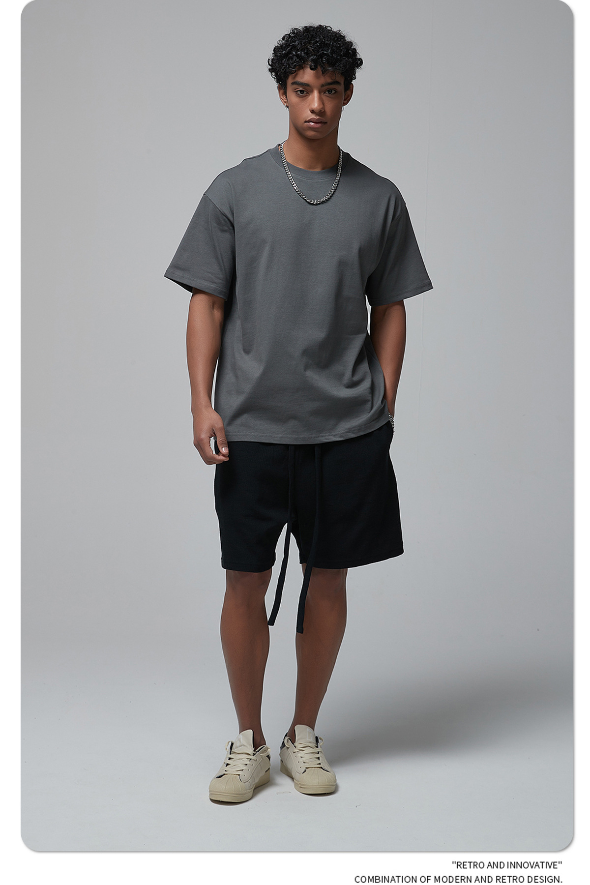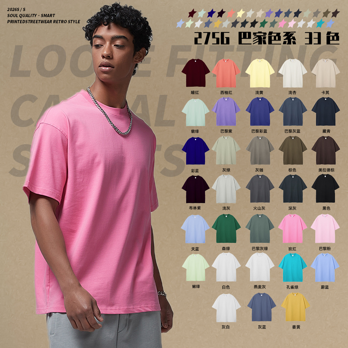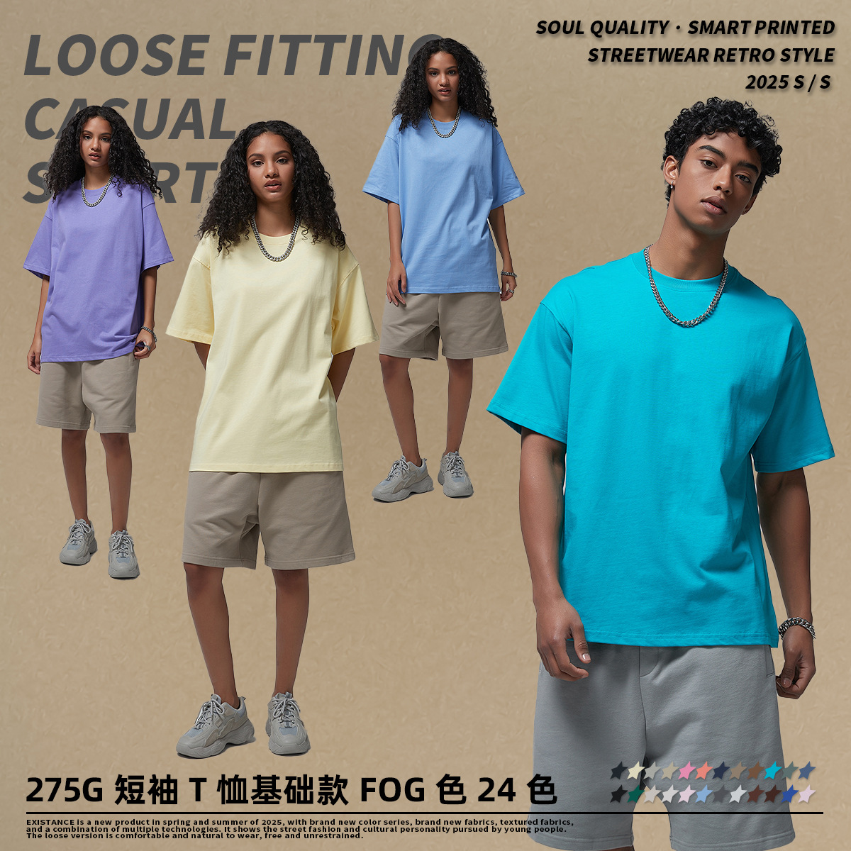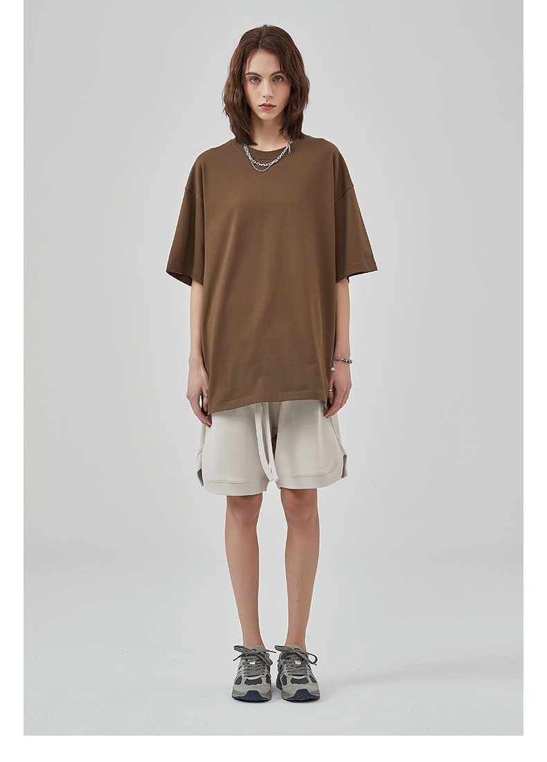 2025 новый продукт, 275 г, свободная однотонная футболка с короткими рукавами, мужская футболка из чистого хлопка FOG, мужская модная брендовая мужская одежда больших размеров