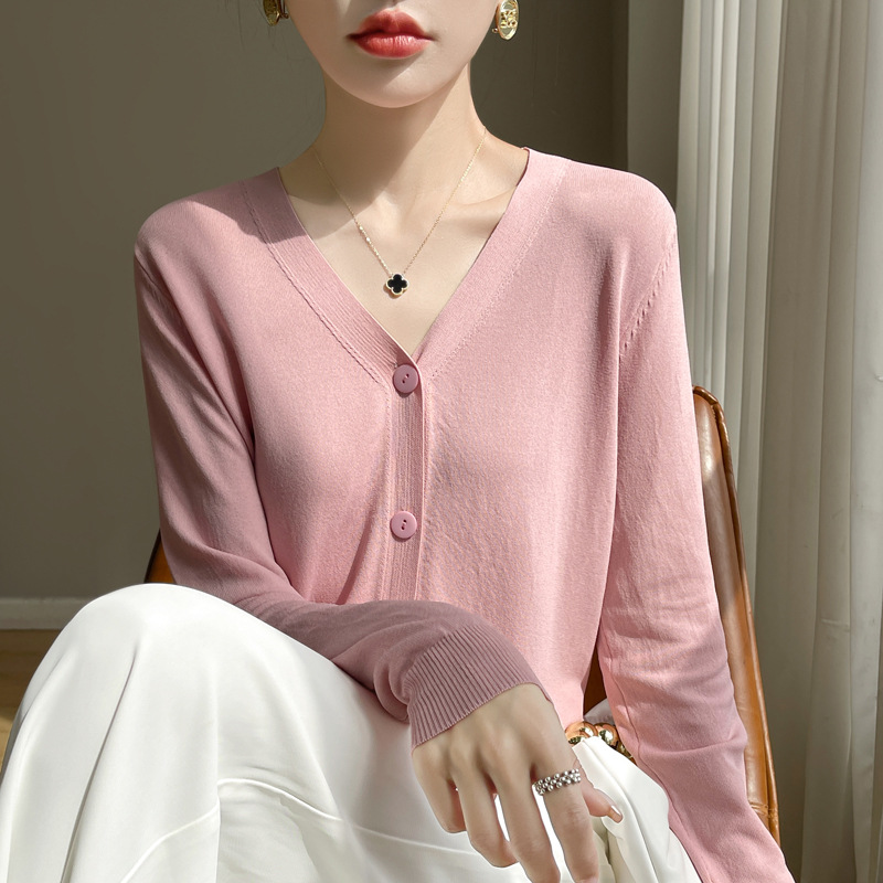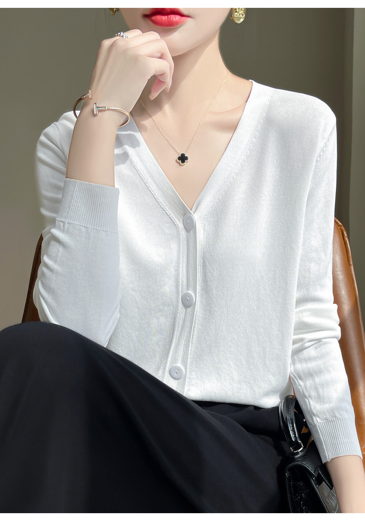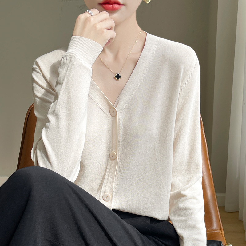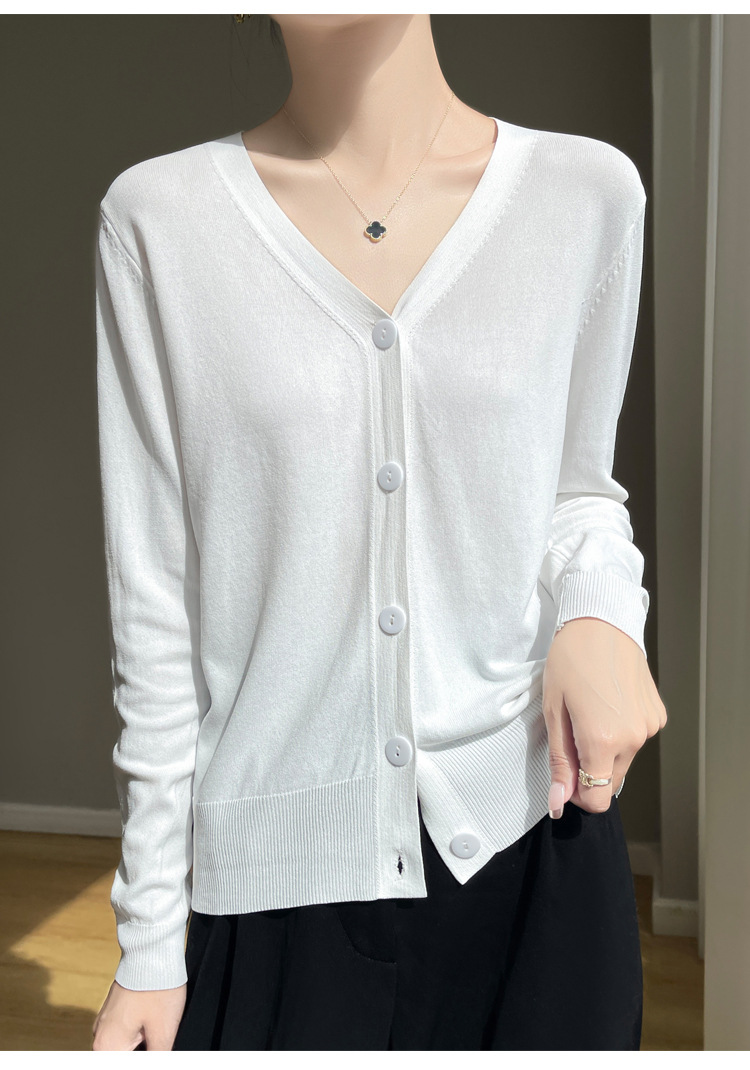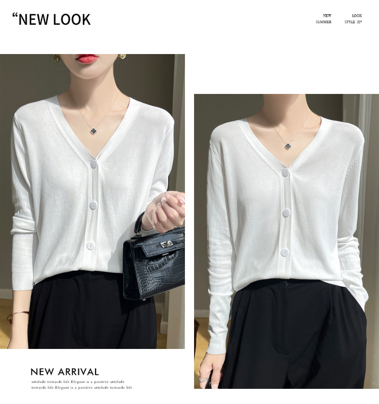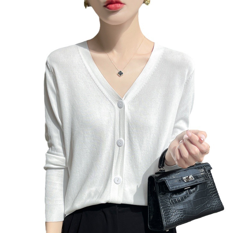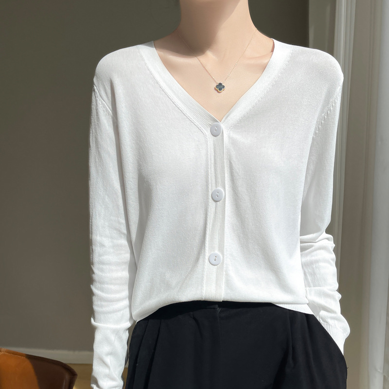 Белый короткий ледяной шелк вязаный солнцезащитный кардиган женский тонкий летний подтяжка юбка снаружи тюль куртка кондиционер блузка