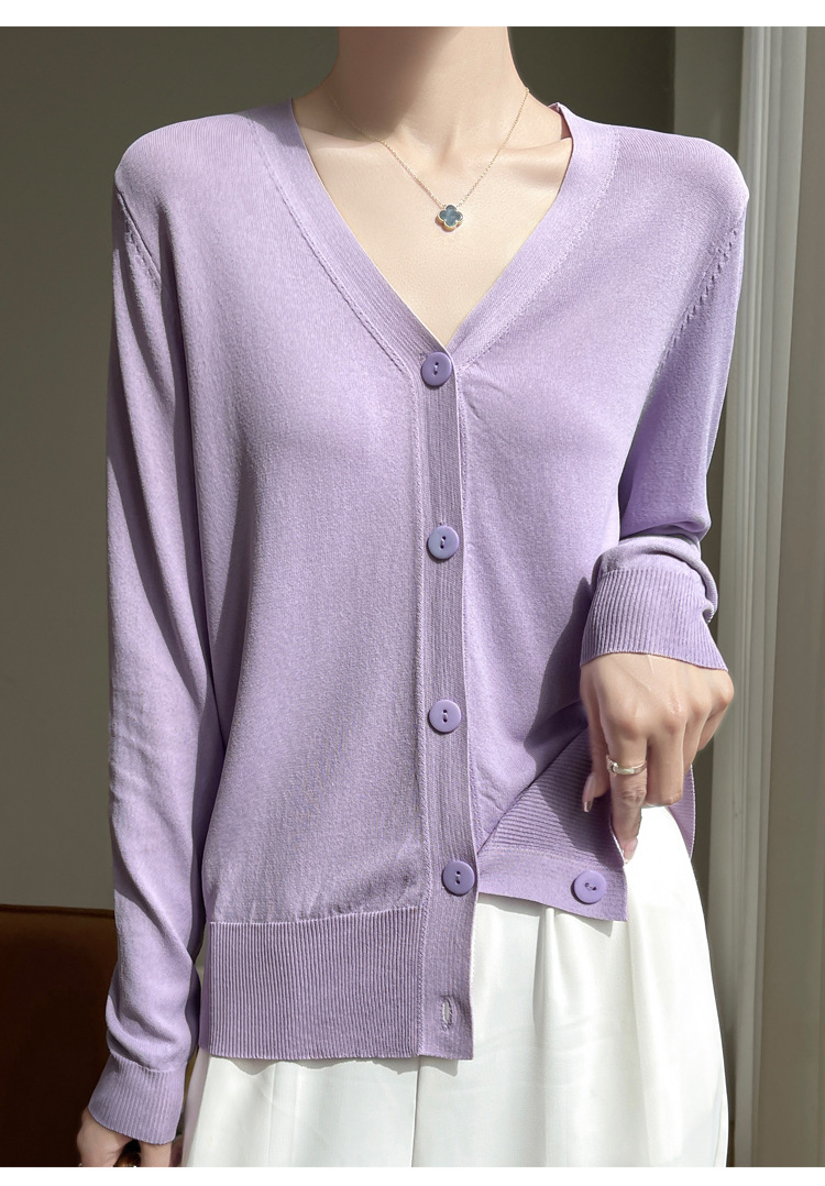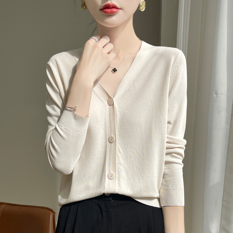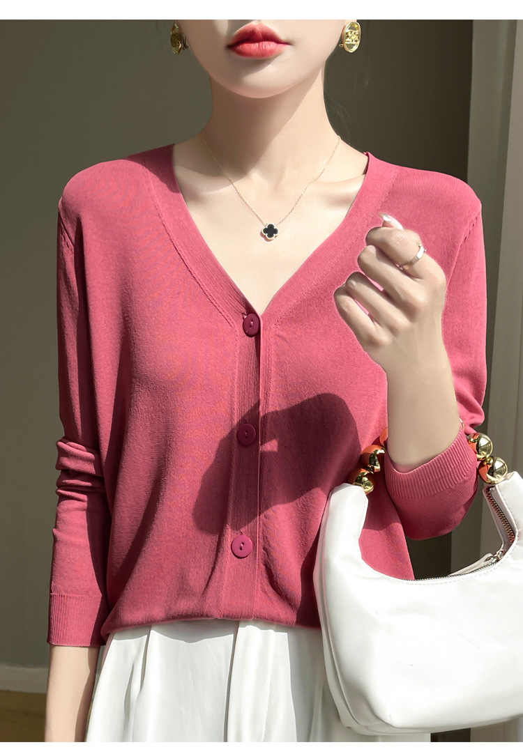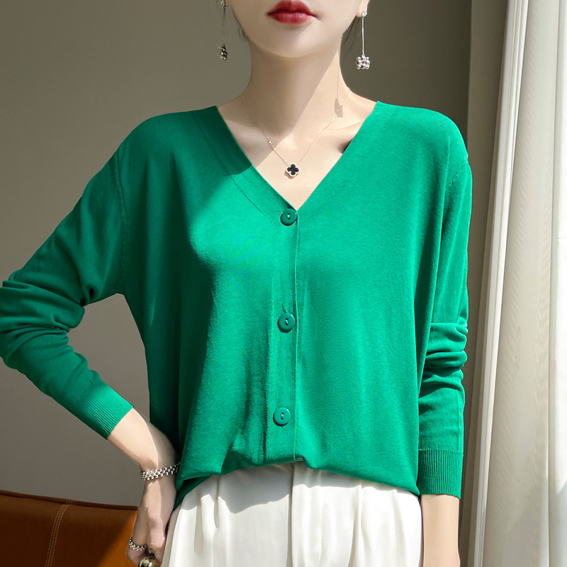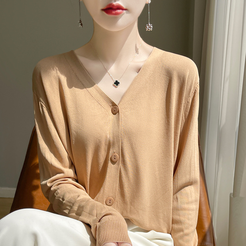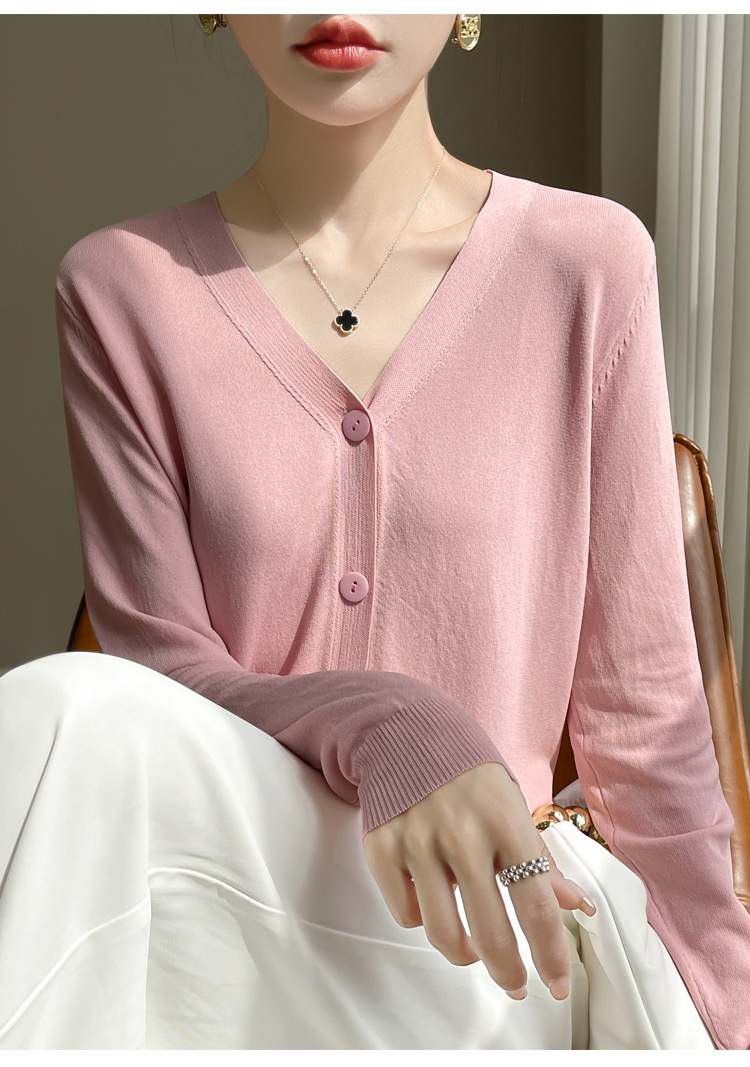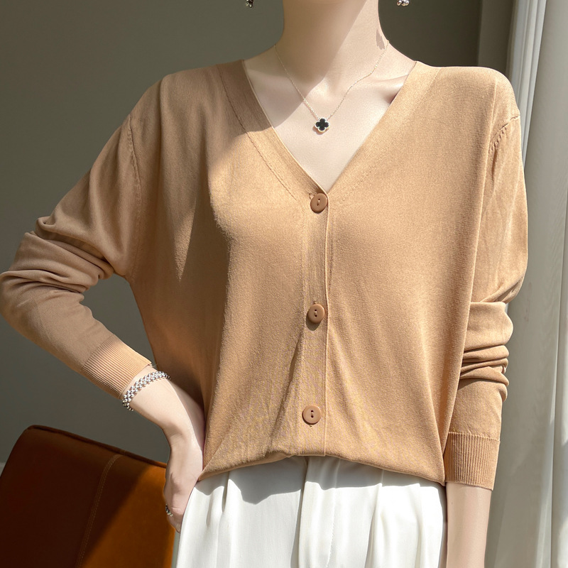 Белый короткий ледяной шелк вязаный солнцезащитный кардиган женский тонкий летний подтяжка юбка снаружи тюль куртка кондиционер блузка