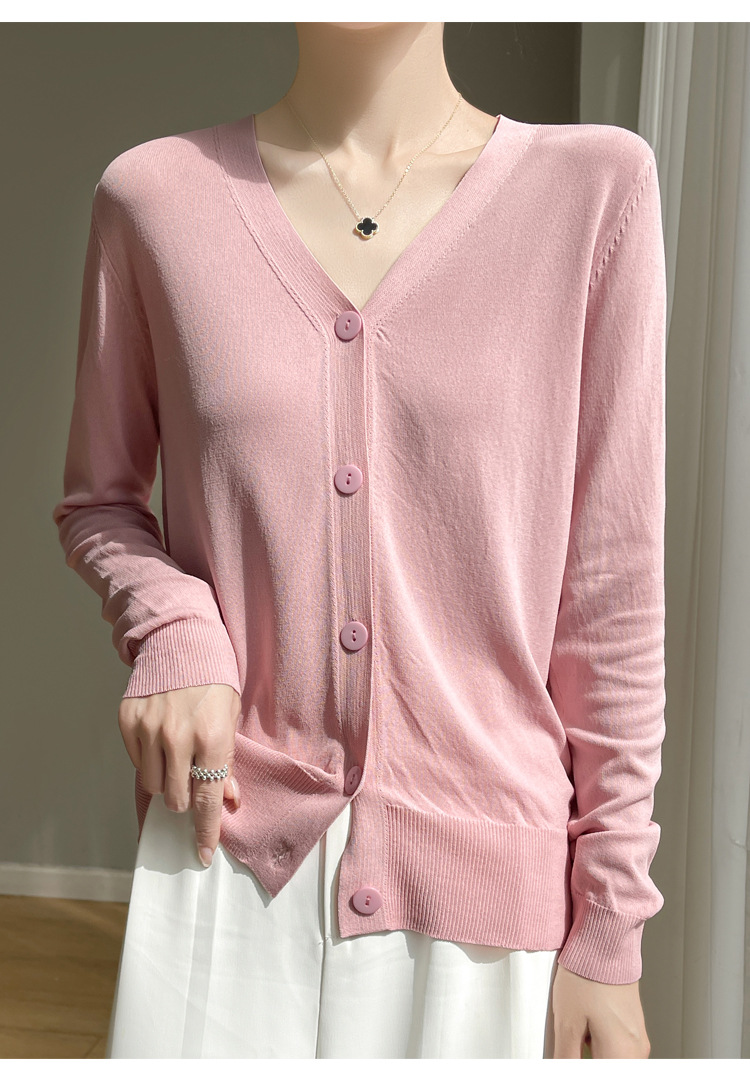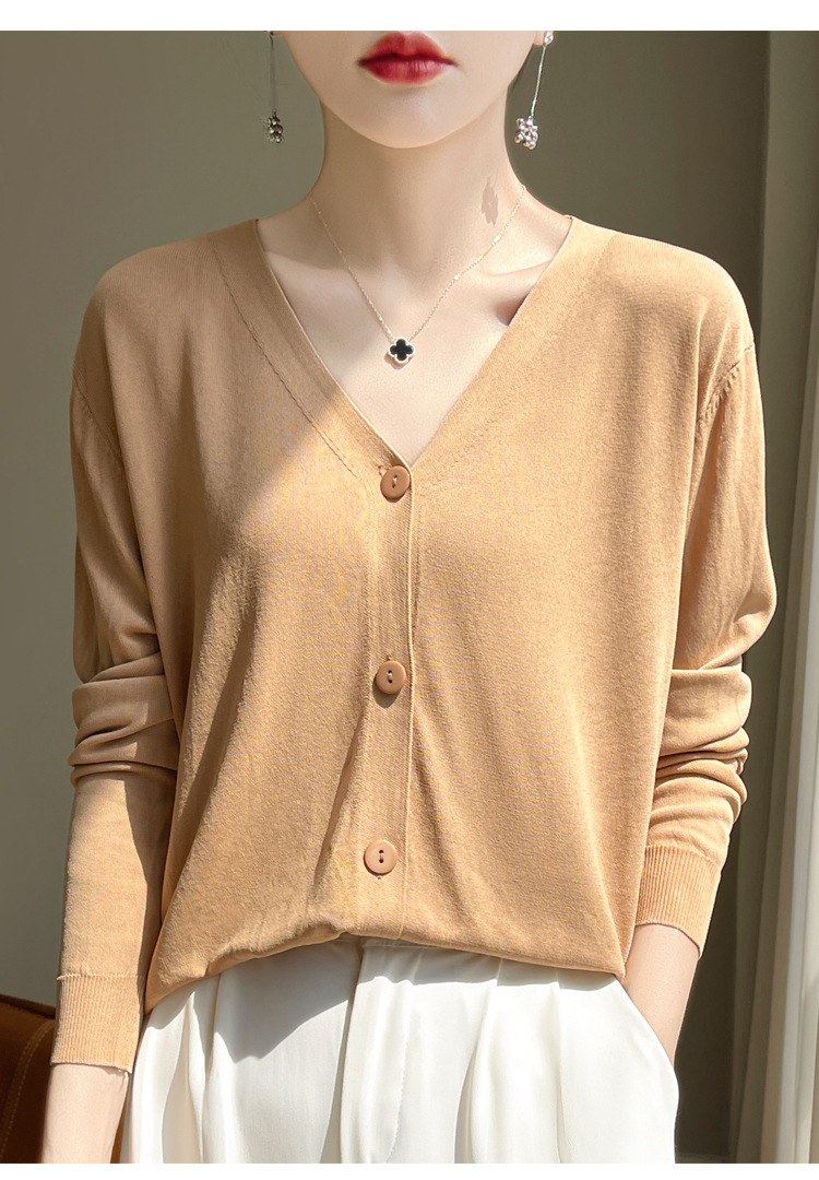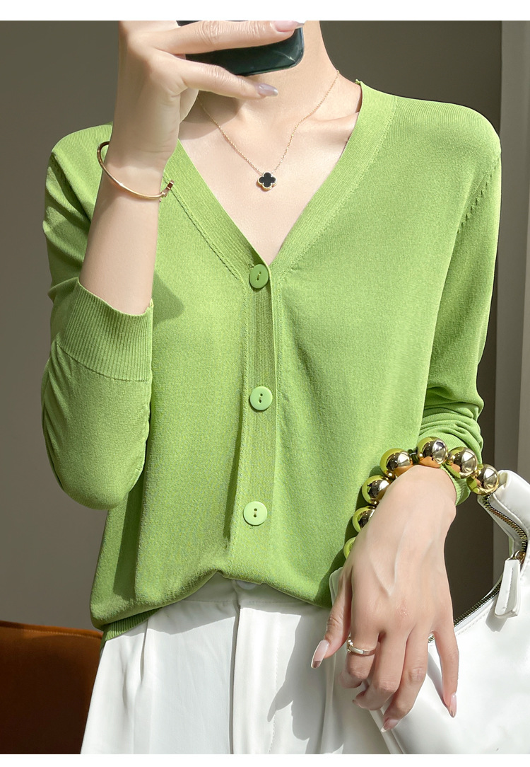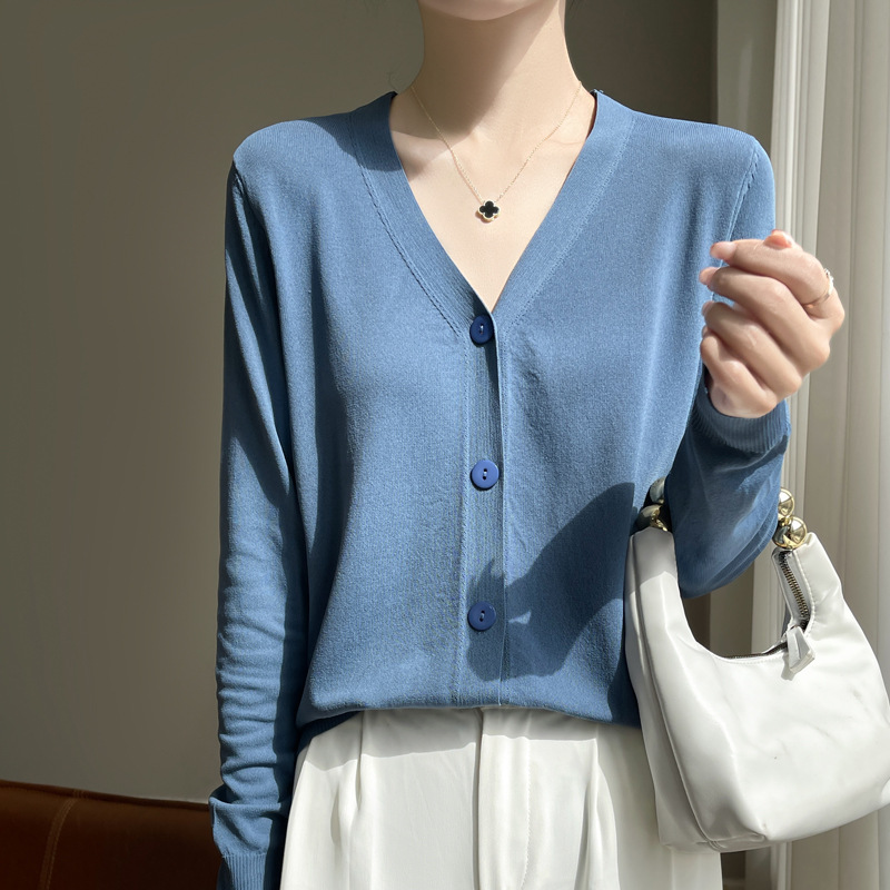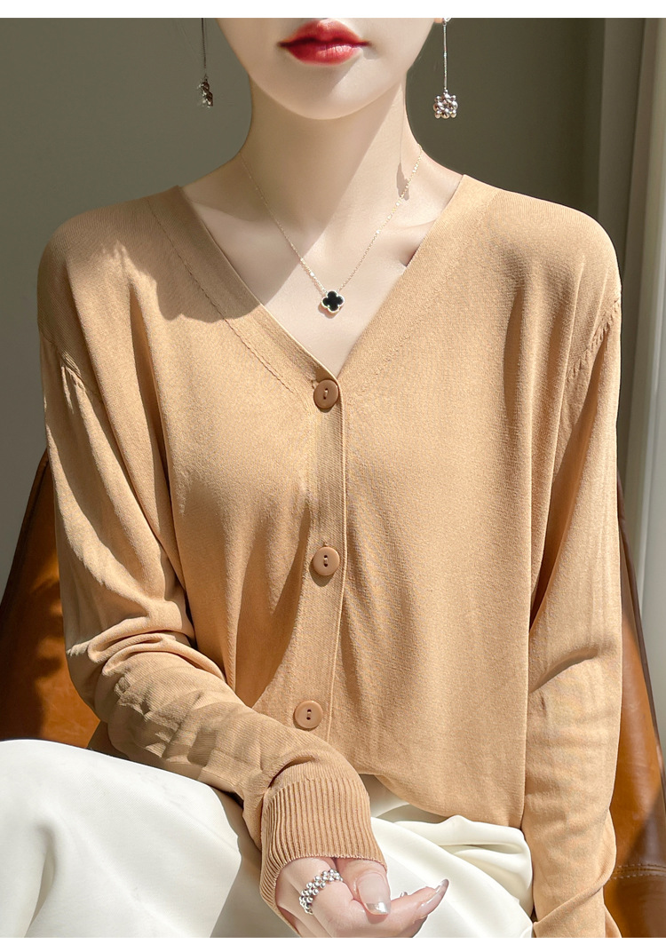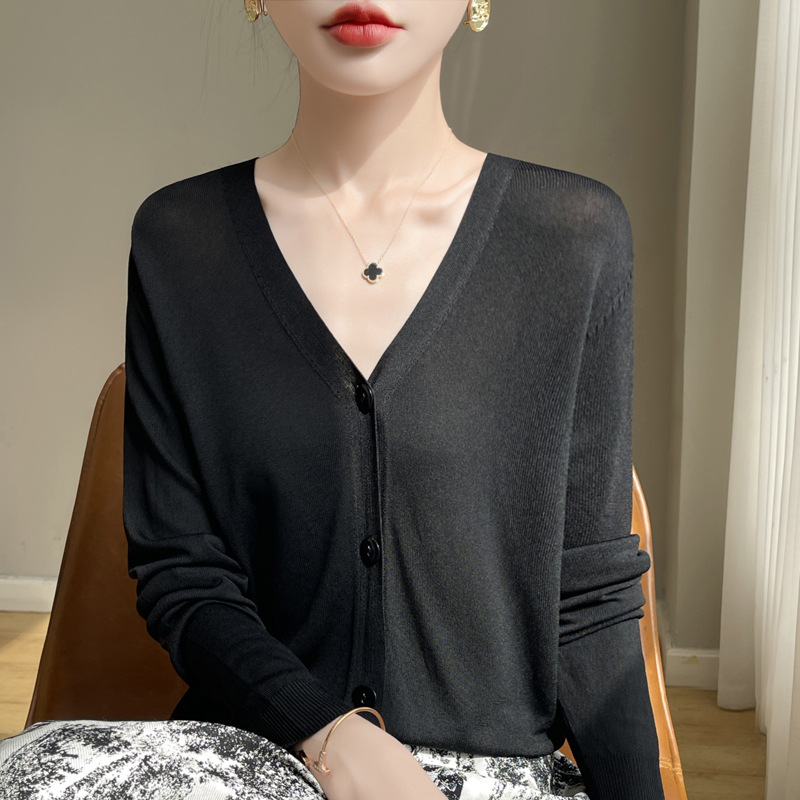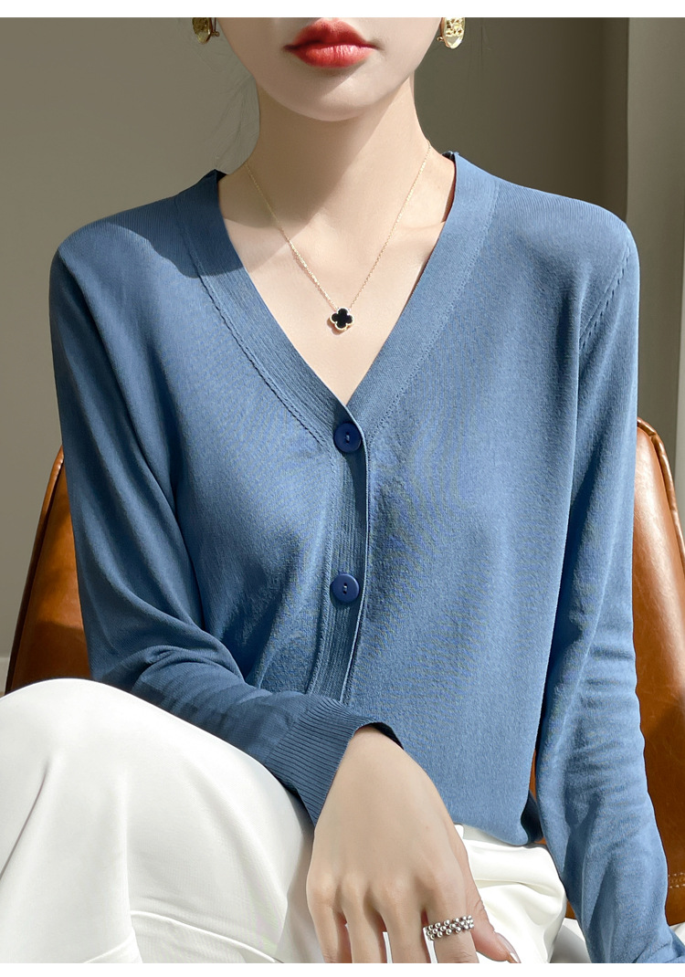 Белый короткий ледяной шелк вязаный солнцезащитный кардиган женский тонкий летний подтяжка юбка снаружи тюль куртка кондиционер блузка