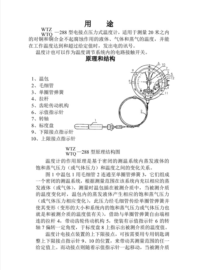 WTZ-288 Гальванический термометр давления Термометр давления Ronghua Tian Lake Hongqi East Asia Радар