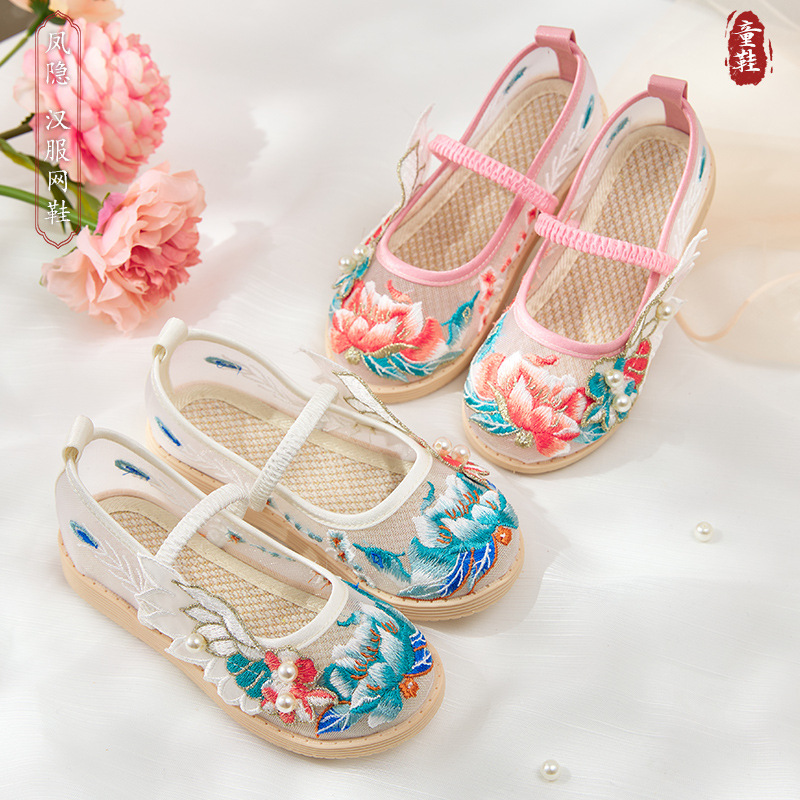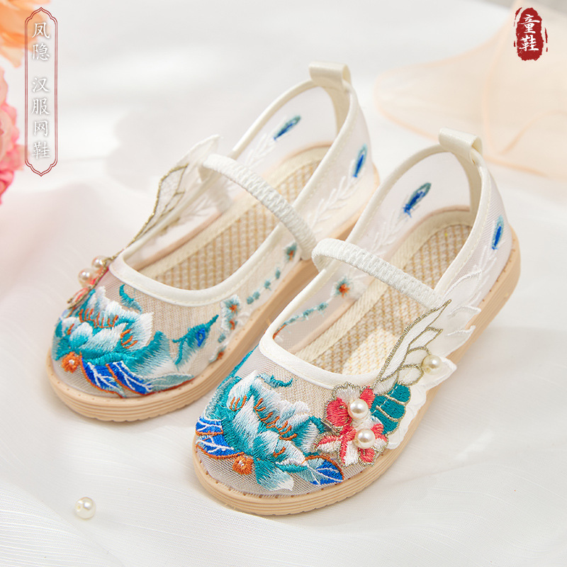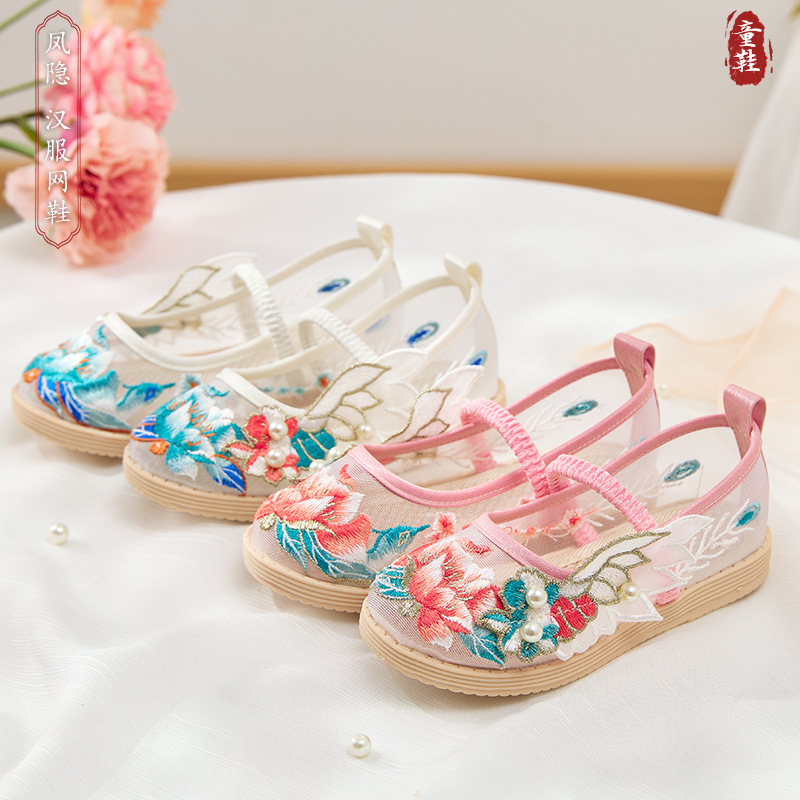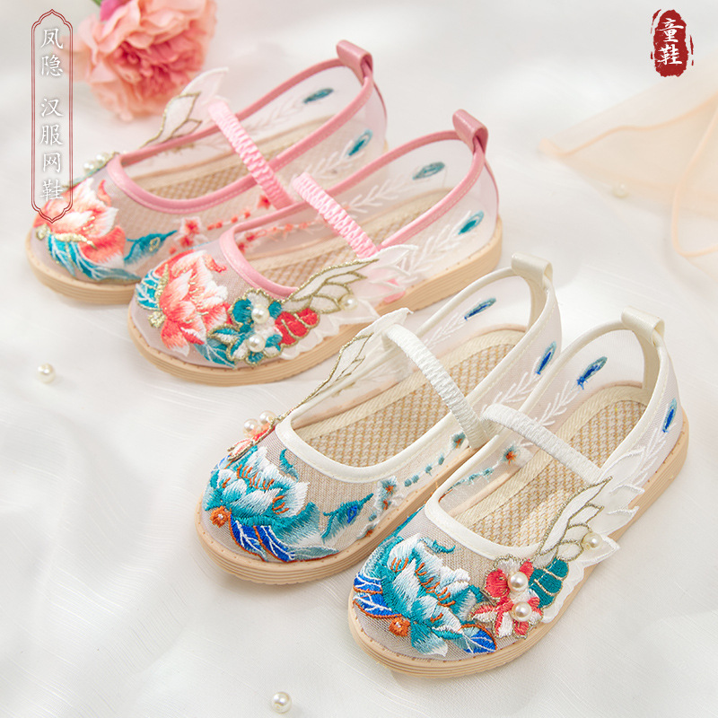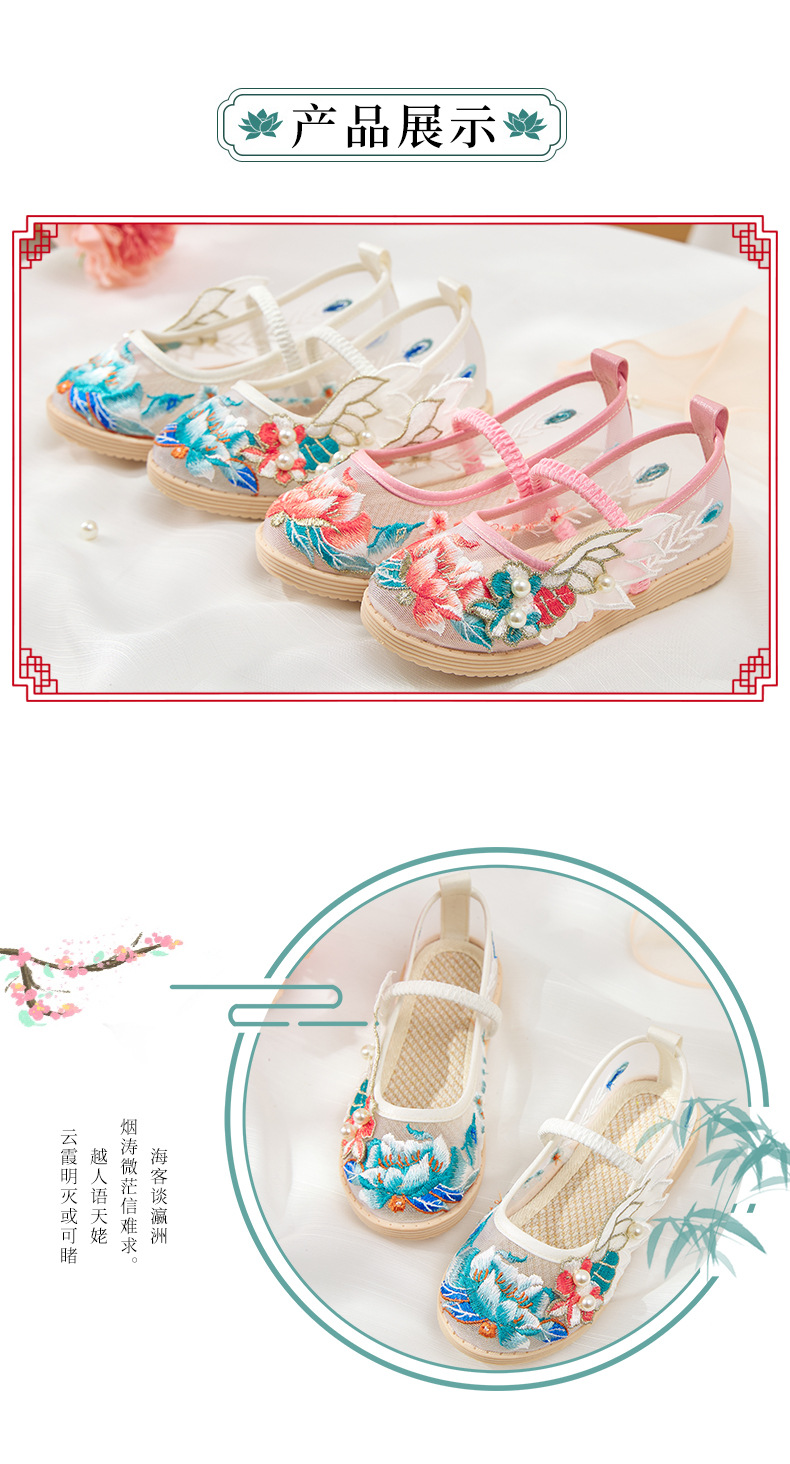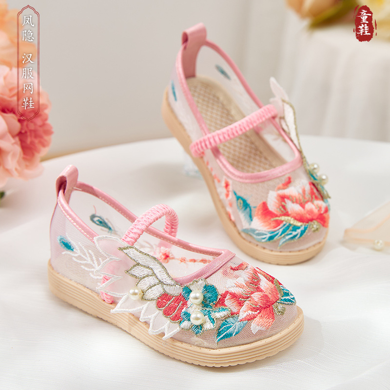 Hanfu вышитая обувь для девочек летняя сандалия сетчатая пряжа дышащая китайская одежда обувь сетка ретро детская обувь Hanfu