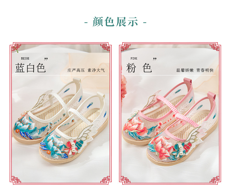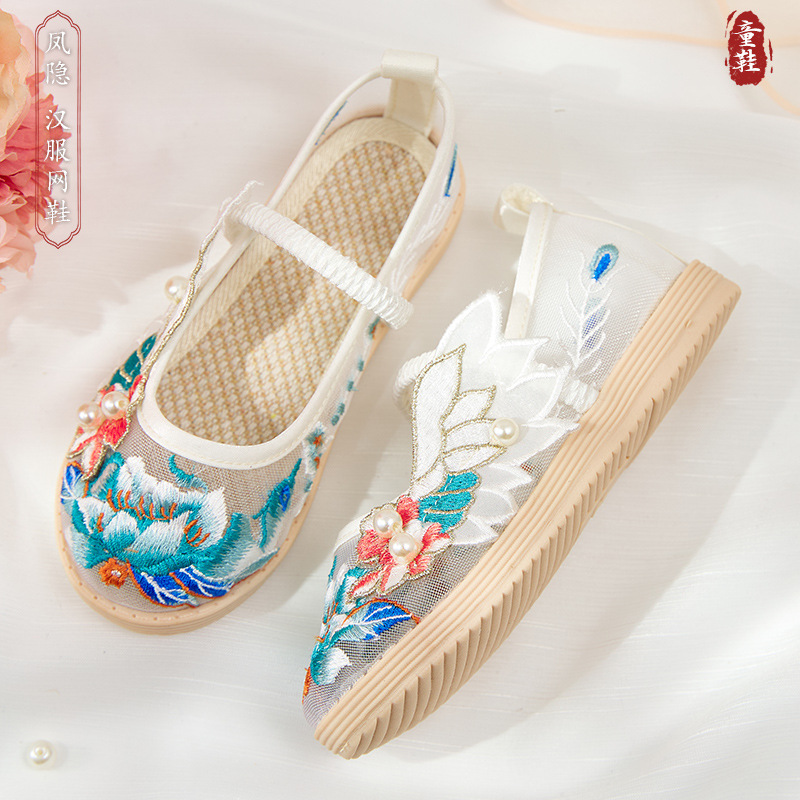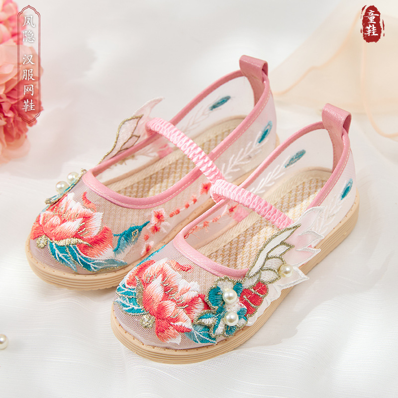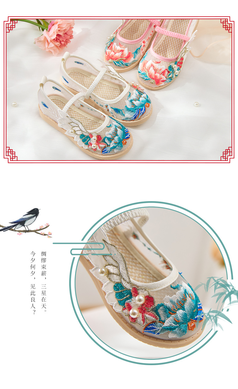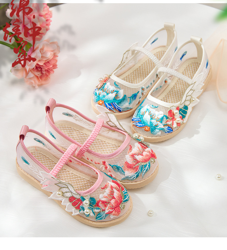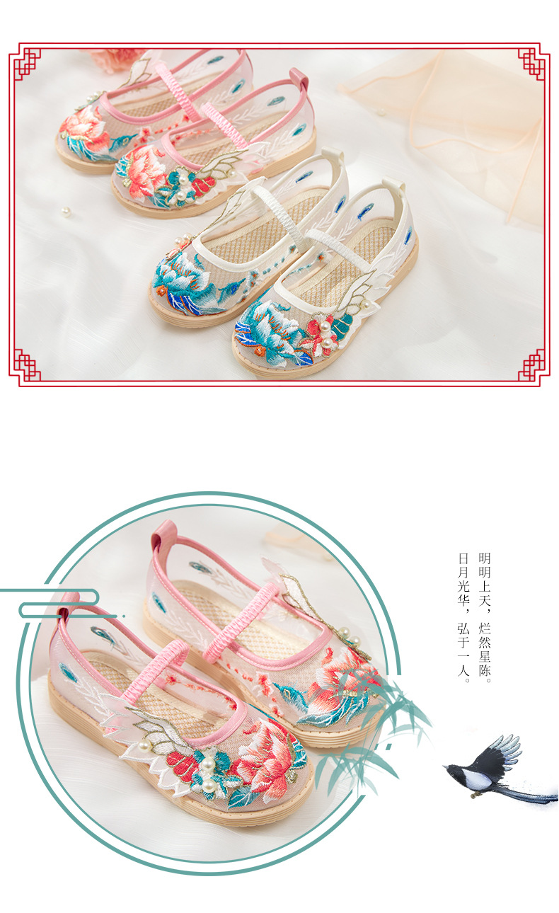 Hanfu вышитая обувь для девочек летняя сандалия сетчатая пряжа дышащая китайская одежда обувь сетка ретро детская обувь Hanfu
