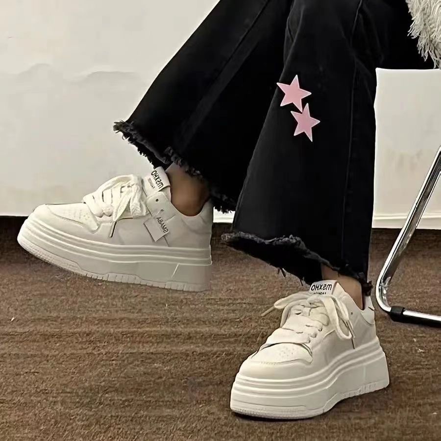 Корейские стильные женские туфли в стиле колледжа с большим носком, на толстой подошве, спортивные, низкие, 2024, новые повседневные универсальные модные женские туфли