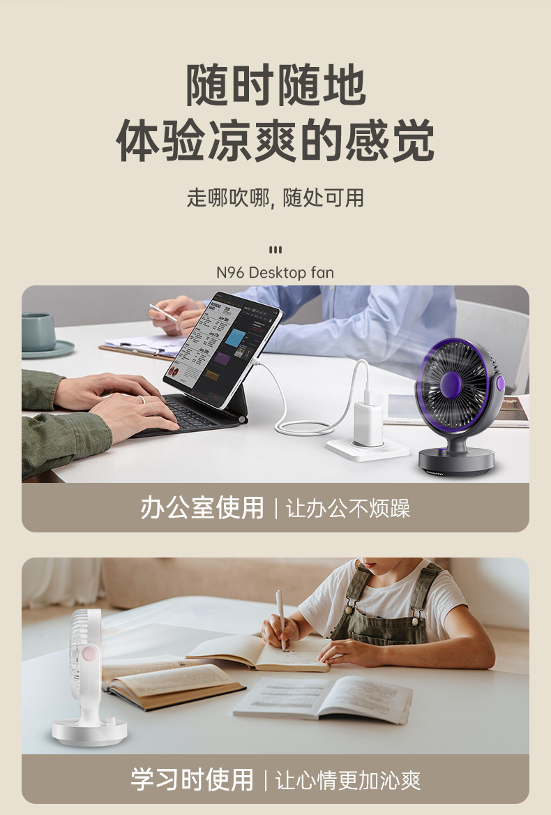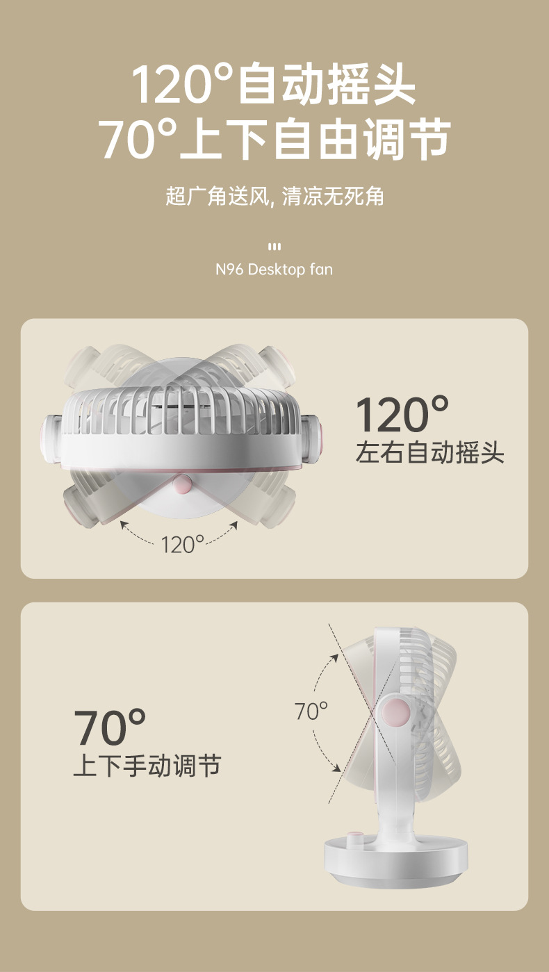 Настольный вентилятор качая головой портативный зарядный большой ветер USB бесполюсное регулирование скорости домашнего офиса небольшой вентилятор