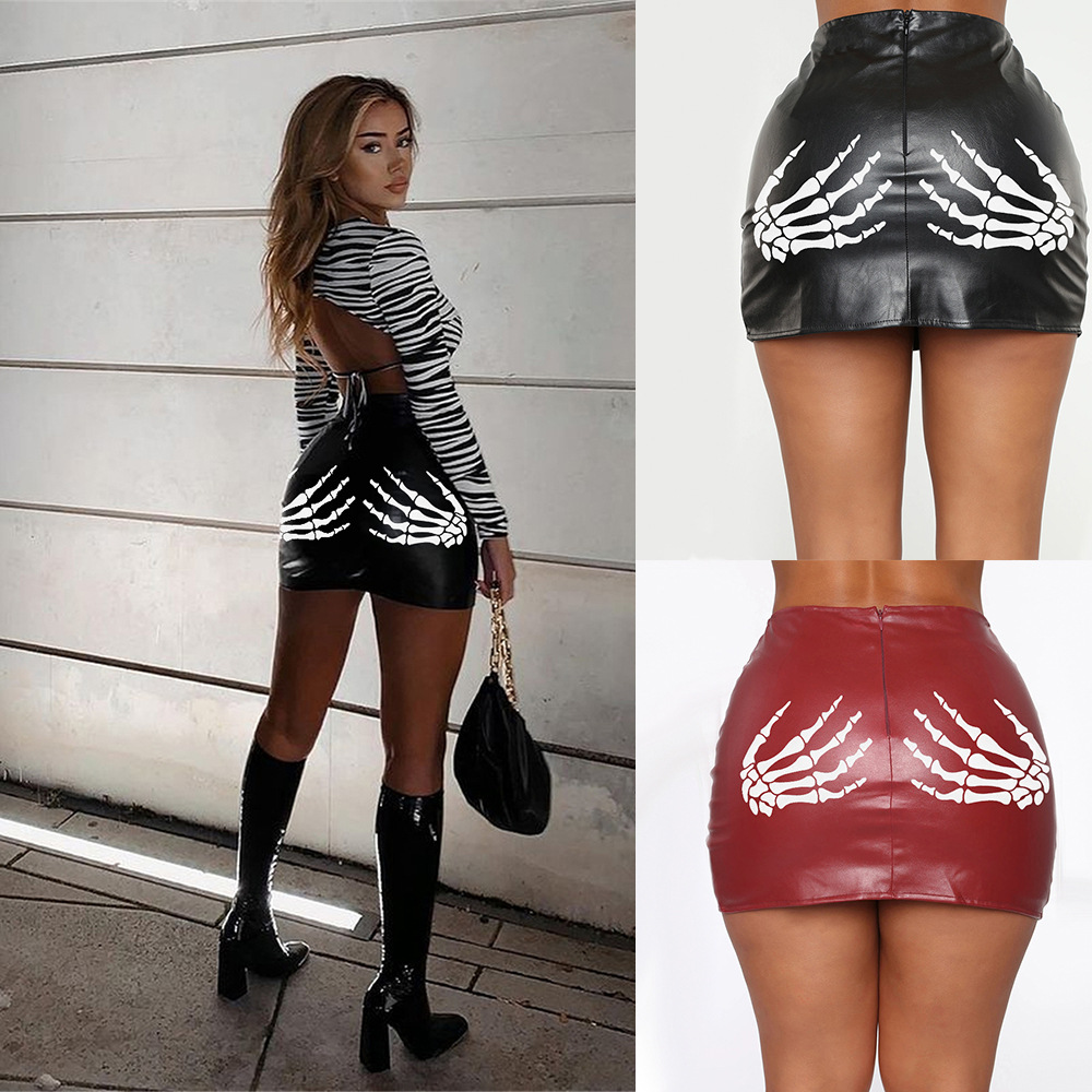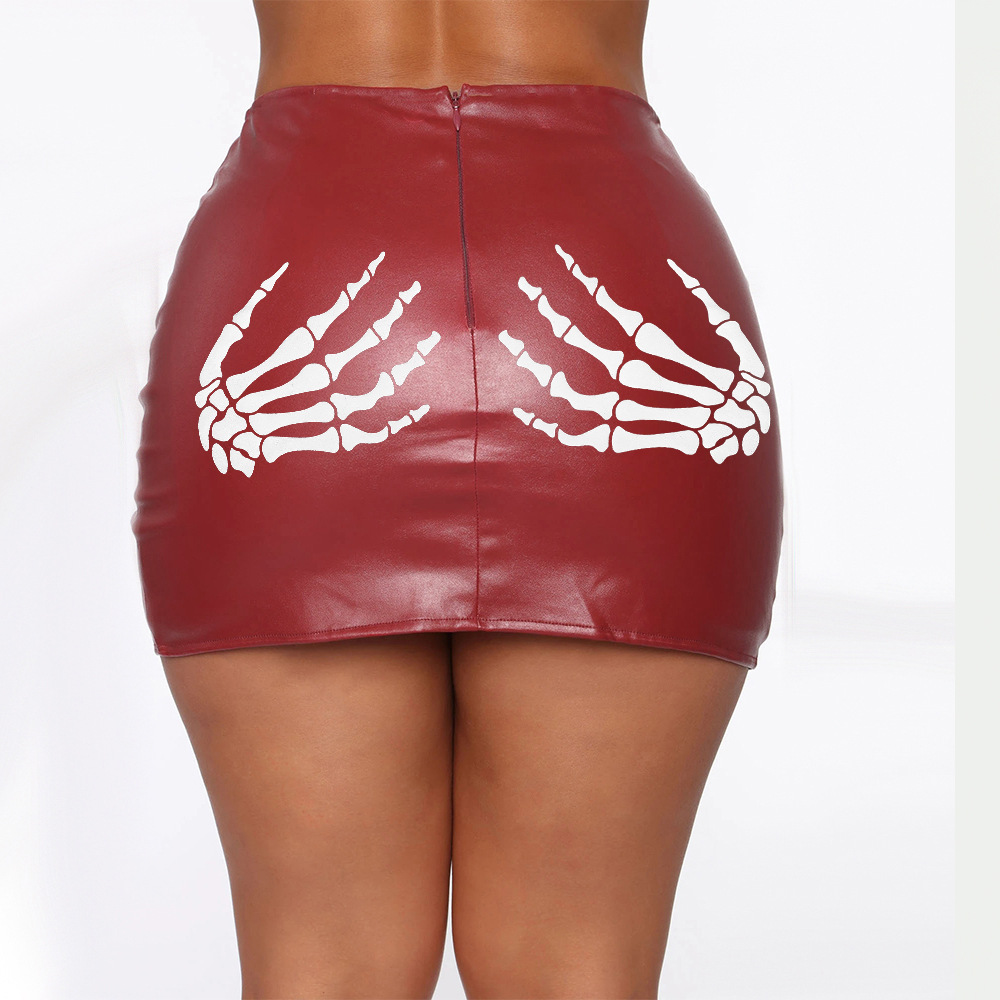 Печать PU короткая юбка женская европейская и американская трансграничная сексуальная кожаная юбка на молнии