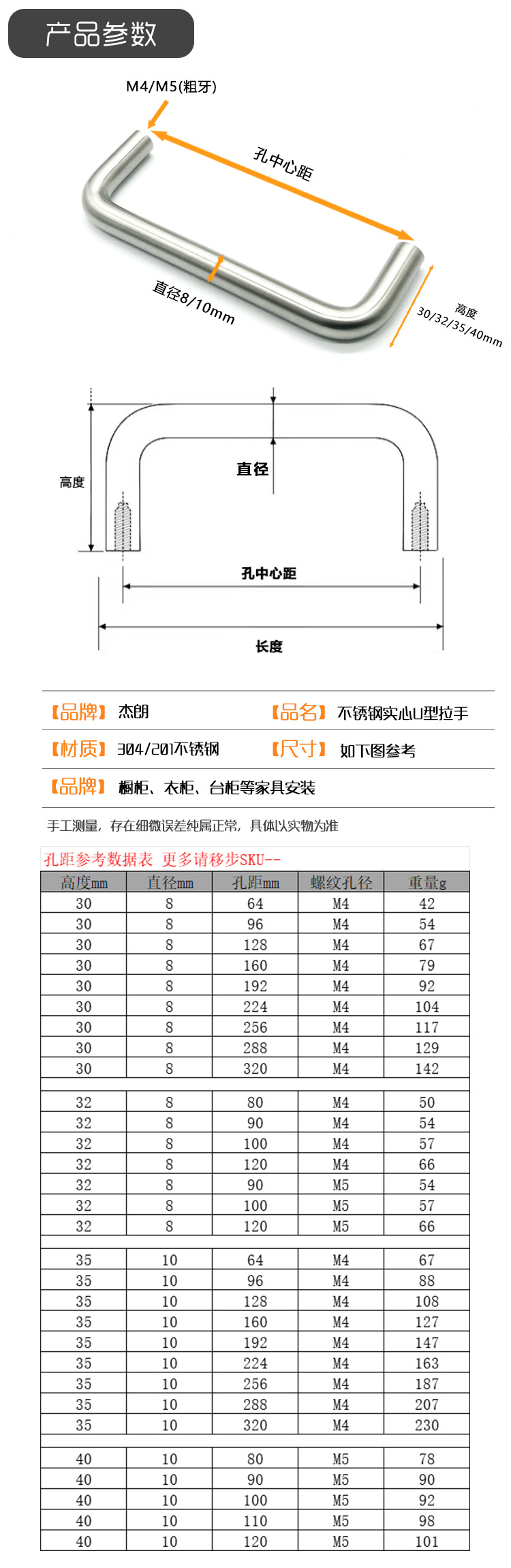Нержавеющая сталь ручка дверной шкаф сплошная дверная ручка U-образный маленький круглый трубчатый ручка машина распределительный ящик для промышленности U-образный ручка