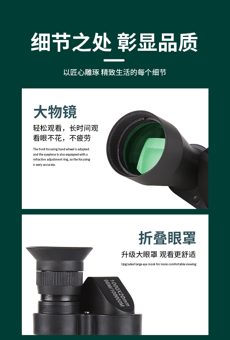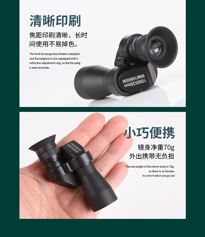 Производитель 1000X20 угловой однотрубный трансграничный взрыв HD высокой высокой четкости мини-мобильный телефон камеры портативный телескоп