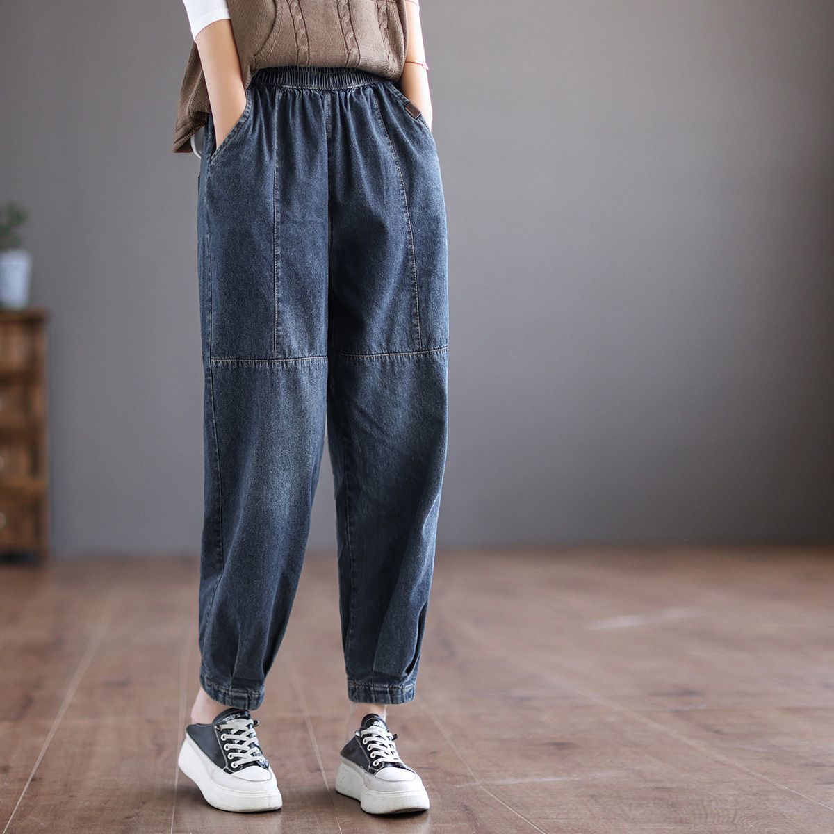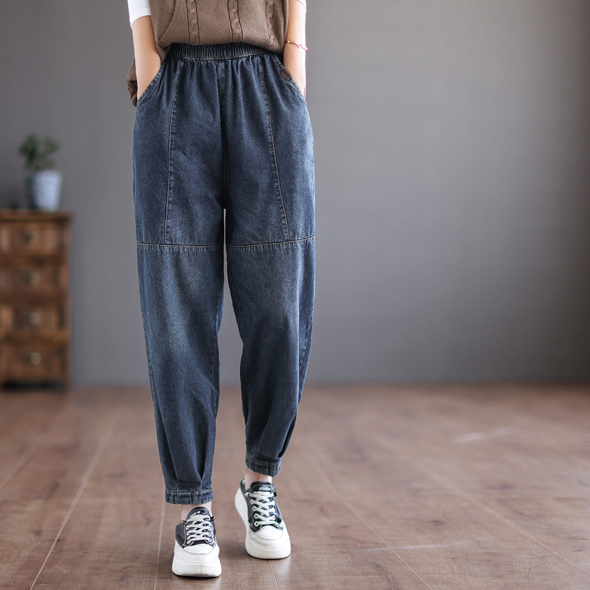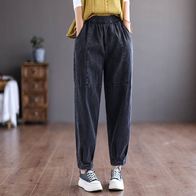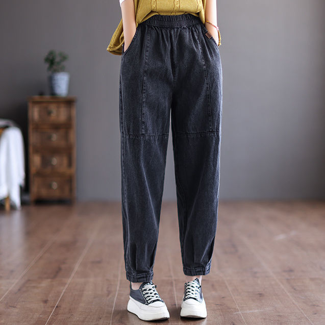 Весна/лето 2025, новые женские художественные повседневные свободные длинные брюки с эластичной резинкой на талии, винтажные элитные джоггеры-шаровары
