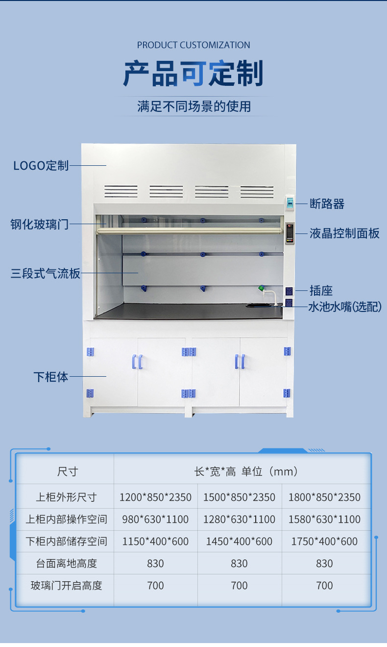Лабораторный вентиляционный шкаф Полный стальной вентиляционный шкаф Инспекционный зал вентиляционный шкаф кислотостойкий и щелочной PP вентиляции кухонный шкаф настольного типа