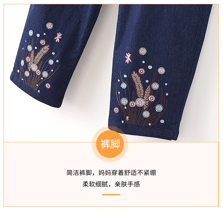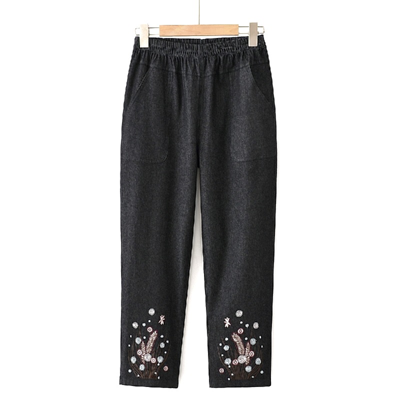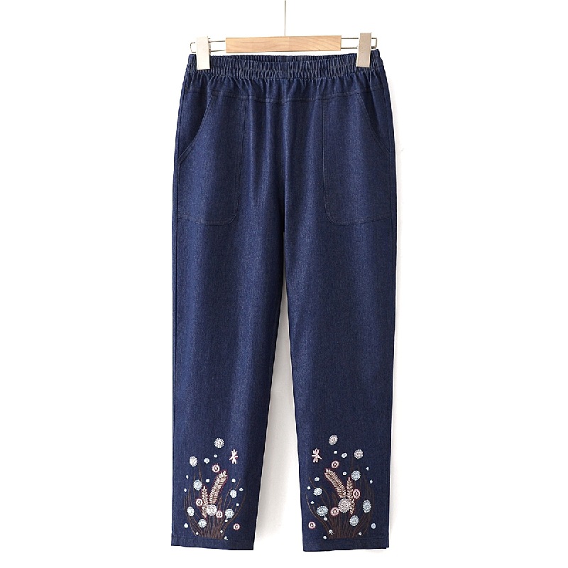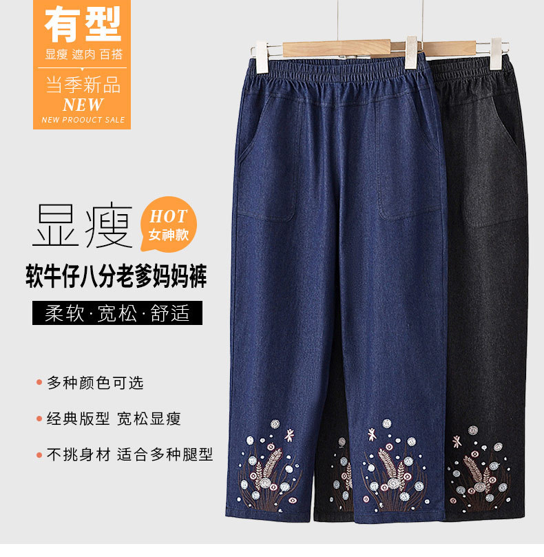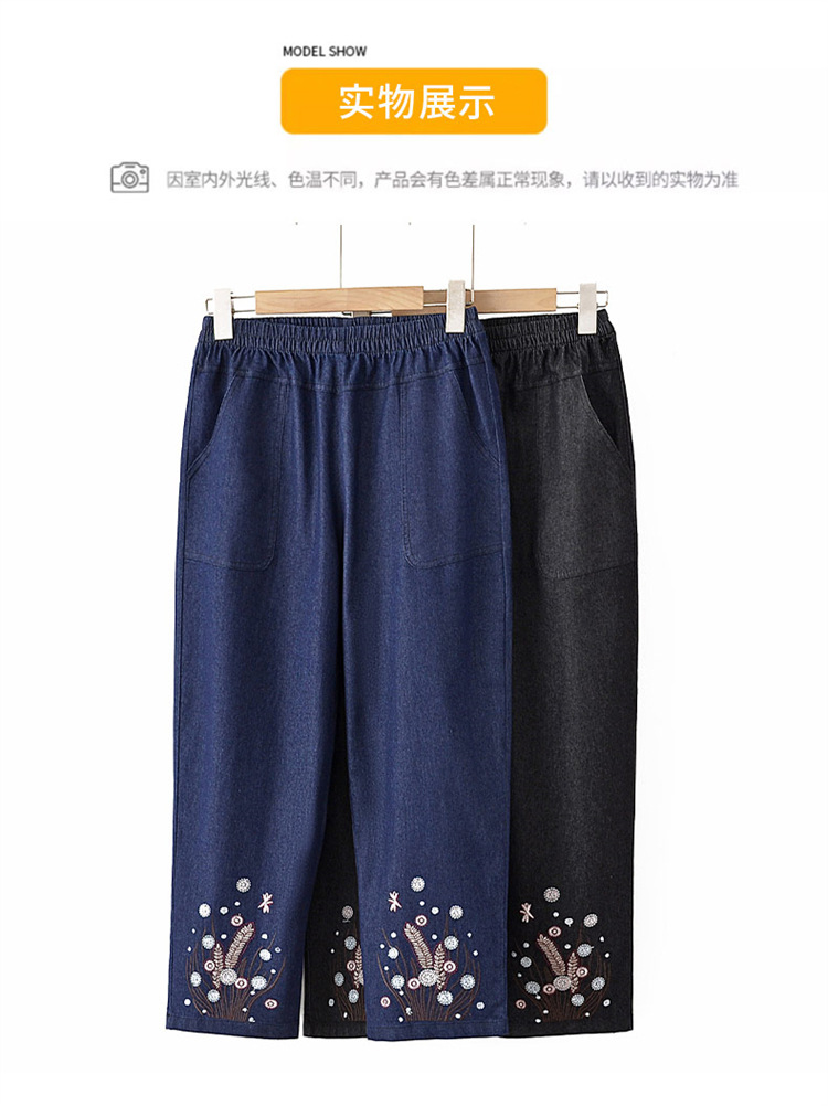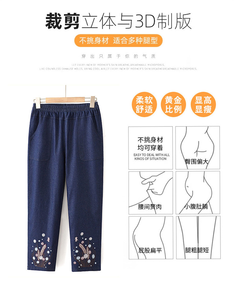 Мама хлопчатобумажные джинсовые штаны восемь очков Летние брюки с высокой талией с вышивкой среднего и пожилого возраста женские брюки тонкие прямые брюки