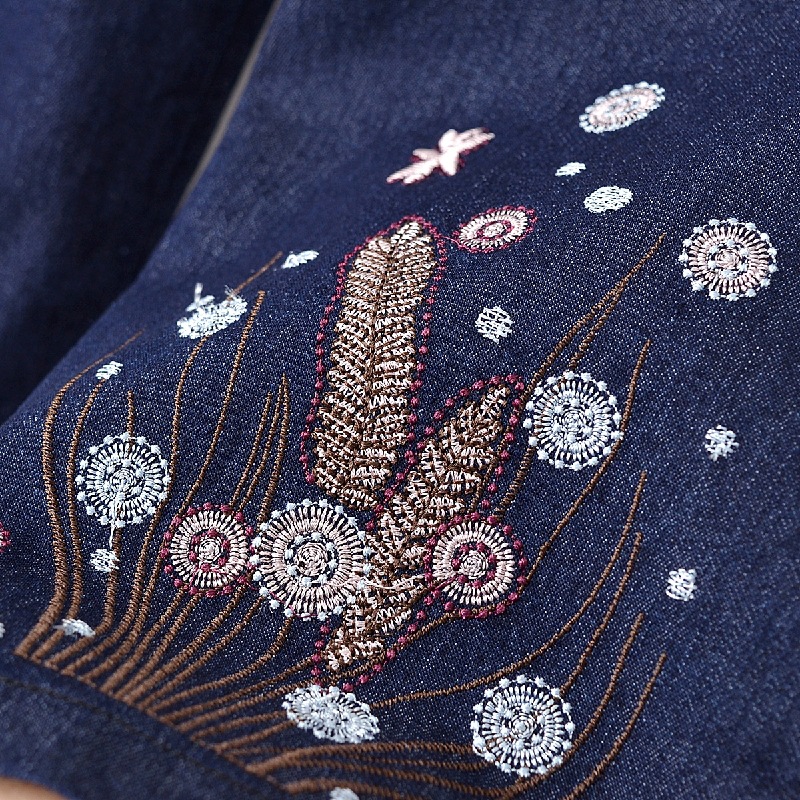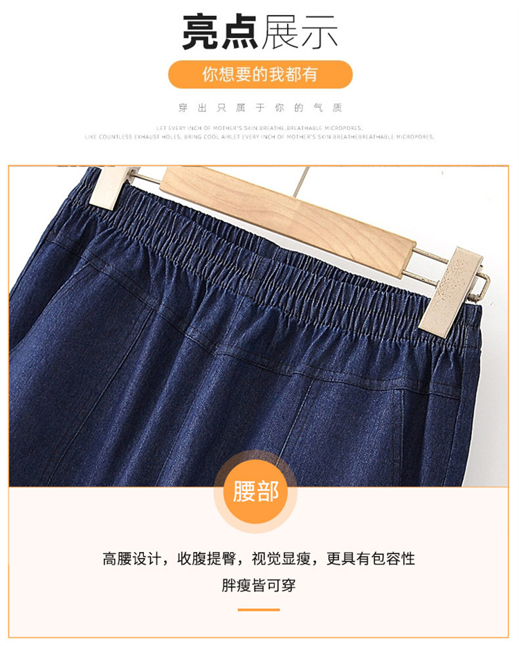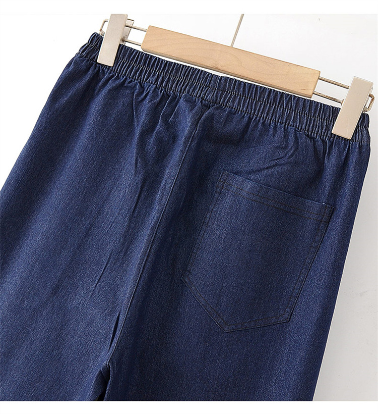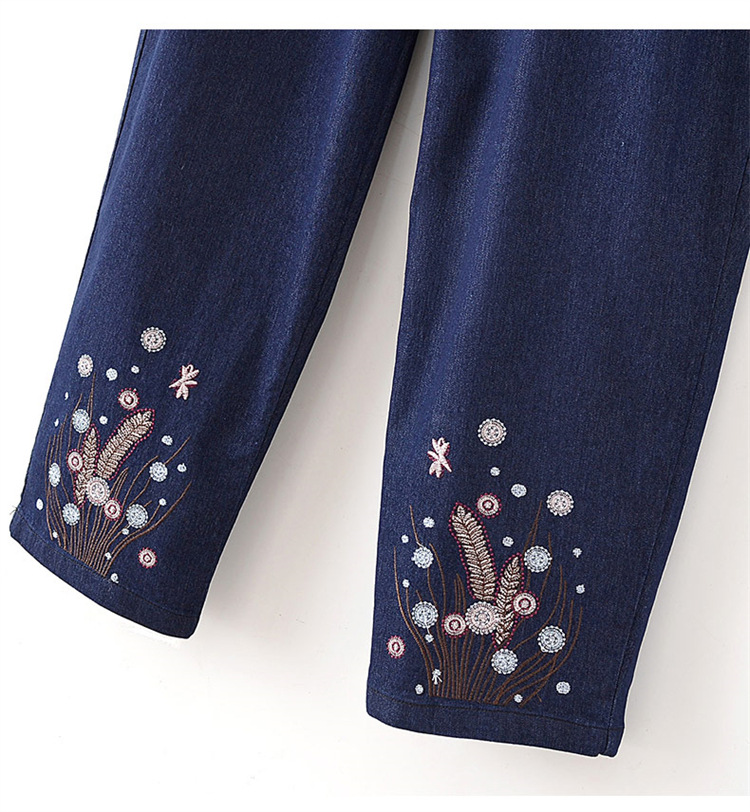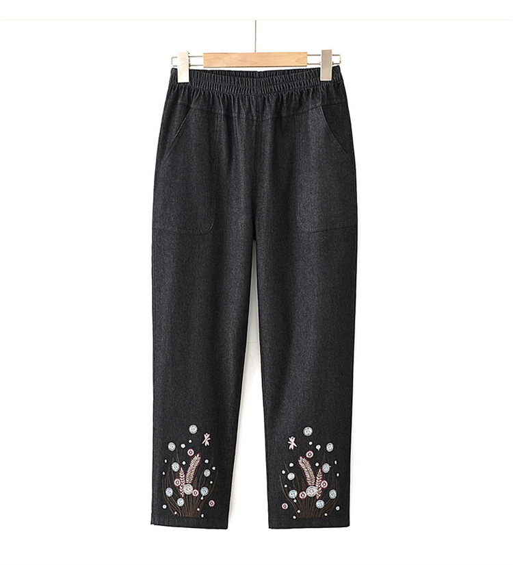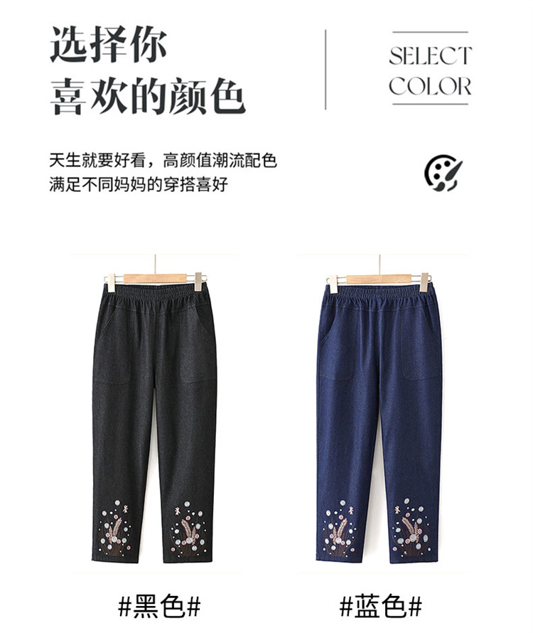 Мама хлопчатобумажные джинсовые штаны восемь очков Летние брюки с высокой талией с вышивкой среднего и пожилого возраста женские брюки тонкие прямые брюки