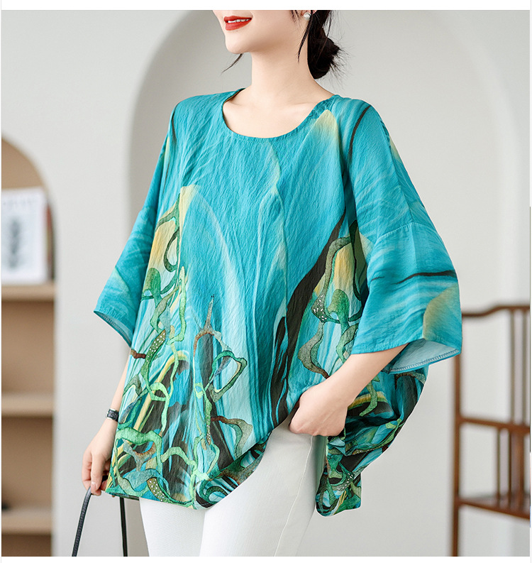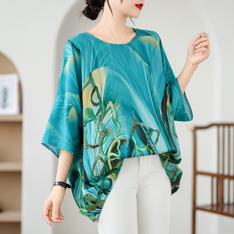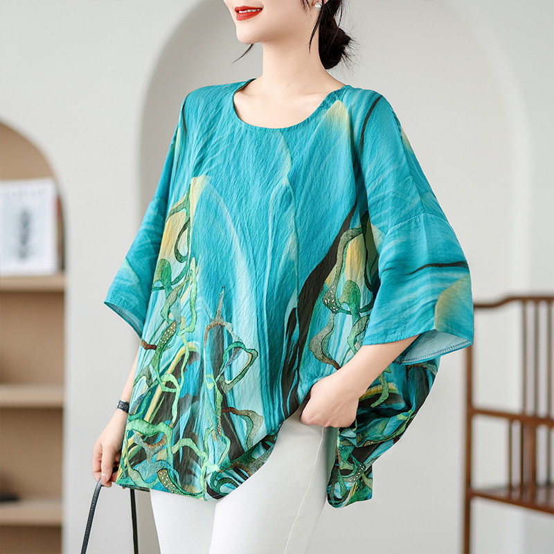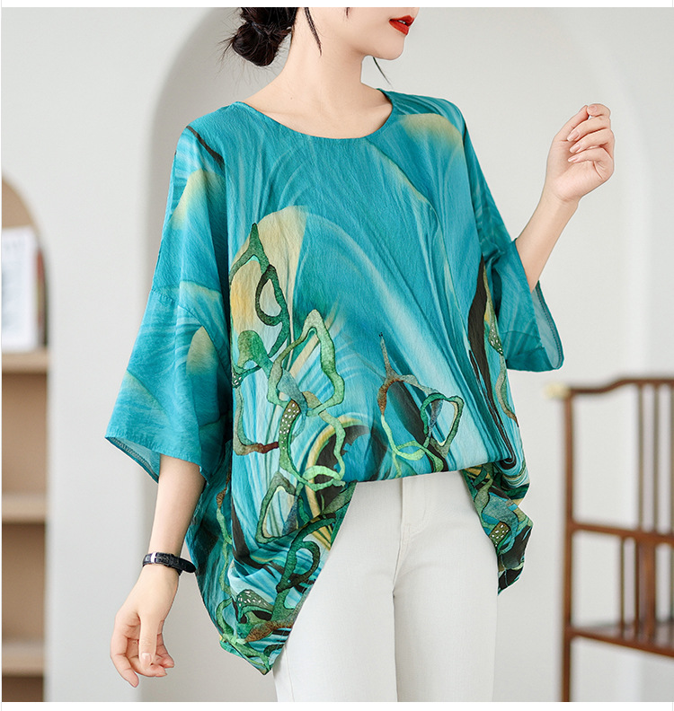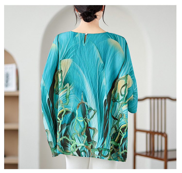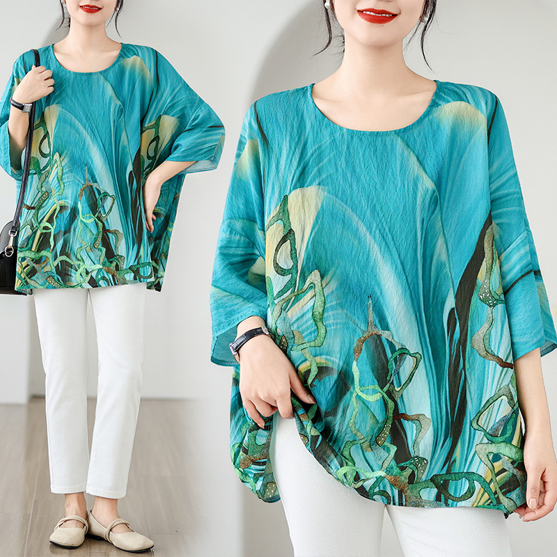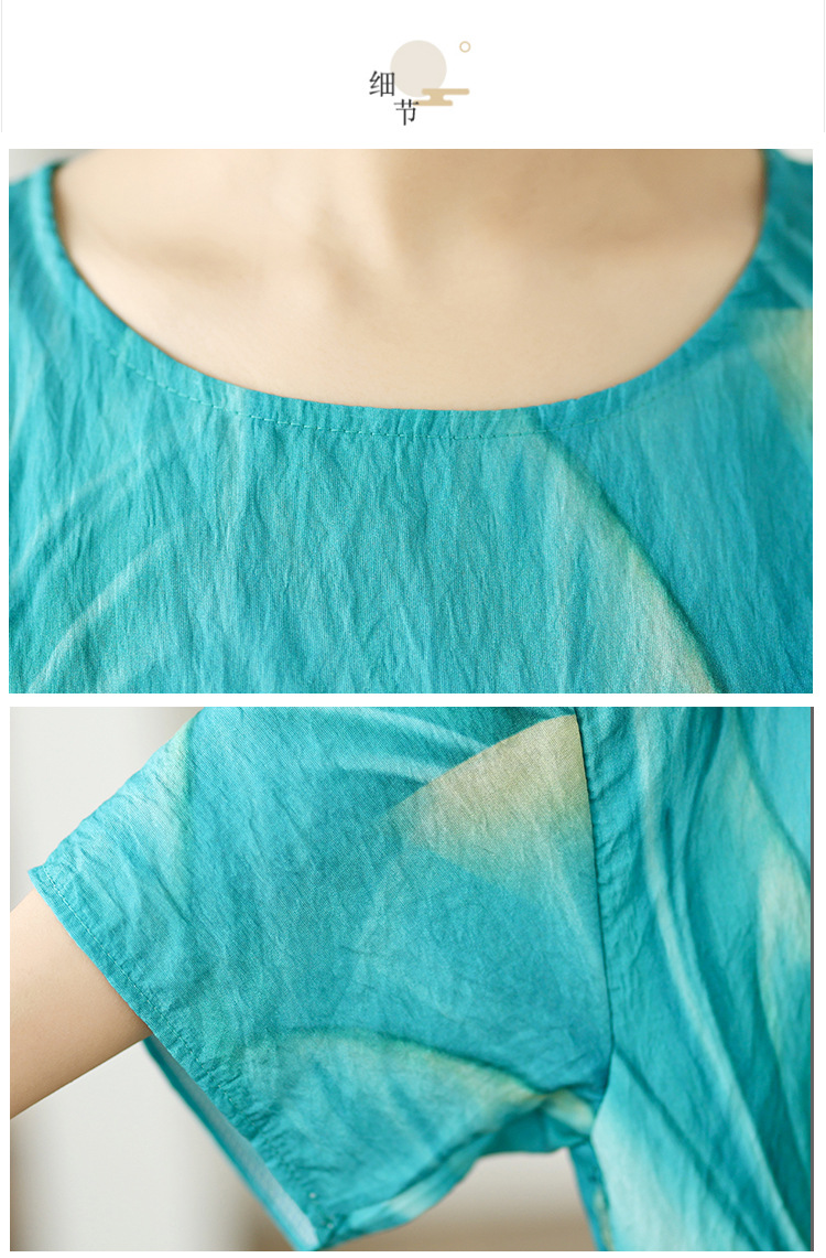 На самом деле 2024 новый летний хлопок конопли национальный ветер летучая мышь рукава свободная большая женская футболка с круглым вырезом женская 91738 #