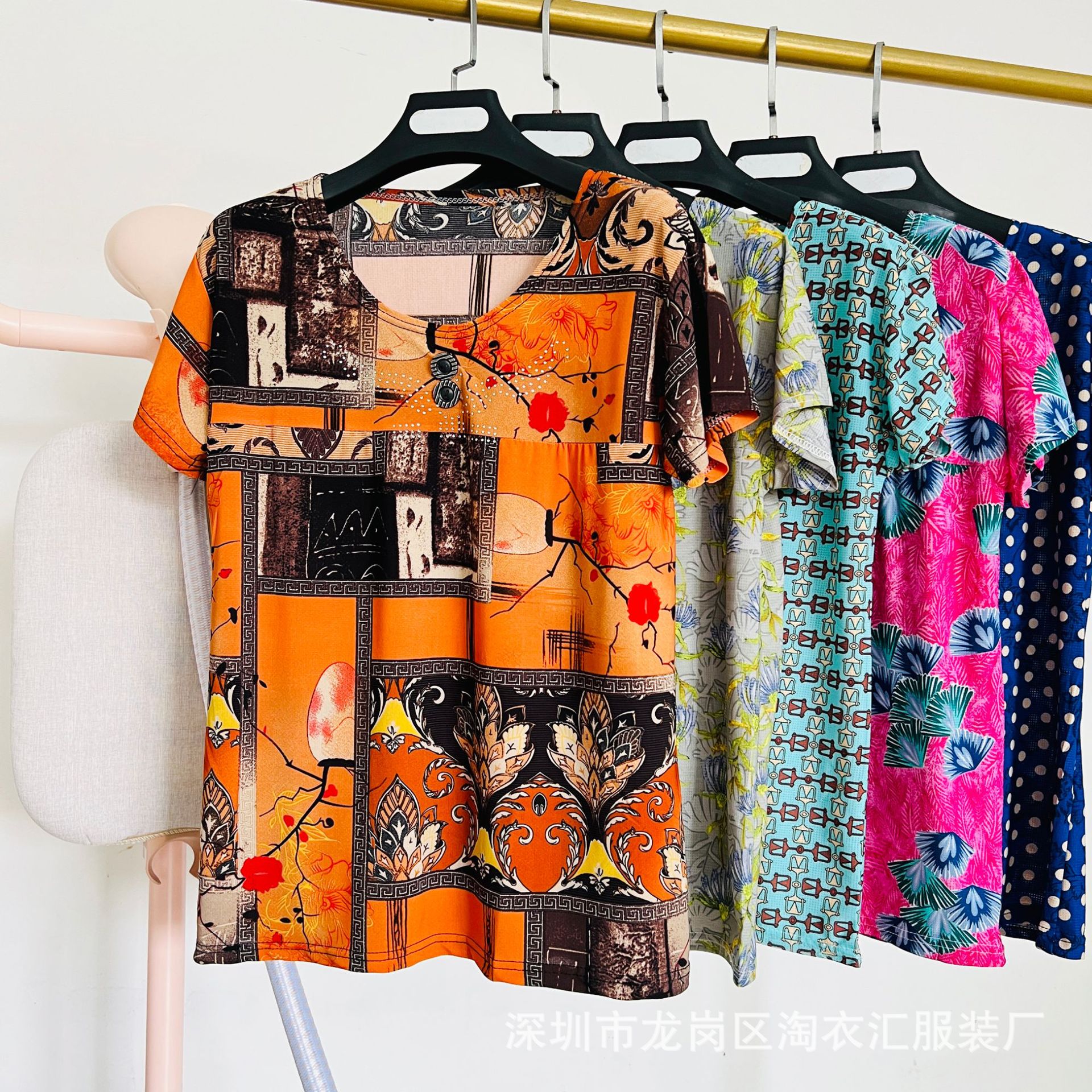 Мама одеваются большой размер летние платья среднего и пожилого возраста женская футболка стойло оптом бабушка новый рубашка с короткими рукавами производитель бесплатная доставка