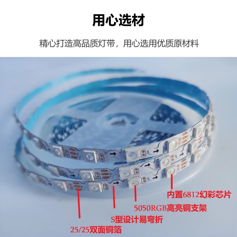 Светодиодная лента S-образной формы, 6 мм, полноцветная, 60 светодиодов, 6812, с одиночным управлением, высокой яркостью, медным креплением, светящиеся буквы, разноцветная динамическая лента