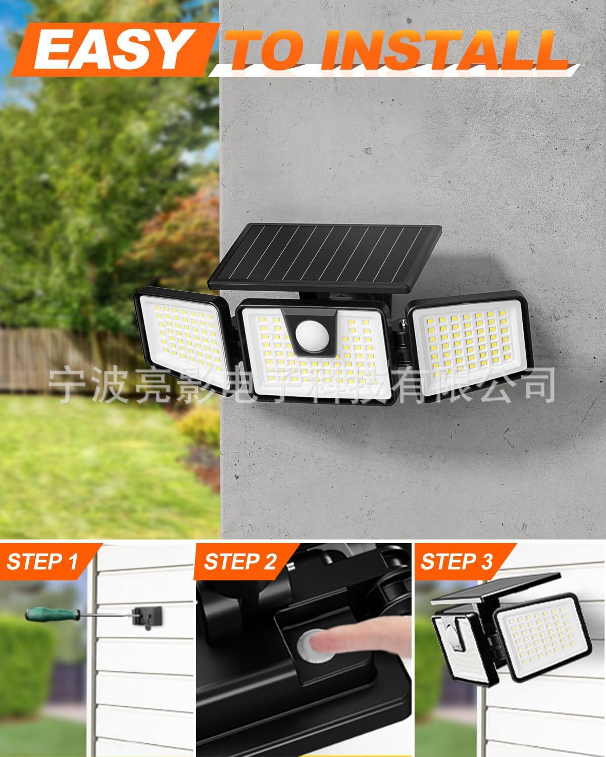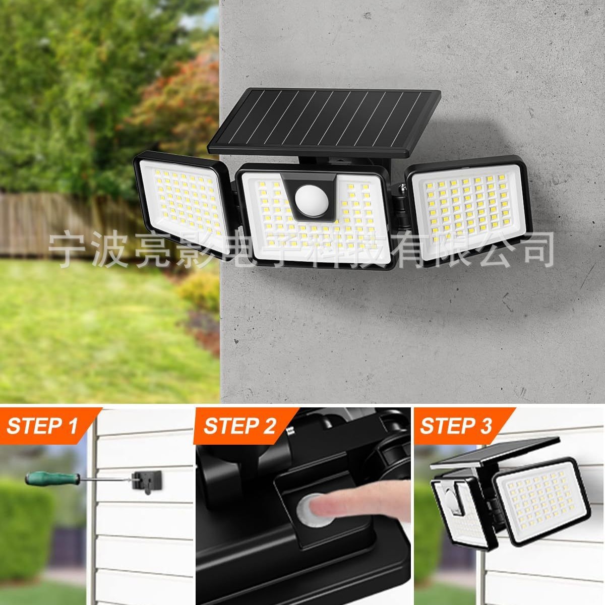 Новый солнечный трехголовый настенный светильник светодиодный открытый водонепроницаемый Amazon Power Business может вращаться наружный индукционный внутренний свет
