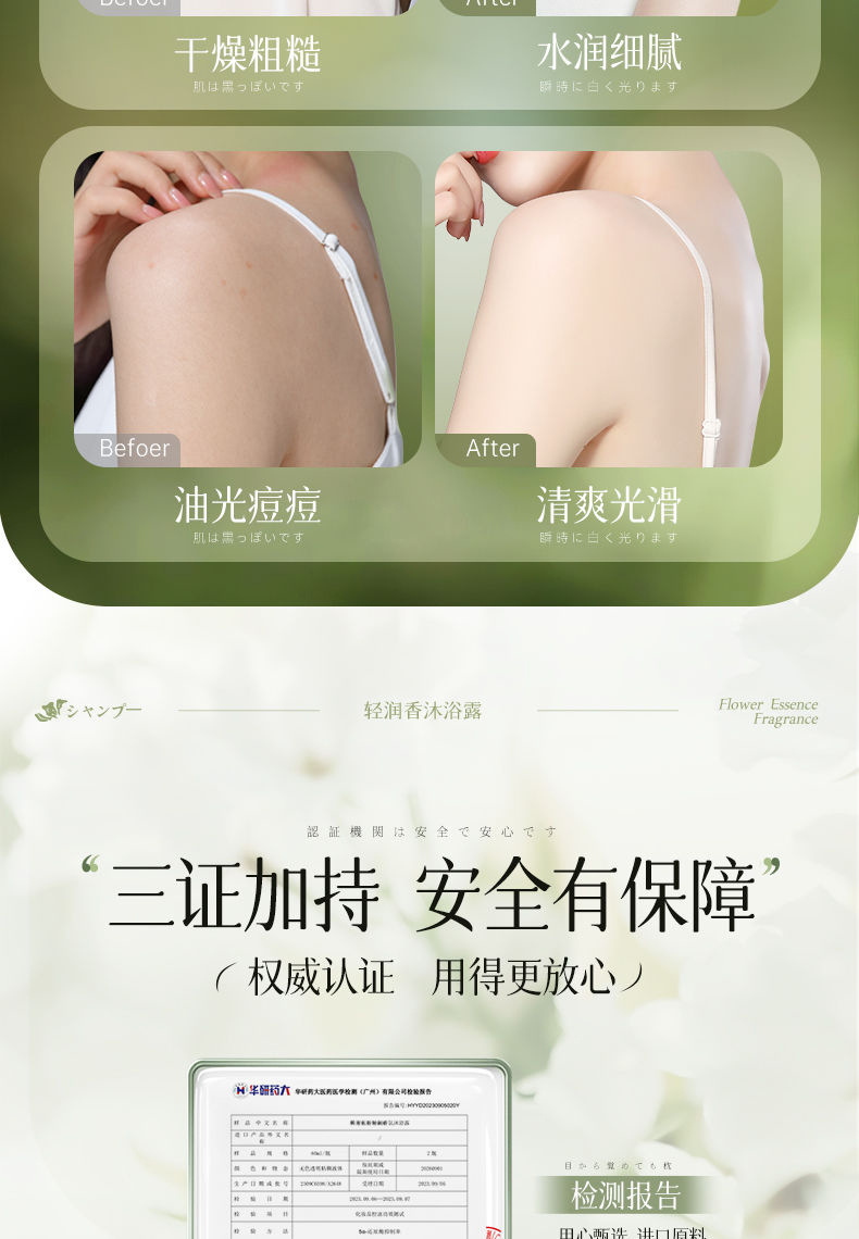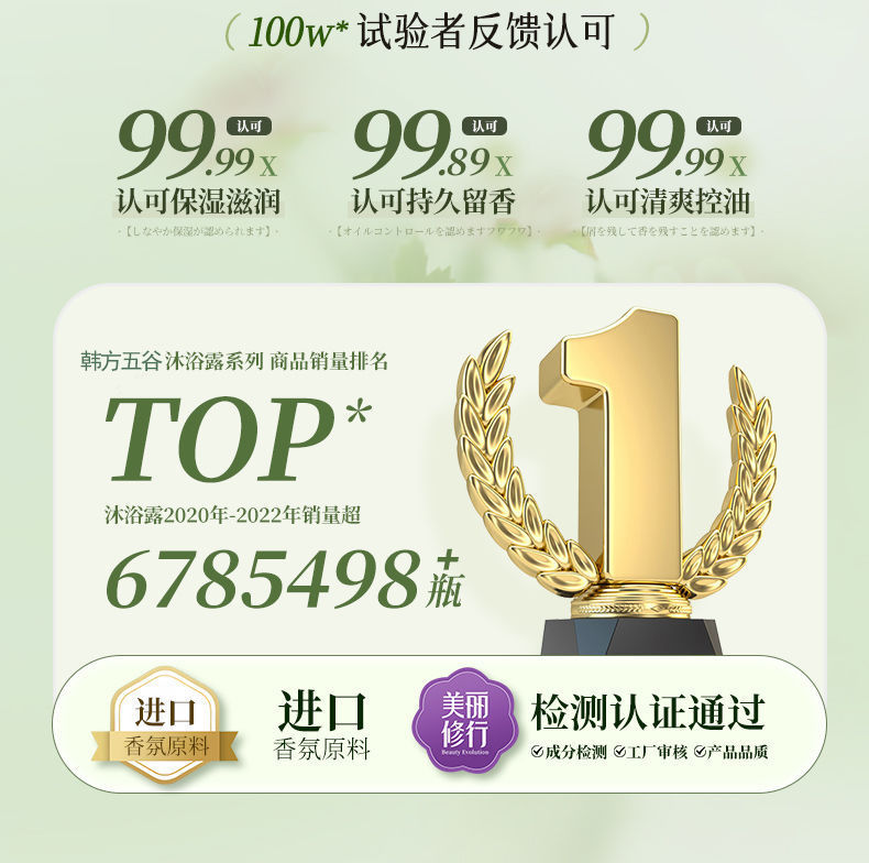 Гель для душа Камелия 1000г; Шампунь Камелия 1000г; Гель для душа икры 500г; Маска для волос «Икра восстанавливающая» 500г; Гель для душа «Белый чай» 850г; Шампунь с белым чаем 850г; Кондиционер для белого чая 850г.; Лосьон для тела с белым чаем 850г; Отшелушивающий гель с белым чаем 600г; Шампунь против перхоти с дисульфидом селена 600г; Шампунь против выпадения волос Polygonum multiflorum 600г; Увлажняющий шампунь с гиалуроновой кислотой 600г.; Увлажняющий кондиционер с гиалуроновой кислотой 600г.; Шампунь для контроля жирности с морской солью 1000г; Гель для душа Sea Salt Oil Control 1000г; Гель для душа с ароматом французского кокоса 800г