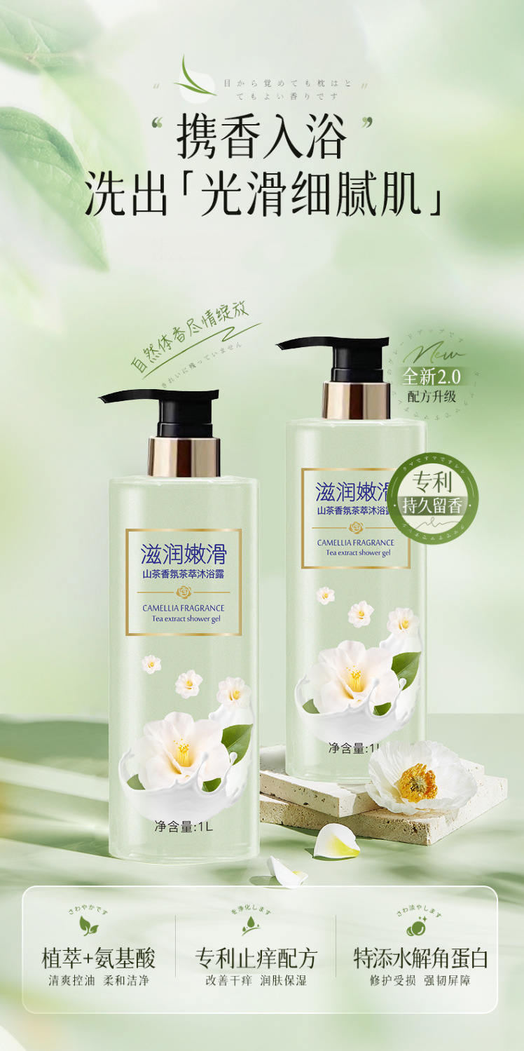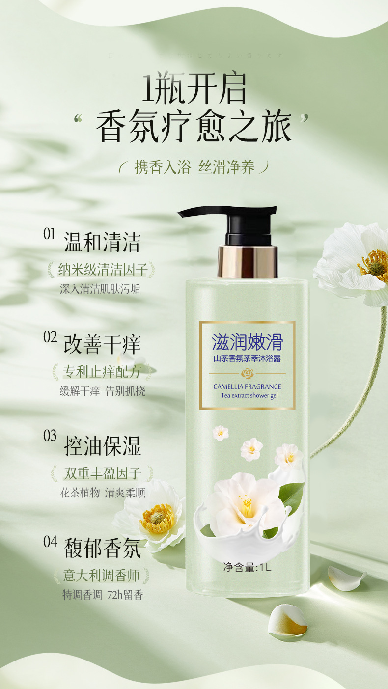 Гель для душа с экстрактом чая и ароматом камелии HUAQINGMEI