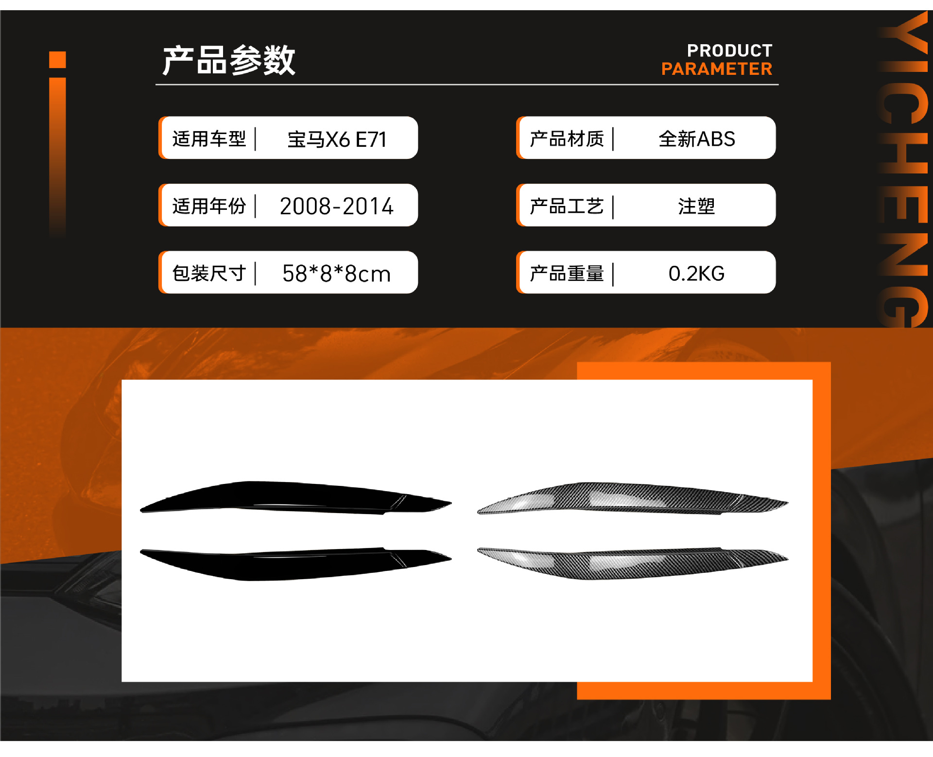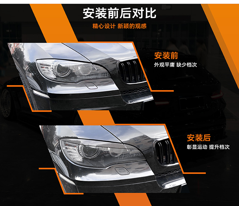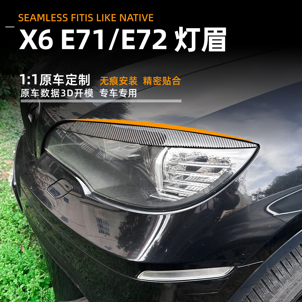 Подходит для моделей BMW BMW X6 E72/E71 08-14 годов выпуска, 3D декоративные наклейки для фар в виде бровей, аксессуары для внешней модификации.