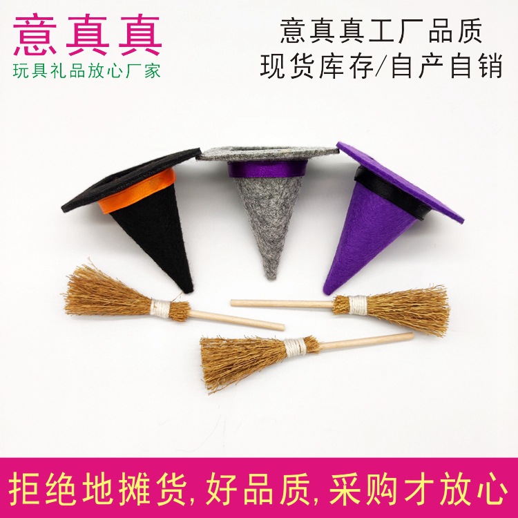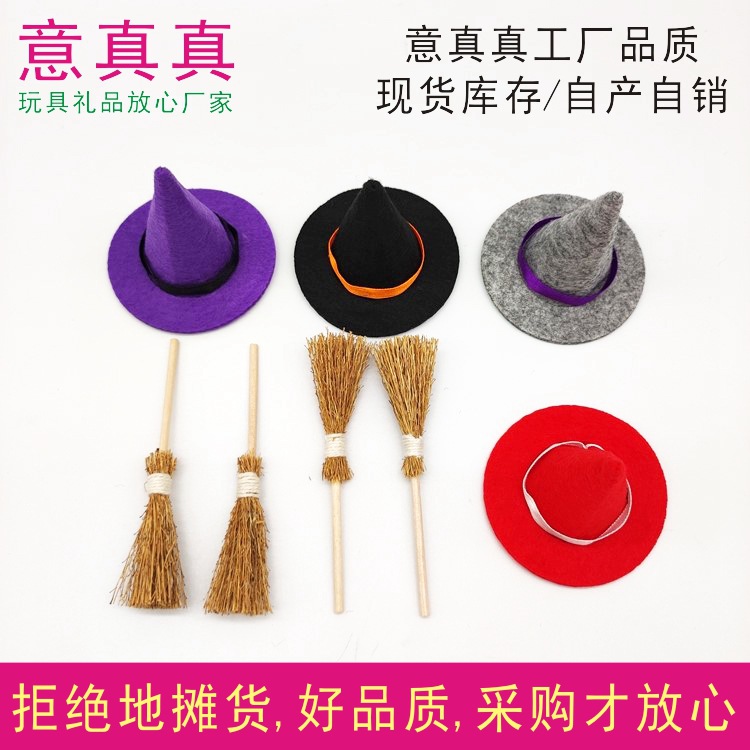 В наличии: миниатюрная метла Золушки, аксессуары для ведьминой шляпы, миниатюрные реквизиты для кукольного домика на Хэллоуин