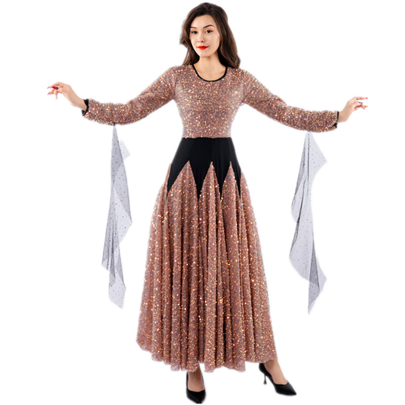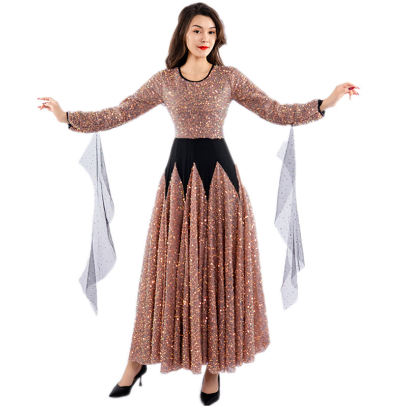 Новая юбка для современного танца, большая распашная юбка, одежда для выступлений с длинными рукавами, одежда для выступлений для бальных танцев, современный танец