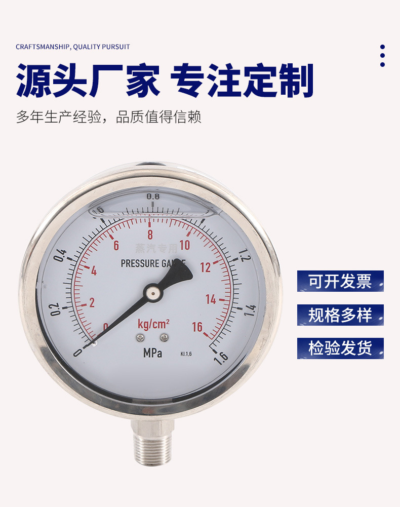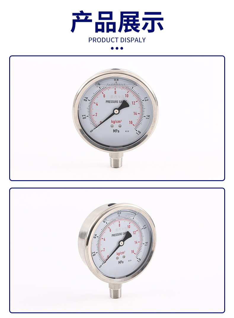 Y100SS-A Ударопрочный манометр Ударопрочный манометр с масляным наполнением Манометр давления воздуха Воздушный насос Труба водопроводная вода Масло Гидравлический манометр